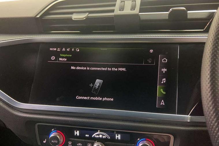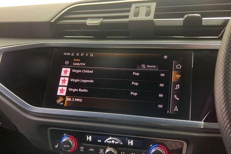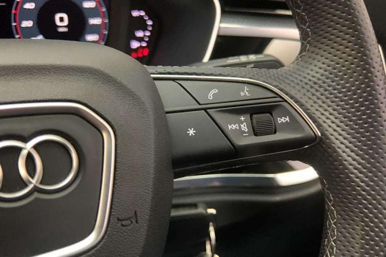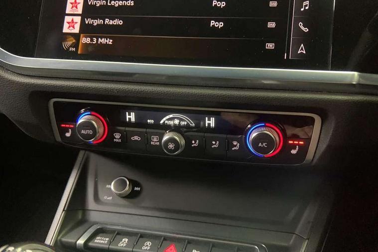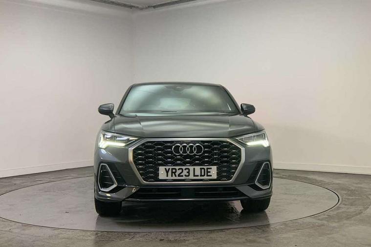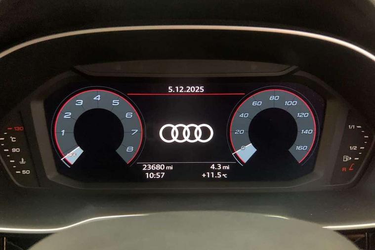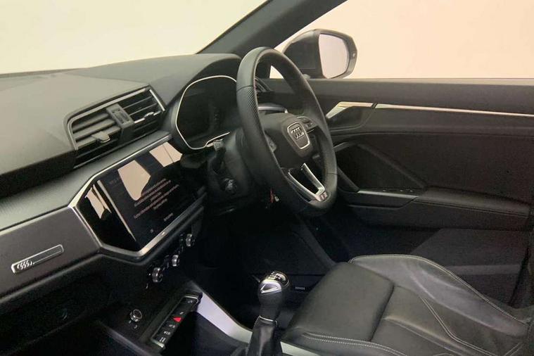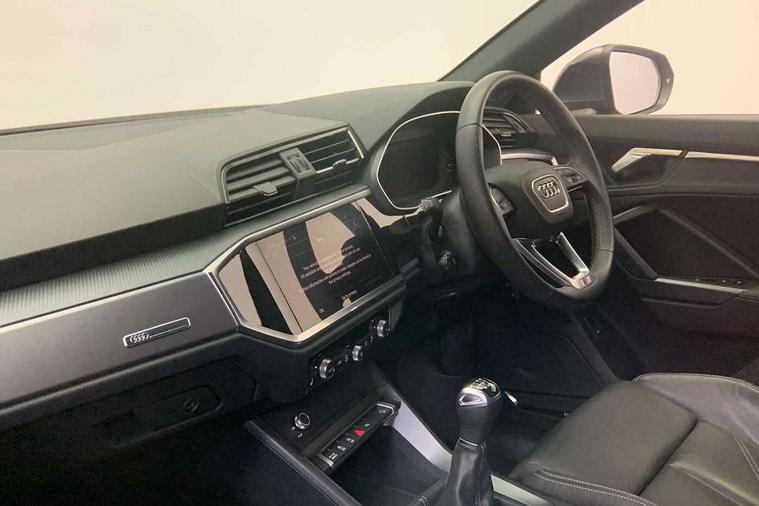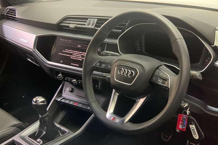 Audi drive select, Audi lane departure warning, Audi Virtual Cockpit - 10.25" display, Bluetooth interface, Camera based traffic sign recognition, Cruise control + speed limiter, Legal emergency call, MMI Navigation Plus with high resolution 10.1 inch touchscreen colour display, Power operated tailgate, Progressive steering, Rear parking sensors, Service interval indicator, Smartphone interface includes wireless Apple carplay/Android Auto, Start stop system with recuperation, Voice control system with natural language interaction, Sports suspension, 2 USB-C ports with charge and data functions, 6 passive loudspeakers, DAB digital radio module, Acoustic windscreen, Aluminium window trim, Auto dimming frameless rear view mirror, Diffuser grille in grained matt black, Diffuser trim in selenite silver, Electrically folding, adjustable and heated door mirrors with integrated LED side indicators and kerb view function for passenger side, Front and rear electric windows, Front fog lights, Front side air inlets in selenite silver, Front underbody protection in manhattan grey paint finish, Grille surround in aluminium silver matt, High gloss black finish B and C pillars, LED Dynamic rear indicators, LED headlights with LED daytime running lights, LED rear lights, LED third brake light, Privacy glass dark tinted rear and rear-side windows (from B-pillar backwards), Radiator grille in anthracite black with inlay in matt aluminium silver, Rain and light sensors, Rear side wing doors, Rear underbody protection in matt black, Rear wiper, S line badges on front wings, S line front and rear bumpers and side skirts in contrasting Manhattan grey paint finish, Side skirt insert in matt Platinium grey, Variable front intermittent wipers, 12V socket in rear centre console, 3 seat bench in 2nd row, 3 spoke leather multifunction steering wheel features S badging and grips in perforated leather with contrast stitching, 40:20:40 folding with manual adjustment for 60:40 forwards/backwards position and backrest angle, Adjustable rear seat bench/backrest with centre armrest and cupholder, Black cloth headlining, Dual zone electronic climate control, Front and rear black floor mats with contrast stitching, Front and rear headrests, Front and rear roof module including reading lights, Front centre armrest, Glove compartment lighting, Height and reach adjustable steering wheel, Illuminated door sill trims with S logo, ISOFIX child seat mounting for front passenger with airbag deactivation and outer rear seat including top tether attachment point for outer rear seats, Luggage compartment light right in white, Luggage compartment sill protection in stainless steel, Manual front seats with height adjustment, Perforated leather gearknob, Single front passenger seat, Stainless steel pedals, Ambient lighting pack - Q3, Non smoking pack - Q3, 3x3 point rear seatbelts, 6 airbags - Driver, front passenger, curtain and side windows, Audi pre-sense front with pedestrain and cyclist recognition, Electrically operated child locks on rear doors, Electromechanical parking brake, Electronic stabilisation control including ABS, ASR and EDL, Front seatbelt reminder, Hill descent control, Hill hold assist, Pre sense basic, Seatbelt monitoring, Tyre pressure warning, Warning triangle and first aid kit, Anti theft alarm, Anti theft wheel bolts, Immobiliser, Remote central locking, Aluminium look interior elements, Black dashboard, Dark matt brushed aluminium inlay, Detail dashboard around MMI touch colour display in glass look, black with surround in aluminium look, Leatherette door armrest,