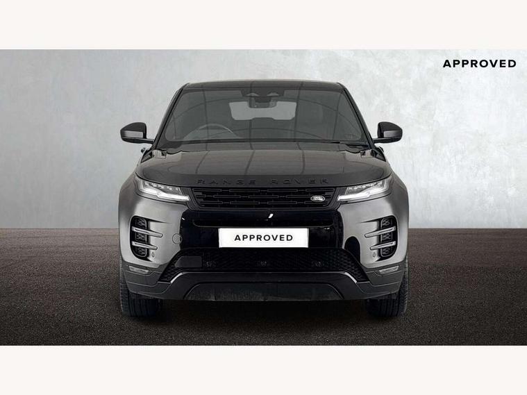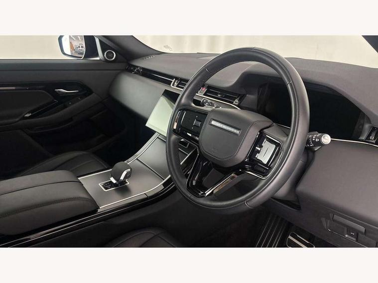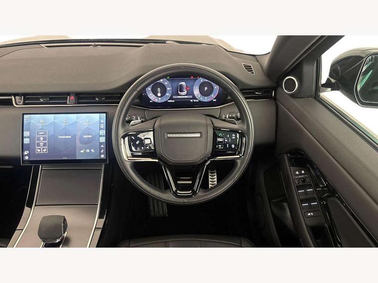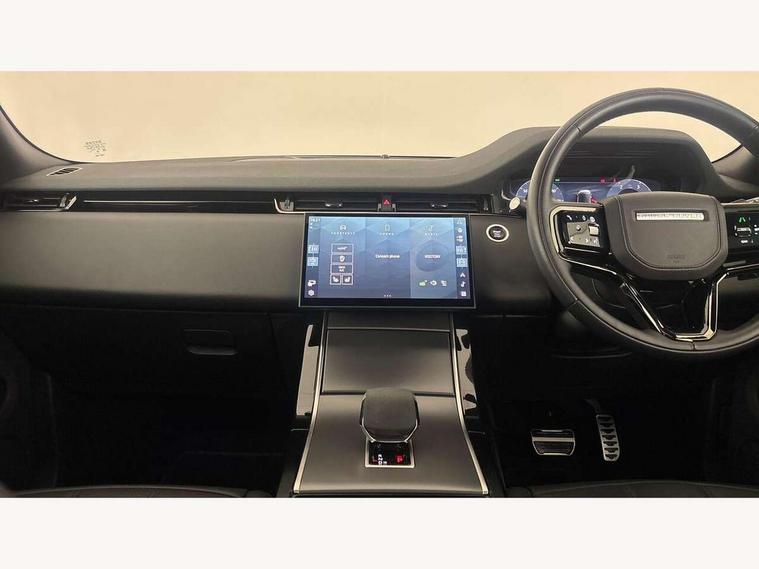 11.4" touch screen, Adaptive cruise control, Android Auto, Apple car play, Blind spot assist, Bluetooth connectivity, Brake pad wear indicator warning light, Driver condition monitor, eCall emergency system, Eco mode, Electronic power assisted steering (EPAS), Front and rear parking aid, InControl remote, Interactive driver display, Land Rover InControl apps, Lane keep assist, Pivi pro connected includes diamond pivi variant, smart settings, connected navigation pro, nuance speech licence, Powered tailgate/boot lid, Rear collision monitor, Rear traffic monitor, Traffic sign recognition with adaptive speed limiter, Voice control system, Wireless device charging, All terrain progress control, Diesel exhaust fluid (DEF) large tank, Efficient Driveline, Large fuel tank, Passive suspension, Terrain Response 2, Digital Audio Broadcast radio-DAB, Steering wheel mounted controls, Acoustic laminated windscreen, Auto headlights, Automatic headlight levelling, Electric windows with one touch open/close and anti trap, Flush deployable exterior door handles, Front and rear recovery eyes, Front fog lights, Heated rear window with timer, Heated washer jets, Heated windscreen, Pixel LED headlights with signature DRL and LED tail Lights, Power fold, auto-dimming, heated door mirrors with approach lights and auto dimming driver side, Rain sensing windscreen wipers, Rear animated directional indicators, Rear fog lights, Rear side wing doors, Rear wiper, Side repeater indicators in mirror, Tailgate spoiler, Third brake light, Winter wiper park position, 14 way driver memory electric front seats with 2 way manual headrests + 4 way lumbar support, bolsters, 40:20:40 split folding rear seats with centre headrest and armrest, Ambient interior lighting, Bright metal pedals, Carpet mats, Chrome tread plates with range rover branding Includes stainless steel loadspace scuff plate with etched graphic, Customer configurable single point entry, Electrically adjustable steering column with memory function and easy entry/exit, Front and rear cupholders, Heated steering wheel, Isofix system on outer rear seats, Overhead lighting console, Overhead stowage for sunglasses, Passive front head restraints, Rear air vents, Rear head restraints, Satin chrome gearshift paddles, Single passenger seat, Sunvisors with illuminated vanity mirrors, Twin sliding front centre armrest, Online pack with data plan - Evoque, Power socket pack 2 - Evoque, 3 rear 3 point seatbelts, Anti-lock braking system (ABS), Brake hold function, Customer configurable autolock, DSC - Dynamic Stability Control, Electronic brake force distribution, Electronic parking brake, Electronic traction control, Emergency braking, Front and rear seatbelt reminder, Hill descent control, Hill launch assist, Low traction launch, Occupant protection assist, Passenger seat occupant detector, Power operated child locks, Roll stability control, Six airbags - Driver and passenger airbags/driver knee airbag/front side airbag and curtain airbags, Torque vectoring brake, Tyre pressure monitoring system, Alarm, Immobiliser, Intrusion sensor, Keyless entry, Locking wheel nuts,