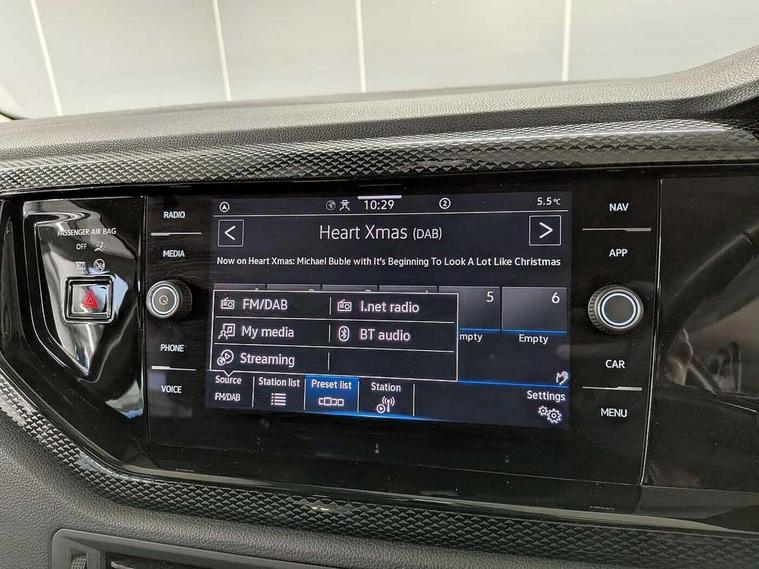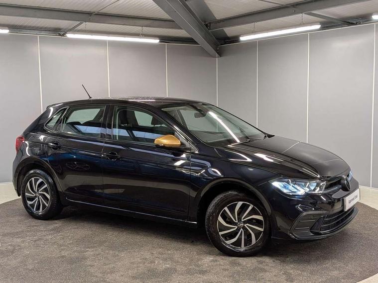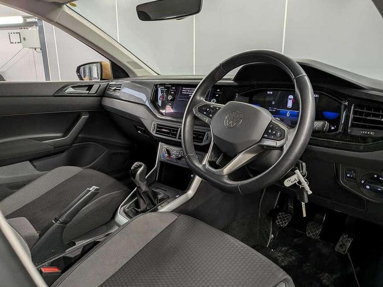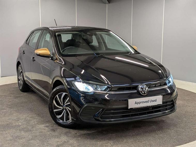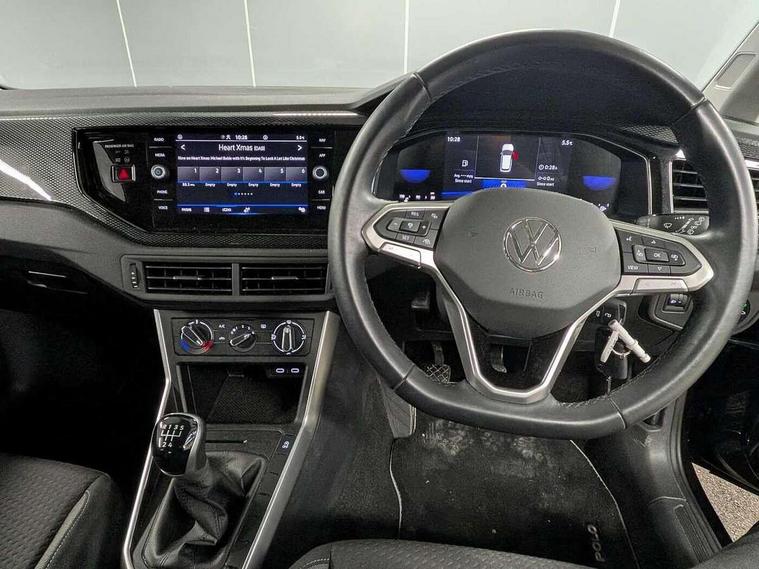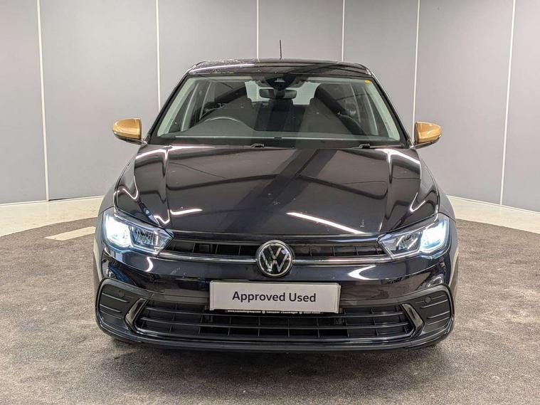 Adaptive cruise control without follow-to-stop and speed limiter, Advanced driver attention and drowsiness monitor, Bluetooth mobile phone interface, Driver alert system, Dynamic road sign display, Emergency call service, Front assist system, Power assisted speed sensitive steering, Preparation for We connect and We connect plus, Speedo and rev counter, electronic odometer, trip, service interval display and fuel gauge, Standard rear axle, Travel Assist - Lane keeping system and traffic jam assist, Travel assist including emergency assist, Trip computer, Warning signal and warning light for front and rear seatbelts not fastened, Washer fluid level indicator, Wireless app connect, Front wheel drive, Rear shock absorpion, Start-stop system with battery regeneration (recuperation - energy recovery during braking), DAB Digital radio, Diversity antenna for FM reception, Front and rear 6 speakers, Automatic dimming interior rear view mirror, Body colour bumpers, Body colour door handles, Body colour door mirrors, Electric front windows, Heat insulating darkened glass in side and rear windows, Heat insulating glass windscreen, Power folding adjustable/heated exterior mirrors and front passenger exterior mirror lowering function, Rain sensor, Rear electric windows, Rear fog light, Rear side wing doors, Rear windscreen washer and wiper with interval delay, Third brake light, 12V power socket in centre console, 2 front and 2 rear reading lights, 2 USB-C ports in the front, 2 USB-C charging sockets on the center console in the rear, 3 rear head restraints, 60/40 split folding rear seat and rear seat bench not split, Chrome plated radiator grille inserts, air vent surrounds and light switch surrounds, Door and side trim panel, Driver and front passenger seat height adjustment, Driver/passenger sunvisors with illuminated vanity mirrors, Front centre armrest, Front seat backrest storage pockets, Front standard seats, Handbrake lever handle in leather, Hartley/Thomas cloth upholstery, Headliner in recycled material, Isofix child seat preparation easy-fit (for two outer rear seats, and front passenger seat) compatible with I-size, Leather trimmed gear knob, Luggage compartment cover, Luggage compartment floor, Luggage compartment lighting, Multifunction steering wheel, Single front passenger seat, Standard pedal cluster, Light and vision pack - Polo, 3 point height adj front seatbelts + pretensioners, 3x3 point rear seatbelts, ABS, Driver and front passenger airbag with front passenger airbag deactivation, Drivers and front passengers safety optimised head restraints, ESC (Electronic stability control) + EDL (Electronic Differntial lock) and ASR (Traction control), Extended and predictive pedestrian/ cyclist protection, Front curtain and side airbags with center airbag, Front disc brakes, Hill hold control, Manual child lock in rear doors, Rear drum brakes, Single tone horn, Tyre pressure loss indicator, Alarm with interior protection, Anti-theft alarm system with interior monitoring, backup horn, and towing protection, Anti-theft wheel bolts, Electronic engine immobiliser, Lava stone black gloss/matt decorative inserts in dash and front door panels, Low rolling resistance tyres,
