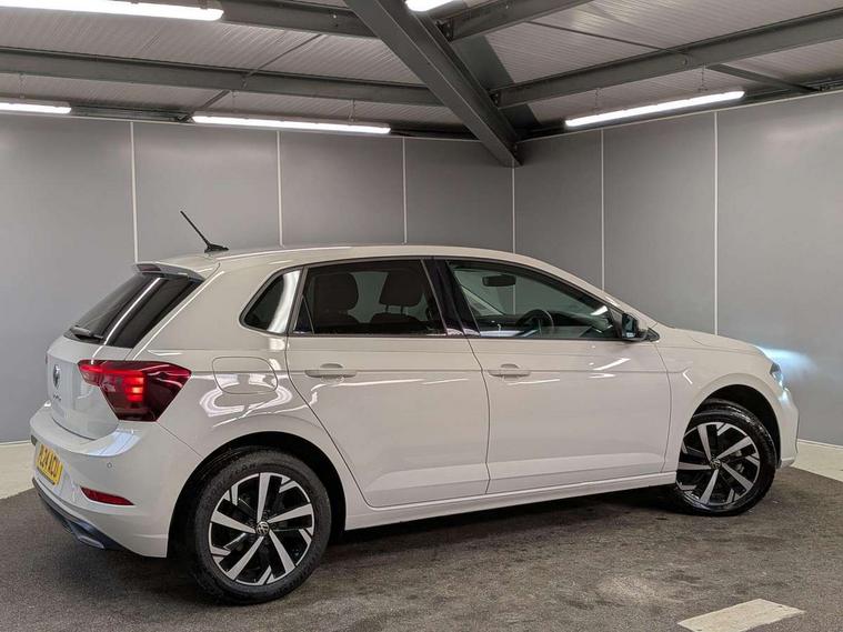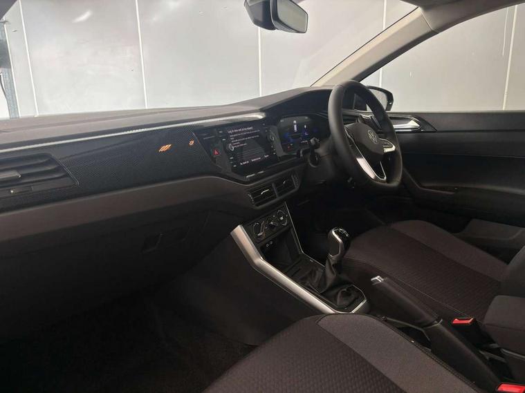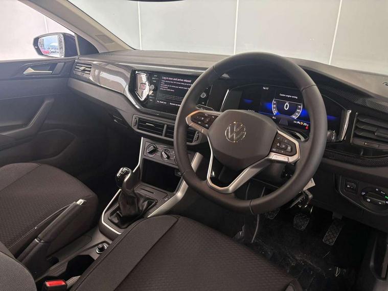 Adaptive cruise control without follow-to-stop and speed limiter, Advanced driver attention and drowsiness monitor, Bluetooth mobile phone interface, Dynamic road sign display, Emergency call service, Mobile phone preparation with inductive charging function, Multifunction front facing camera for distance control, Park distance control, Power assisted speed sensitive steering, Preparation for navigation system with media and internet package, Preparation for We connect and We connect plus, Rear view camera, Speedo and rev counter, electronic odometer, trip, service interval display and exterior temperature gauge, Standard rear axle, Travel Assist - Lane keeping system and traffic jam assist, Travel assist including emergency assist, Trip computer, Warning signal and warning light for front and rear seatbelts not fastened, Washer fluid level indicator, Wireless app connect, Front wheel drive, Rear shock absorpion, Start-stop system with battery regeneration (recuperation - energy recovery during braking), DAB Digital radio, Diversity antenna for FM reception, Front and rear 6 speakers, Automatic dimming interior rear view mirror, Automatic headlight control with LED separate daytime running lights with coming/leaving home function, Body colour bumpers with chrome inserts, Body colour door handles, Body colour door mirrors, Electric front windows, Engine badge deletion, Headlight range adjustment, Heat insulating and laminated safety glass windshield, Heat insulating darkened glass in side and rear windows, LED Headlights, LED rear combination lamps, Power folding adjustable/heated exterior mirrors and front passenger exterior mirror lowering function, Rain sensor, Rear electric windows, Rear fog light, Rear side wing doors, Rear tinted glass from B-pillar backwards approx 65% tinted, Rear windscreen washer and wiper with interval delay, Removable/lockable towbar, Third brake light, 12V power socket in centre console, 2 front and 2 rear reading lights with switch off delay and dimmer, 2 USB-C ports in the front, 2 USB-C charging sockets on the center console in the rear, 3 rear head restraints, 60/40 split folding rear seat and rear seat bench not split, Ceramique roof lining, Chrome plated radiator grille inserts, air vent surrounds and light switch surrounds, Door and side trim panel, Driver and front passenger seat height adjustment, Driver/passenger sunvisors with illuminated vanity mirrors, Front centre armrest, Front seat backrest storage pockets, Front standard seats, Handbrake lever handle in leather, Hartley/Thomas cloth upholstery, Headliner in recycled material, Isofix child seat preparation easy-fit (for two outer rear seats, and front passenger seat) compatible with I-size, Leather trimmed gear knob, Luggage compartment cover, Luggage compartment lighting, Removable luggage compartment floor, Single front passenger seat, Standard climatic zones, Standard pedal cluster, Three spoke leather wrapped multifunction steering wheel, Light and vision pack - Polo, 3 point height adj front seatbelts + pretensioners, 3 point seat belt for centre rear seat, 3 point seatbelts, outer rear with ECE lable, ABS, Driver and front passenger airbag with front passenger airbag deactivation, Drivers and front passengers safety optimised head restraints, ESC (Electronic stability control) + EDL (Electronic Differntial lock) and ASR (Traction control), Extended and predictive pedestrian/ cyclist protection, Front assist with autonomous emergency braking (for Adaptive Cruise Control ACC up to 130 mph), Front curtain and side airbags with center airbag, Front disc brakes, Hill hold control, Manual child lock in rear doors, Rear drum brakes, Single tone horn, Tyre pressure loss indicator, Alarm with interior protection, Anti-theft alarm system with interior monitoring, backup horn, and towing protection, Anti-theft wheel bolts, Electronic engine immobiliser, Lava stone black gloss/matt decorative inserts in dash and front door panels, 16" Torsby alloy wheels, Low rolling resistance tyres,