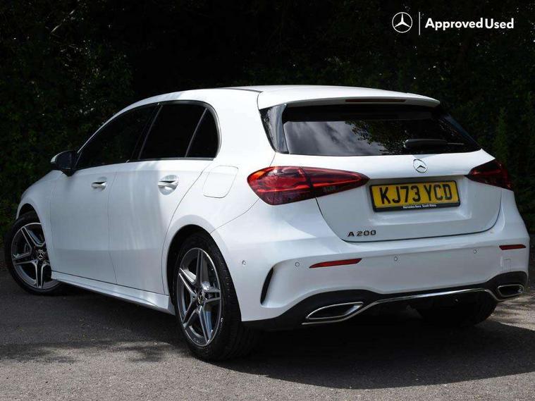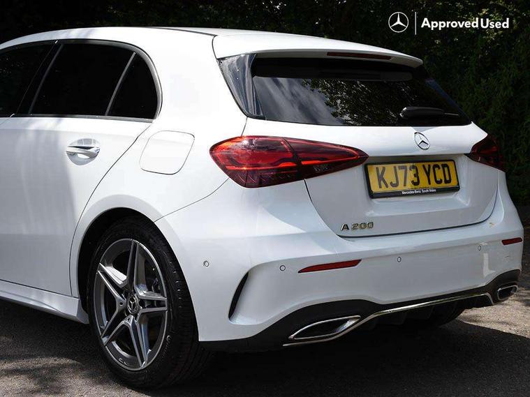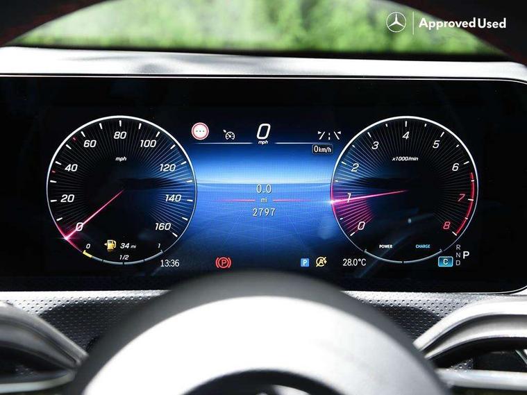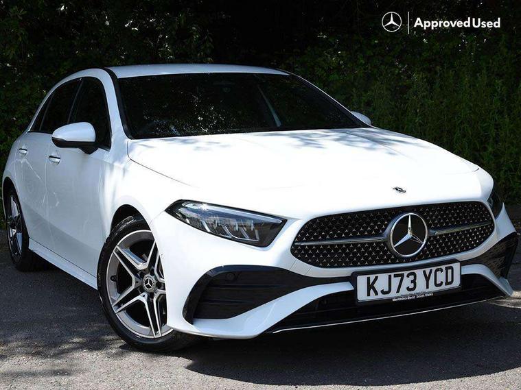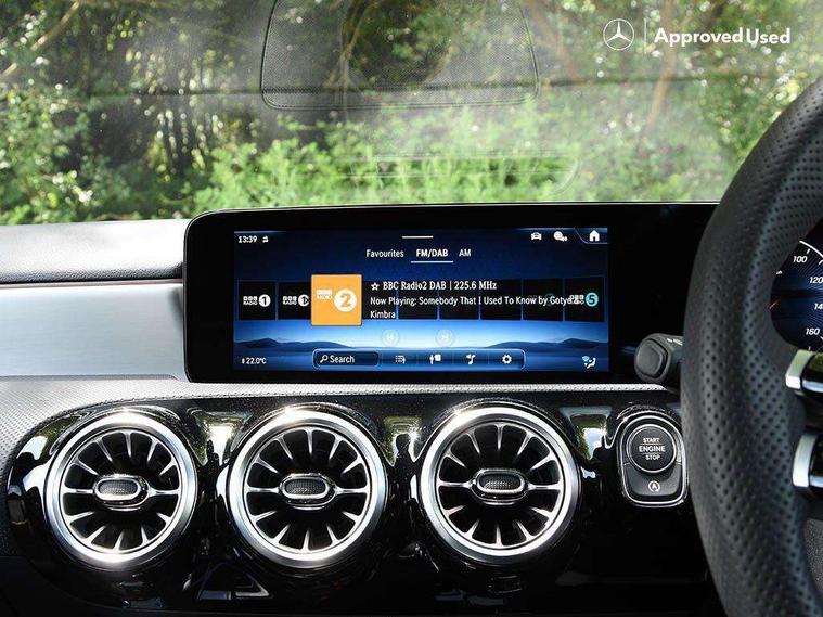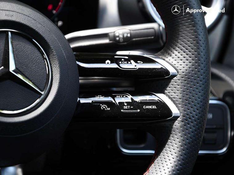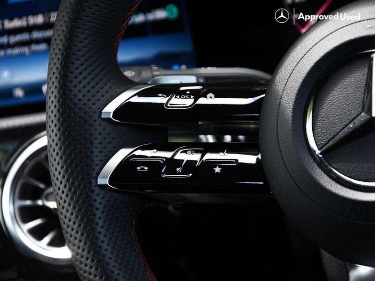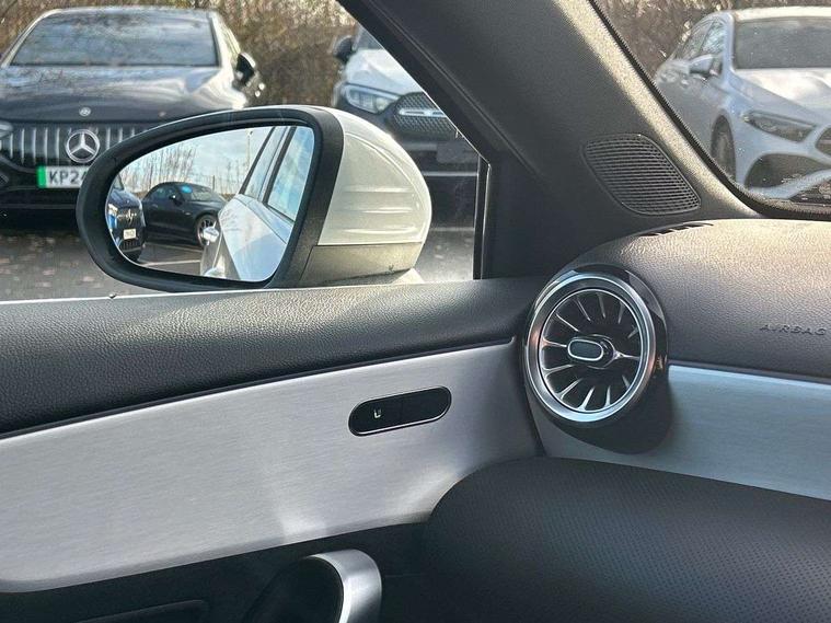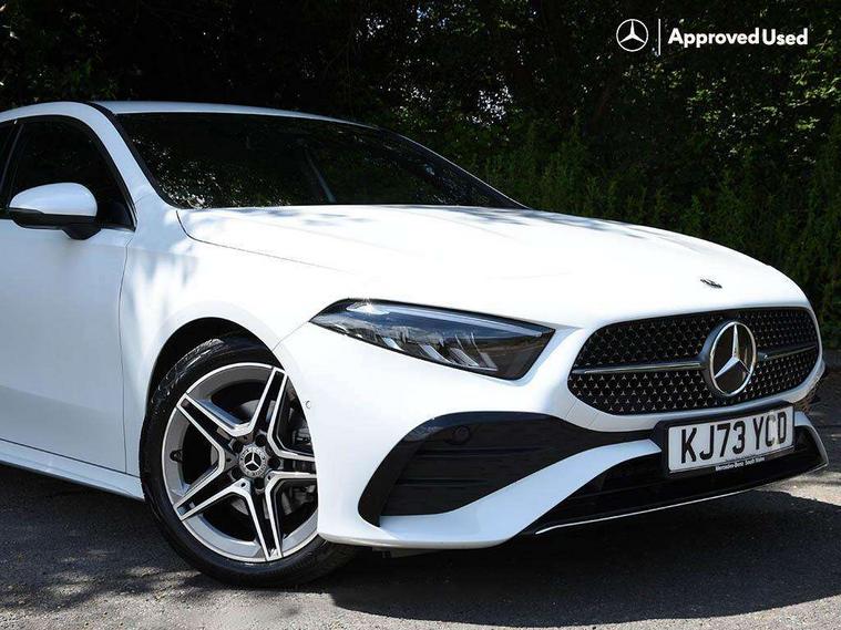 10.25 inch touchscreen central media display, 10.25" Digital instrument cluster display screen, Attention assist, Brake pad wear indicator warning light, Car wash mode, Cruise control + speed limiter, Direct steering, Direction indicators with lane change function, Dual bluetooth interfaces, DYNAMIC SELECT with a choice of driving modes (ECO, Comfort, Sport and Individual), Easy pack tailgate hands-free access, ECO start/stop function, Engine start/stop button, Fluid level warning indicator for fuel, oil, coolant and washer fluid, Fluorescent jacket for driver, Hard-disk navigation, Hey Mercedes Voice activation, Lamp failure indicator, Lane keeping system, Mercedes me connect including emergency call system, accident recovery, breakdown and maintenance management, Mercedes me remote services, Outside temperature gauge, Owners manual in English, Pre-installation of private car share, Preinstallation for Mercedes Benz link, Remote boot closing, Service indicator (ASSYST), Smartphone integration with Apple CarPlay and Android auto, Speed limit assist, Speed sensitive power steering, Tailgate, Trip computer in multifunction display with current consumption indicator, Wireless charging, Lowered comfort suspension, DAB Digital radio, MBUX multimedia system, Mercedes Benz sound system (100 W) with 6 speakers, 4 Electric Front and Rear windows, Adaptive brake lights, AMG body styling - AMG front apron with front splitter and AMG rear apron and visible exhaust tailpipe trim elements, Body colour bumpers, Body colour door handles with chrome inserts, Body colour side skirt, Body coloured door mirrors, Chrome beltline strips, Diamond radiator grille with pins in fine star pattern, Electric adjustable and heated door mirrors with integrated LED side indicators, Exhaust system with 2 visible tailpipe trim elements and rear apron, Headlamp assist automatic headlamp activation, Heat insulating dark tinted rear and rear side windows, Heated glass rear windscreen + timer control, LED High level third brake light, LED High Performance headlamps including integral LED daytime running lamps and adaptive highbeam assist, LED tail lamp, Privacy glass, Radio aerial, Rain sensing windscreen wipers with two sensitivity settings, Rear fog lights, Rear side wing doors, Rear windscreen wiper, Window line trim strip in chrome, 3 seat bench in 2nd row, 3 Spoke flat bottom leather multi function steering wheel with perforated leather in grip area, 4 way lumbar support, 40:20:40 split folding rear seats, Air conditioning - One zone THERMATIC automatic climate control with automatically controlled air distribution, AMG floor mats, Automatic child seat recognition sensor, Black air vents with surround in silver chrome, Black roof lining, Brushed stainless steel sports pedals with rubber studs, Front centre armrest with stowage, Front door sills with Mercedes Benz lettering, Front seat backs luggage nets, Galvanished gear shift paddles on steering wheel, Heated front seats, Height/reach adjustable steering column, Interior lighting - 64 colour Ambient lighting, Interior mirror with reading lamps in black and frameless, Rear armrest with 2 cupholders, Seat occupancy sensor for front passenger seat, Single front passenger seat, Sports seats with integrated headrests, Stowage compartment in centre console with retractable cover, Sunvisors with illuminated vanity mirrors, Twin front cupholders, Light and sight pack - A Class, Mirror package - A Class, Parking pack - A Class, Seat comfort pack - A Class, USB pack plus - A Class, 3 rear 3 point seatbelts, ABS with Brake Assist, Active bonnet, Active brake assist includes forward collision warning system with autonomous braking, Adaptive brake assist with hold function and hill start assist, Black seatbelts, Bonnet with power domes, Childproof locks manually operated for rear doors and electrically operated for rear power windows, Crash responsive emergency lighting, Driver and passenger head and side airbags, Drivers knee airbag, Dual stage driver/passenger airbags, Electronic parking brake, ESP curve dynamic assist, ESP with ASR, Front and rear seatbelt reminder, ISOFIX and top tether child seat fixing points in two outer rear seats, Tyre pressure monitoring system, Warning triangle and first aid kit, Window airbags, Alarm system/interior protection/immobiliser, Guard 360 degree vehicle protection, Keyless entry lock/unlock, Keyless Go, Remote central locking and crash sensor with emergency opening function, Light longitudinal grain aluminium trim, 18" AMG 5 twin spoke light alloy wheels, aerodynamically optimised, painted in termolite grey with high sheen finish, Summer tyres, Tirefit sealant kit,