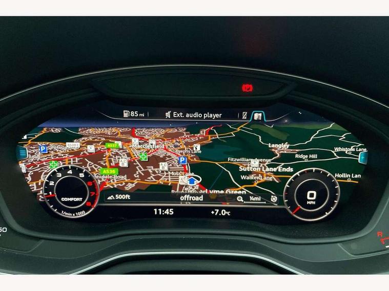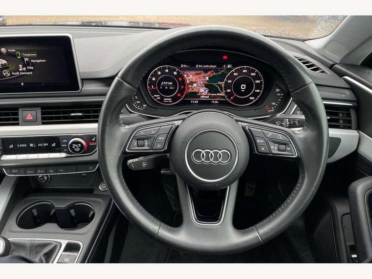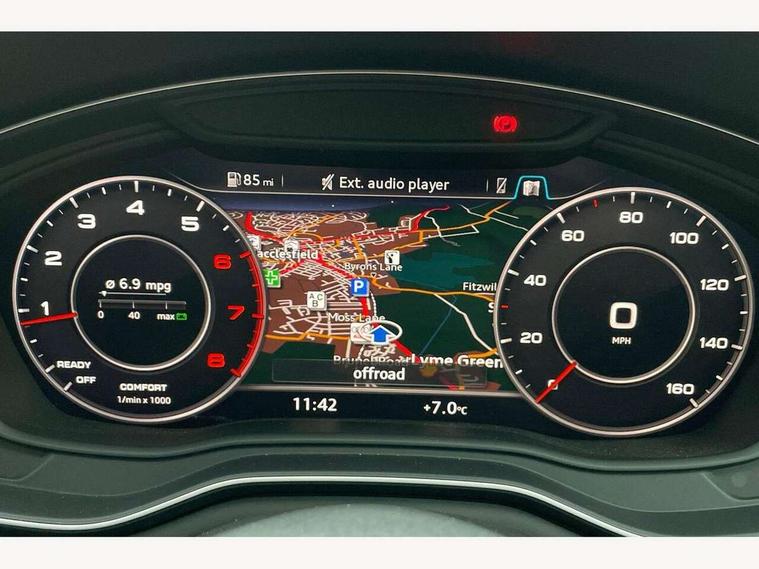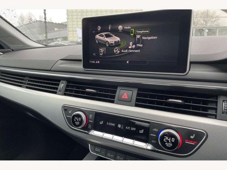 Audi drive select, Audi parking system plus with front and rear sensors, Audi smartphone interface, Colour driver's information system display, Electric boot release, Electro-mechanical PAS, Mobile telephone preparation - bluetooth interface, SD card based satellite navigation system, Service interval indicator, Voice control system, 2 x USB charging port with aux input socket, CD player, DAB Digital radio, MMI radio plus with 7" colour MMI screen and MMI controller, Two SDXC card slots, Air inlets in titanium black, Auto dimming rear view mirror with acoustic windscreen, Body colour bumpers, Body coloured door mirrors, Chrome exhaust tailpipes, Electric adjustable heated door mirrors, Electric front windows, Front fog lights, Heat insulated glass, LED daytime running lights, Rain and light sensors, Rear diffuser strip in matt aluminium silver, Twilight grey matt radiator grille in matt aluminium inlay, 3 spoke multi-function leather steering wheel, Adjustable steering column, Aluminium door sill trims, Automatic tri-zone climate control, Boot mat, Centre console with cupholders, Front centre armrest, Front head restraints, Front sports seats including electric lumbar support, Front/rear floor mats, Isofix front passenger and rear seat preparation, Jack and tool kit, Rear centre armrest, Rear headrests, Split folding rear seat, Top tether anchor plate for isofix child seat, Non Smokers pack, ABS, ASR, Driver/Front Passenger airbags, Electromechanical parking brake, ESP + traction control, First aid kit, Front and rear curtain airbags, Front passenger airbag deactivation, Height adjustable front seatbelts, Hill hold function, Multi-Collision braking, Pre-sense city emergency braking system, Seatbelt warning, Side airbags, Tyre pressure monitor, Warning triangle, Anti theft system, Immobiliser, Keyless Start, Locking wheel bolts, Remote central locking, Space saver spare wheel,