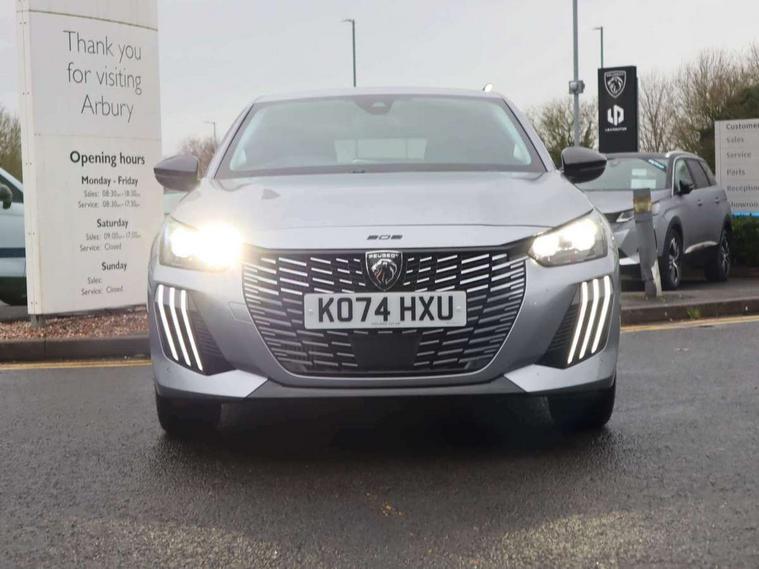 Bluetooth telephone facility, Drive mode select (Eco/Normal/Sport), Driver attention warning, Emergency call service, Exterior temperature indicator with ice warning, Front and rear parking sensors, Gear lever - e-Toggle, Multi function trip computer, PEUGEOT i-Cockpit with 10" configurable colour head up instrument panel, PEUGEOT i-Cockpit with 10" HD capacitive colour touchscreen, PEUGEOT i-Cockpit with compact steering wheel, PEUGEOT SOS and assistance, Push button start, Smart phone docking station, Speed limit recognition and recommendation, Wireless mirror screen with apple carplay and android auto, 6 Speakers - 2 tweeters and 4 door speakers, DAB Digital radio, Peugeot i-connect infotainment system - 10in HD touchscreen, AM/FM/DAB digital radio, Wifi Mirroring, Bluetooth & 2 USB connection, USB-A socket (x1) and USB-C socket (x1) - rear, USB-C data and charge socket and USB-C charge socket in front, Voice recognition for radio, navigation and telephony features, 2 X Rear number plate lights, Acoustic windscreen, Antenna - Gloss Black 'fin' design, Automatic hazard light activation upon heavy brake application, Body coloured exterior door handles, Dark tinted rear side and tailgate windows, Diamond black rear spoiler (roof), Eco LED headlights with electric height adjustment, Electric heated and power folding door mirrors with courtesy floor lighting, Electrochrome rear view mirror, Gloss black B pillar, Gloss black door mirror shells, Gloss black front bumper grille with body colour accents, Gloss black rear cluster connecting strip, Headlights left on audible warning, LED 3 claw horizontal rear lighting signature with daylight function and LED brake lights, LED daytime running lights with distinctive 3 claw signature, LED Rear lighting with distinctive 3 claw horizontal signature with daylight function, LED third brake light, Model designation badges front and rear in basalt grey, One touch electric front/rear windows with pinch protection, Rear bumper with gloss black finish, Rear reversing lights, Rear side wing doors, Rear windscreen wiper triggered automatically in reverse gear, Roof spoiler, Tailgate with heated rear windscreen and wiper blade, Variable front intermittent wipers, 1/3 to 2/3 split folding rear seats, 12V socket, 3 seat bench in 2nd row, Automatic mono zone climate control air condition, Boot lighting, Driver and front passenger comfort seats, Driver and front passenger seat manual adjustment in longitudinal and back rest angle, Driver seat mechanical height adjustment, Electric power steering with reach and rake adjustable steering column, Front centre armrest with storage compartment, Front interior light with 2 reading spotlights, Grained black DRL and lower/upper bumper trim, High centre console with 2 cup holders, Map pockets on the backs of the front seats, Multifunction leather steering wheel, Piano keys gloss black plated toggle switches to access main functions of the vehicle, Quartz contrast stitching to front and rear door armrest, Rear centre headrest, Roof lining - light grey, Seatbelt unfastened on the move audible and visual alert for front and rear seats, Single front passenger seat, Tri material cloth/leather upholstery, Visibility pack - 208, 2x Isofix child seat fitting on outer rear seats, 3 rear 3 point seatbelts, ABS (Anti-lock Braking System) with EBD (Electronic Brakeforce Distribution) and EBA (Emergency Braking Assistance), Child locking functionality on rear doors, Driver and front passenger airbag with passenger airbag deactivation, Driver/front passenger side airbags, Electric parking brake, ESP with Hill Assist, Front and rear curtain airbags, Front and rear disc brakes, Front optimised safety headrests and 3 x rear retractable headrests with height adjustable, Front three point retractable seatbelts with force limiters, Remote plip(x2) for locking, unlocking, includes emergency key blade, Tyre pressure monitoring system, Acoustic vehicle alert system (AVAS), Alarm - Connected, volumetric , perimetric, anti lift sensor, Automatic door locking when moving off, Deadlock, Electronic code immobiliser, Remote central locking, Carbon effect Dashboard, front and rear door panel finish, 16" Noma two tone diamond cut alloy wheels,