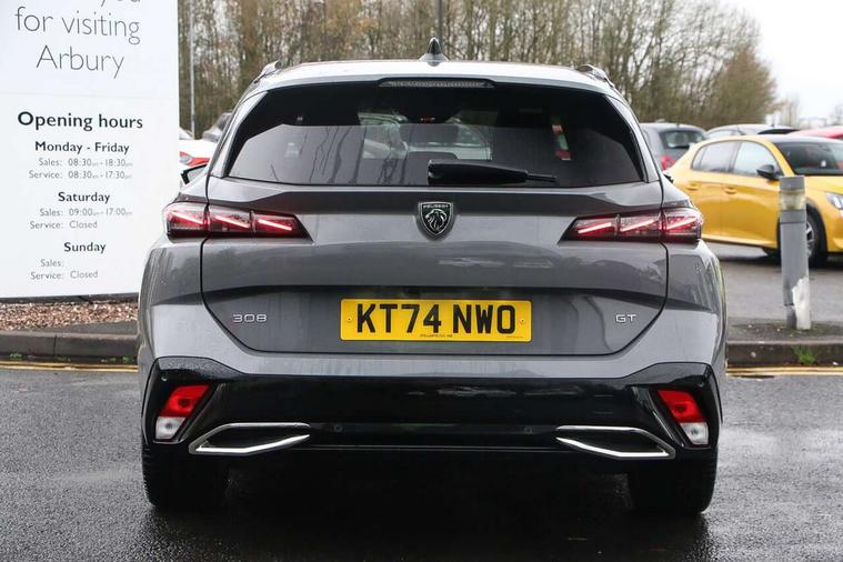 Bluetooth telephone facility, Compact drive selector, Driver attention warning, Emergency call service, Exterior temperature indicator with ice warning, Front and rear parking sensors, Intelligent speed adaptation, Lane keep assist, Mirror screen with wireless apple carplay and android auto, Multi driving mode selector - Eco / Normal / Sport mode selector, Multi function trip computer, Peugeot connect advanced with connected 3D navigation, PEUGEOT i-Cockpit - compact steering wheel, 10" HD colour touchscreen with configurable 3D headup instrument panel, Service interval indicator, Speed limit recognition and recommendation, Sport pedals with foot rest, DAB Digital radio, Peugeot customisable iToggles, Voice recognition for radio, navigation and telephony features, 2 X LED rear number plate lights, Acoustic and tinted windscreen, Acoustic laminated front side windows, Automatic hazard light activation upon heavy brake application, Automatic triggered rear windscreen wiper in reverse gear, Bi-tone roof rails, Body colour door handles, Body colour rear roof spoiler, Dark chrome chequered radiator grille, Dark tinted rear side and tailgate windows, Electric operated/heated door mirrors, Extended lower body sills to the front and side, Framed electrochromatic rear view mirror, Front and rear electric windows with one touch/anti pinch, Full LED matrix headlights with automatic adjustment, Gloss black finish B pillar, Gloss black rear cluster connecting strip, GT model designation badging on tailgate, High beam assist, LED 3rd brake light, LED side indicator lights integrated into door mirrors, Lion emblem badging on front wings, Model designation badges on front and rear, Nera black door mirrors, Peugeot aluminium door sills, Peugeot signature LED daytime running lights, Power folding door mirrors, Rear full LED 3D Peugeot new claw effect lights with sequential welcome sequence upon unlocking the vehicle, Rear lower bumper gloss black diffuser effect trim, Rear reversing lights, Rear side wing doors, Tailgate with heated rear windscreen and wiper blade, Twin exhaust pipes with chrome surround, 12V socket, 2 front USB socket including 1 USB type c, 3 seat bench in 2nd row, 40/20/40 flat folding rear seats, 8 Colour personalisable ambient lighting, Automatic air conditioning with AQS 3, Belomka tri-material woven cloth with Isabella leather effect upholstery, Carpet mats, Central front armrest with storage compartment, Dynamic front seats, Electric power steering with reach and rake adjustable steering column, Front central console with two cup holders, LED Glovebox light, Manual driving mode - change gear manually via steering mounted paddles, Multifunction full grain leather steering wheel with admite green stitching & GT badging, Piano keys gloss black plated toggle switches to access main functions of the vehicle, Rear centre armrest with cupholders, Roof lining - Mistral black, Seatbelt unfastened on the move audible and visual alert for front and rear seats, Single front passenger seat, Sunvisor with concealable mirrors and LED lighting, Twin USB charging ports in the rear (Type C), Two position boot floor, Driver sport pack with sports power steering - 308, Visibility pack with automatic magic wash windscreen wipers - 308, 2x Isofix child seat fitting on outer rear seats, 3x Rear three-point retractable seatbelts with force limiters in the outer rear seats, ABS + EBD + EBA, Active safety brake with night function/cyclists/pedestrians, Adaptive driver and front passenger airbags with passenger airbag deactivation function, Automatic post collision braking, Child locks on rear doors, Driver/front passenger side airbags, Electronic parking brake, ESP, Front and rear curtain airbags, Front optimised safety headrests and rear retractable headrests (x3), height adjustable, Front three point retractable seatbelts with force limiters, Front/rear disc brakes, Hill start assist, Tyre pressure sensor, Automatic door locking when moving off, Deadlocking system, Electronic code immobiliser, Locking wheel nuts, PEUGEOT Open and Go keyless entry system, Thatcham cat. 1 alarm with anti lift sensor,