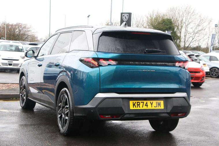 Adaptive cruise control with Stop and Go, Bluetooth with two microphones (Connect up to 2 phones), Drive modes select (Eco, normal and sport) with configurable ambient lighting, Driver foot rest, Driver profile selection, E-call, Exterior temperature indicator with ice warning, Front parking sensor, Front passenger seat detection, Hands free Smart Electric Tailgate (foot operated), Lane keep assist, Manual gear changes via steering mounted paddles, Multi function trip computer, Natural voice recognition, PEUGEOT i-Cockpit - 21" HD panoramic curved display incorporating instrument panel and touchscreen with 3colour themes, PEUGEOT i-connect advanced HD fully customisable touch screen, Navigation with Tom Tom Live updates and over the air map updates, PEUGEOT SOS and assistance, Rear parking sensor, Speed limit and traffic sign recognition and recommendation, Wireless mirror screen with apple carplay and android auto, Wireless smartphone charger with status light and ambient lighting, Dynamic stability control and electronic anti-skid system, 1x USB-C port in front, 6 speakers, AM/FM bi-tuner, DAB Radio (Digital Audio Broadcasting), Peugeot customisable virtual iToggles, 5008 model designation badges front and rear in basalt grey, Acoustic windscreen, Automatic hazard light activation upon heavy brake application, Automatic headlamp activation, Automatic windscreen wiper activation with interval wiping intensity control, Black diamond roof and floating effect rear spoiler finished in nera black metallic, Body coloured exterior door handles, Dark tinted privacy glass for rear door, Tailgate and Quarter windows, Door mirrors - Welcome lighting and integrated LED indicators, Electric adjustable/heated/folding door mirrors, Flat blade wipers with magic wash integrated nozzles, Frameless electrochrome rear view mirror, Front and rear electric windows with one touch, Front grille with body coloured accents, Gloss black connecting strip between rear lights, Gloss black finish B pillar, Gloss black roof rails, Grained black lower door claddings and wheel arches, Hybrid rear badging in basalt grey, Laminated windscreen, LED exterior lighting, LED third brake light, Lower front and rear bumper trims in meteor grey, Orbital gloss black door mirrors, Peugeot 3-claw signature front and rear daytime running lights, PEUGEOT shield on front wings, Pixel LED Technology headlights with adaptive high beam assist, Rain sensor, Rear full LED 3D peugeot signature claw effect lights with daylight function, Rear side wing doors, Rear wiper, Tailgate with heated rear window, 2 cupholders in front centre console with closed storage, 2 seat bench in 3rd row, 2nd Row Manual Window Blinds, 3 seat bench in 2nd row, 3x 12V sockets (Cabin front and rear and boot), 4 Grab handles retractable and damped, 4 tie down luggage rings, 40/20/40 folding 2nd row seat backrest with 60/40 base with easy access to 3rd row seat, Additional rear blower, Aluminium pedals, Arch design central console with concealed storage, Central front armrest with ventilated storage compartment and LED lighting, Chrome finish interior door handles, Compact heated multifunction steering wheel with full grain leather Iced Clay stitching, gloss black and satin chrome detailing and GT badge, e-Toggle compact gear selector, Electric power steering with reach and rake adjustable steering column, Glasses storage box, roof mounted, LED boot light, LED footwell lights, LED front and rear roof lights, LED Glovebox light, LED illuminated driver and passenger concealed sunvisor mirrors, Luggage cover, Luxury front and rear carpet mats with Iced Clay stitching and GT logo, Mistral black pillars and headlining, Quick launch cabin heating/cooling function, Rear air vents, Rear centre 3 point seat belt, Roll up awning fitted to tailgate, Roof lining - Meteor grey, Seatbelt unfastened on the move audible and visual alert for front and rear seats, Single front passenger seat, Stainless steel PEUGEOT door sill trims, Tri zone climate control, Twin USB charging ports in the rear (Type C), Two bag hooks, Under floor storage in boot, 2x Isofix child seat fitting on outer rear seats with zipped cover, 3x3 point rear seat belts, ABS (Anti-lock Braking System) with (EBD) Electronic Brakeforce Distribution, Adaptive driver and front passenger airbags with passenger airbag deactivation function, Advanced Emergency Braking System with radar (AEBS3) providing night detection of pedestrians and cyclists, Child locking functionality on rear doors, Electronic parking brake, Emergency Brake Assist (EBA), Front and rear curtain airbags, Front and rear side airbags, Front optimised safety headrests and 3 x rear retractable headrests with height adjustable, Front/rear disc brakes, Hill start assist, Post collision safety brake, Seatbelts - Front and rear outer seats with pyrotechnic pretensioners and force limiters, Tyre under inflation monitoring and detection (Indirect), 2x Keys (Lock, Unlock, Boot release function with concealed key), Acoustic vehicle alert system (AVAS), Automatic door locking when moving off, Deadlocking system, Electronic code immobiliser, Exterior passenger door lock, Locking wheel nuts, Peugeot Open and Go (keyless entry and push button start), Seatbelts reminder and unfastend warning indicator, Thatcham category 1 Perimetric and volumetric alarm with anti-lift detection, Aluminium printed dashboard and front door panel Alcove decor, Textile decor for dashboard, door panels and centre console arch, 19" YARI diamond cut alloy wheels with star center cap in orbital black, Michelin e-primacy class A tyres, Tyre repair kit includes 12V compressor, Sealant and storage box,
