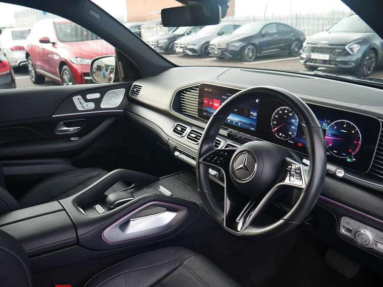 12.3 High resolution wide screen cockpit display with choice of three display styles Classic, Progressive or Sport and unique ambient lighting setting, 360 degree camera, Active lane keeping assist, Active parking assist with PARKTRONIC, Attention assist, Blind spot assist, Brake wear warning display, Direct steer speed sensitive steering, DYNAMIC SELECT with a choice of driving modes (ECO, Comfort, Sport and Individual), Easy-pack tailgate - Powered opening/closing automatically, ECO start/stop function, Geofencing, Hard-disk navigation, MBUX augmented reality for navigation and live traffic, MBUX voice control activated by keywords "Hey Mercedes", Mercedes Benz emergency call system, Mercedes me connect - vehicle set up and monitoring, Outside temperature display, Pre-installation for digital key transfer, Remote boot release, Service indicator (ASSYST), Smartphone integration with Apple CarPlay and Android auto, Speedtronic cruise control with speed limiter, Status display for rear seat belts in instrument cluster, Traffic sign assist, Trip computer in multifunction display showing current fuel consumption, Wireless charging, 85 litre fuel tank, 9G TRONIC 9 speed automatic transmission, Airmatic air suspension with adaptive damping system, Diesel particulate filter (DPF), Mild Hybrid starter alternator, Additional USB connection, Bluetooth interface for hands free and audio streaming, Burmester surround sound system, DAB digital radio tuner, Front and rear USB ports, Sound personalisation, Adaptive brake lights, Aluminium look, illuminated running boards with rubber studs, AMG bodystyling front and rear aprons, Auto headlights, Automatically dimming rear view mirror, Body colour door mirrors, Body coloured bumpers, Electric windows with one touch opening/closing and obstruction sensors, Electrically adjustable, heated, folding exterior mirrors, Exterior styling - front bumper, radiator grille and front air intakes, Heat insulating dark tinted glass, LED 3rd brake light, LED daytime running light signet, LED rear lights, Multibeam LED headlights with adaptive highbeam assist plus, Radio aerial integrated into rear window, Rain sensing windscreen wipers, Rear side wing doors, Rear wiper, Roof rail system, Top surround of side windows in polished aluminium, Transparent Bonnet, Visible twin pipe exhaust system integrated into bumper, Waistline in polished aluminium, 3 spoke nappa leather multifunction sports steering wheel, 3rd row of seats for 2 people, 4 way adjustable front head restraints and 2 way rear head restraints, 40:20:40 split folding rear seats, AMG floor mats with AMG lettering, Automatic child seat recognition sensor, Black fabric roof liner, Electric height/reach adjustable steering column, Electrically adjustable rear seats, Front centre armrest with stowage compartment and illuminated grab handles, Gearshift paddles on steering wheel, Glove compartment - lockable, air conditioned and illuminated, Heated front seats, Illuminated front door sill with Mercedes Benz lettering, Interior lighting - 64 colour Ambient lighting, Leather upholstery, Luggage compartment cover, Seat occupancy sensor for front passenger seat, Second row three seats, Single front passenger seat, Sports pedals in brushed stainless steel with rubber studs, Sunvisors with illuminated vanity mirrors, THERMATIC 2 zone automatic climate control, Touchpad, Keyless go comfort package with comfort opening - GLE, Memory package with 4 way lumbar support - GLE, Active bonnet, Active brake assist with HOLD function and brake e-drying function, Airbags - driver and front passenger, front sidebag, pelvis bag and window airbags, Anti-lock braking system (ABS), Black seat belts, Childproof locks manually operated for rear doors and electrically operated for rear power windows, Drivers knee airbag, Electronic parking brake, Electronic Stability Programme (ESP), ISOFIX child seat points with automatic child seat recognition, Perforated front brake discs and brake calipers with Mercedes-Benz lettering, Pre safe impulse side, Three point rear seat belts, Tyre pressure monitoring system, Warning triangle and first aid kit, Alarm system/interior protection/immobiliser, Central locking with interior switch, automatic locking and crash sensor with emergency opening function, Chrome surround in electric key, Dashcam, Guard 360 degree vehicle protection plus, Dashboard and door beltlines in ARTICO man made leather with contrast top stitching, Trim - Centre console, anthracite open pore oak wood trim, 20" AMG 5 twin spoke light alloy wheels, TIREFIT with tyre inflation compressor,