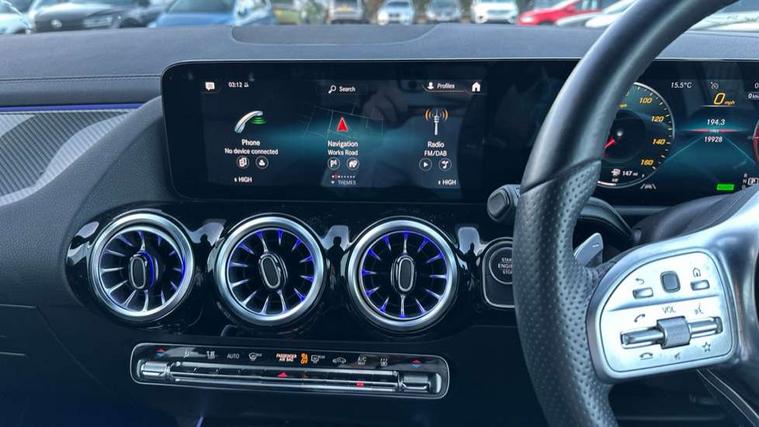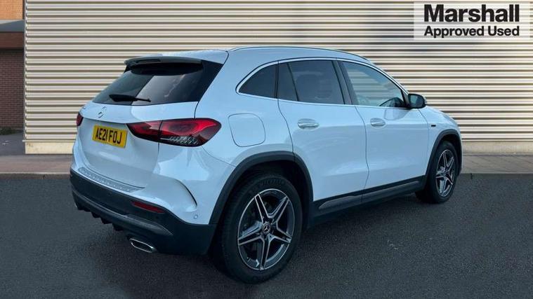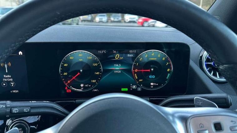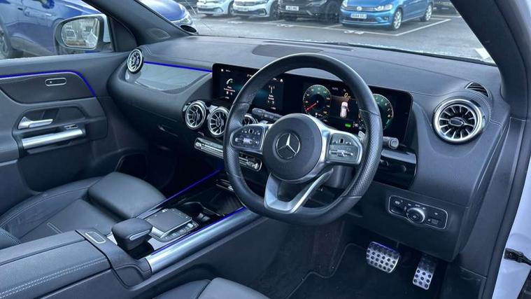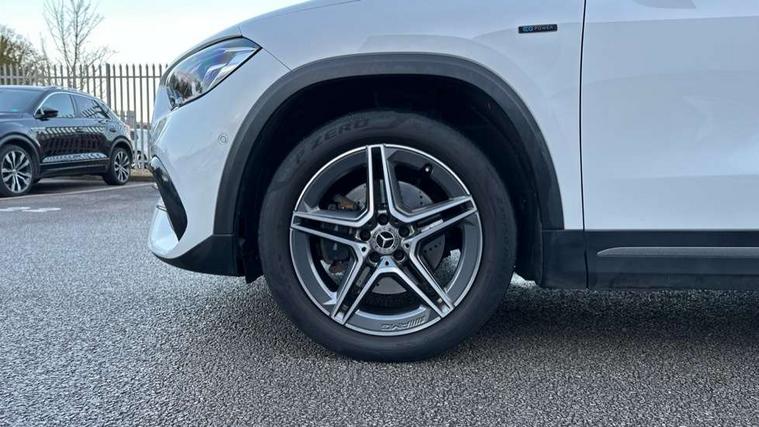 10.25 inch touchscreen central media display, 10.25" Digital instrument cluster display screen, Acoustic ambient protection, Active lane keeping assist, Attention assist, Augmented reality navigation, Cruise control + speed limiter, Direct steering, DYNAMIC SELECT with a choice of driving modes (ECO, Comfort, Sport, Sport+ and Individual), Easy-pack tailgate, ECO start/stop function, Fluid level warning indicator for fuel, oil, coolant and washer fluid, Hard-disk navigation, Hey Mercedes Voice activation, Lamp failure indicator, Mercedes me connect including emergency call system, accident recovery, breakdown management and maintenance, Mercedes me remote services, Multi function trip computer, Outside temperature gauge, Owners manual and service booklet in English, Pre-installation of private car share, Radio aerial integrated into front and rear windshields, Remote and charging services plus, Service indicator (ASSYST), Smartphone integration with Apple CarPlay and Android auto, Speed limit assist, Status display for rear seat belts in instrument cluster, Wireless charging, 7.4 kW onboard charger, Charging system - AC charging system rated at 7.4 kW, Comfort suspension, Mode 2 charging cable with 3 pin plug, Mode 3 charging cable 22 kW, Rear axle multi-link, 2 USB ports (type C) in rear stowage compartment and one in front of center console, Bluetooth connectivity including audio streaming, DAB Digital radio, MBUX multimedia system with DAB digital radio and touchpad including satellite navigation, Media interface, Mercedes-Benz advanced sound system - 225W, Adaptive brake lights, Aerial for GPS, Aluminium roof rails, AMG front and rear apron, AMG specific/dual flow exhaust pipes in chrome (non-functional), Automatic headlamp activation, Beltline strips and weather strip in chrome, Black grained claddings with chrome parts, Body colour bumpers, Body colour door mirrors, Body coloured door handles with chrome insert for keyless entry, Car wash function, Dark privacy glass from B-pillar backwards, Electric front windows, Electric rear windows, Electrically adjustable and heated door mirrors with integrated LED indicators, EQ badging, Heated glass rear windscreen + timer control, Heated windscreen wash system, Interior mirror with black reading lamps and frameless, LED high performance headlamps with integrated LED daytime running lights, LED tail lights in two piece design, LED third brake light, Matt titanium grey front and rear apron trim, Pre-installation for trailer coupling, Rain sensor windscreen wipers, Rear fog lights, Roof spoiler, Single lamella raditor grille with chrome dotted diamond grille and inlay, 12V power socket in centre console, 3 spoke multifunction sports steering wheel in nappa leather with flattened bottom and perforated grip area, 40:20:40 split folding rear seats with backrest, Adjustable head restraints, Air conditioning - Two zone thermotronic luxury automatic climate control with display, Ambient lighting in front headrests, AMG floor mats with AMG lettering and stiched edging, Auto Mercedes-Benz child seat recognition sensor, Black roof lining, Brushed door pulls in silver chrome, Charging socket, Courtesy light in boot, Front centre armrest with stowage, Galvanished gear shift paddles on steering wheel, Heated front seats, illuminated door sills with changeable cover, Illuminated glovebox, Interior lighting - 64 colour Ambient lighting, Leather trimmed gearknob, Luggage net on driver/front passenger seat backrest, Manually height and reach adjustable steering column, Multi-gesture touchpad control on center console, Net in front passenger footwell, Pre-entry climate control, Sports pedals in brushed stainless steel with black rubber studs, Sports seats, Stowage compartment in centre console, Stowage compartment with retractable cover, Sunvisors with illuminated vanity mirrors, Twin front cup holders, Two outer rear seat isofix and top tether child seat fixing points, AMG body styling pack - GLA, Comfort seat pack - GLA Class, Interior lighting with light and sight pack - GLA, Load compartment pack - GLA, Mirror pack - GLA Class, Parking pack - GLA, 3 rear 3 point seatbelts, ABS with Brake Assist, Active bonnet pedestrain safety measure which detects an impact and raises bonnet by 65mm, Active brake assist includes forward collision warning system with autonomous braking, Adaptive brake assist with hold function and hill start assist, Bonnet with power domes, Brake pad wear warning indicator, Childproof locks manually operated for rear doors and electrically operated for rear power windows, Crash responsive emergency lighting, Driver and passenger head and side airbags, Drivers knee airbag, Dual stage driver/passenger airbags, Electronic parking brake, ESP curve dynamic assist, ESP with ASR, Front and rear seatbelt reminder, Front brake callipers with Mercedes Benz logo lettering on front, Front passenger seat occupancy sensor, Internally ventilated brakes with perforated brake discs at the front, Radar-based recuperation, Tyre pressure monitoring system, Warning triangle and first aid kit, Window airbags, Alarm system with immobiliser and interior protection -Thatcham category 1, Keyless go lock/unlock, Keyless Go starting function, Remote central locking and crash sensor with emergency opening function, Vehicle key with decorative surround in chrome, Carbon structure trim, Chrome air vent surrounds, 19" AMG 5 twin spoke light alloy wheels aerodynamically optimised painted in tantalite grey with a high sheen finish, Summer tyres, Tirefit tyre sealant kit,
