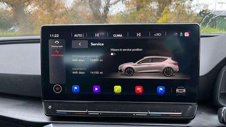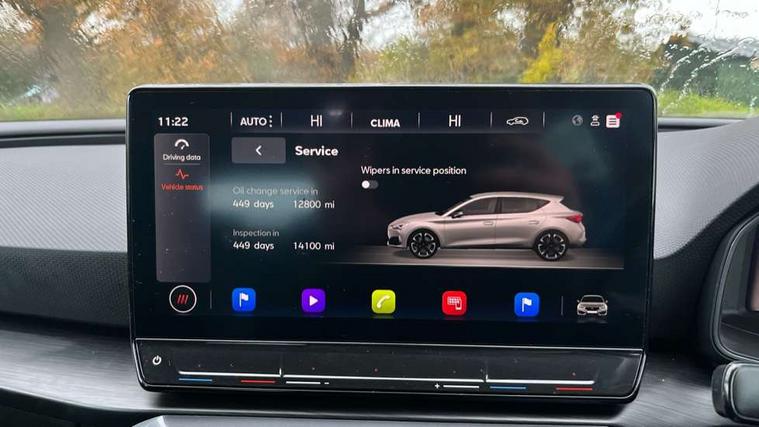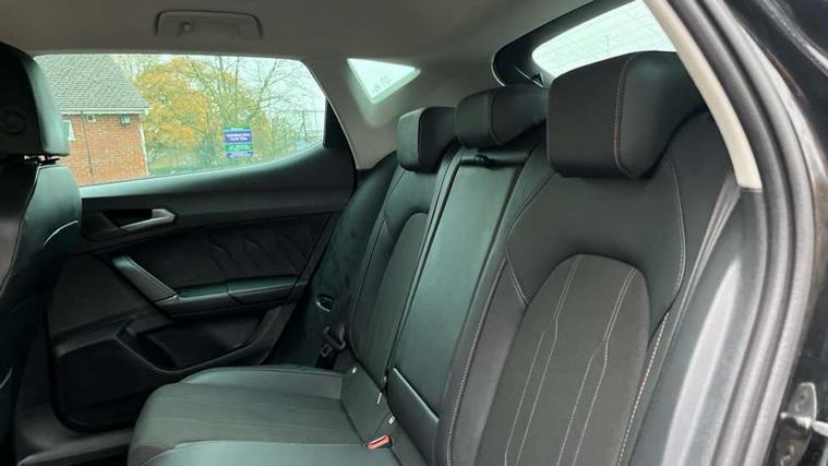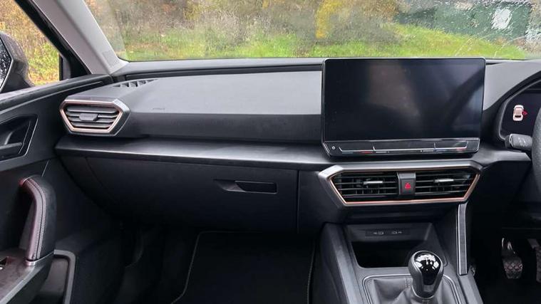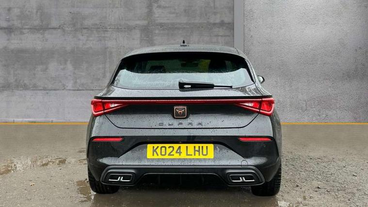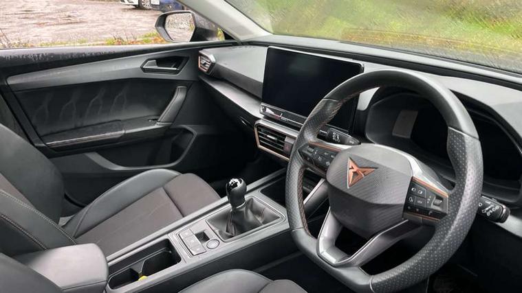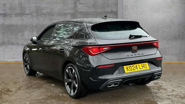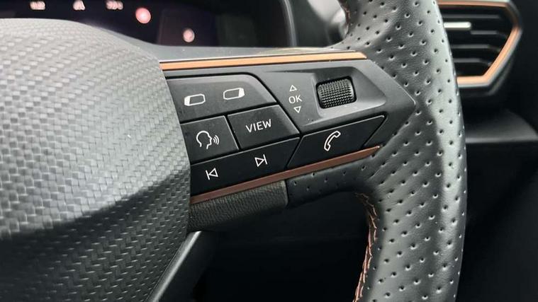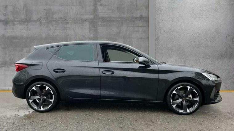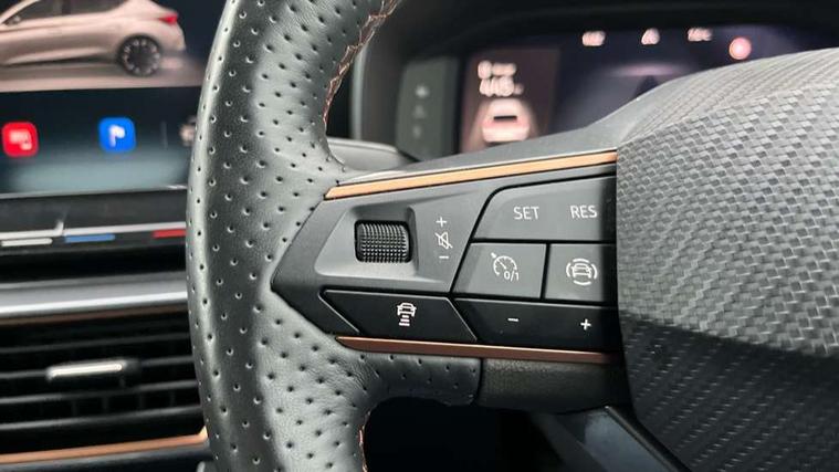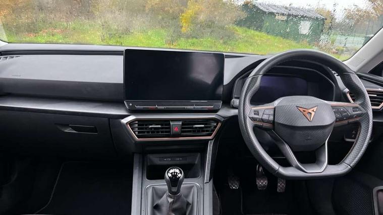 CUPRA drive profile selection with (Comfort/Sport/Individual), throttle response and gearshift mode, Digital cockpit, E-call, Electro mechanical speed sensitive power steering, Four x USB Type C ports (2 in front and 2 in rear), Front assist with forward collision warning braking reaction to vehicles, pedestrians and cyclists, Full link smartphone integration with Mirror Link, wireless Apple CarPlay and wired Google Android Auto, Lane assist, Lockable tailgate, Park assist (inc front/rear parking sensors), Rear view camera, RPM, trip computer, outside temp gauge, instrument light brightness, low fuel warning light, lights on reminder, gearshift indicator, Service interval indicator, Start/stop system with regenerative braking, Wireless phone charger, Sports suspension, Auxiliary input socket, Auto dimming rear view mirror, Body colour door handles, Body coloured bumpers, Cupra sports bumpers, Dark tinted rear windows, Electric front/rear windows, Electrically adjustable, heated and folding door mirrors, LED front fog lamps with cornering function, LED headlights with dynamic turn signals, tail lights, rear fog lights with rear coast to coast lighting, Rain sensing wipers, Rear diffuser with twin exhaust pipe on each side, Rear side wing doors, Rear wash/wipe, Separate daytime running light with automatic headlight control and coming home feature, Third brake light, 12v power supply in centre console, 3 seat bench in 2nd row, 5 headrests, 60/40 split rear bench seat with armrest, Ambient lighting with glovebox, footwell and single monocolour, Cupra Leather flat bottomed, perforated steering wheel, Driver/passenger manual seat height adjustment, Folding boot cover, Front and rear reading lights X 4, Front centre armrest, Front seats manual lumbar adjustment, Grey headlining, Height/reach adjust steering wheel, Illuminated interior front door sills, ISOFIX points in outer rear seats with top tether anchorage points, Jack and tool kit, PVC/Cloth upholstery with copper stitching, Single front passenger seat, Sports seats, Sunvisors with illuminated mirror, Three zone climate control, Media system plus with navigation pack - Leon Cupra, Safety and driving pack (M) - Cupra leon, 3 point seatbelts on all rear seats, ABS, Brake control system - ESC and brake booster, Child proof door locks, Cupra black brake calipers, Driver and front passenger airbags with front passenger airbag de-activation, front side and curtain airbags, Electronic parking brake, Extended safety system - seat belt tensioner, window closure and hazard lights, Hill hold control, Rear disc brakes, Seat belt reminder for front and rear seats, Tiredness recognition system, Tyre pressure monitoring system, Anti theft alarm system with interior monitoring in cab, backup horn and towing protection, KESSY Advanced - Keyless start, keyless entry, Locking wheel bolts, Chrome and copper interior detailing, 18" Machined sport black and silver alloy wheels with 92Y tyres,