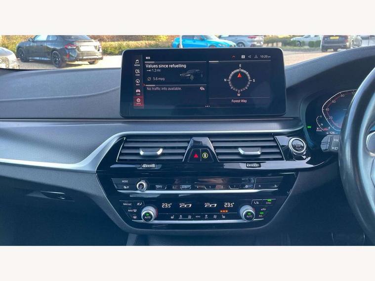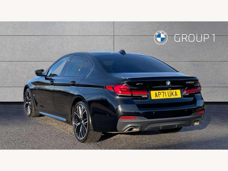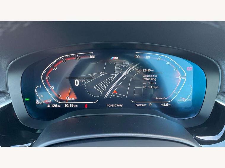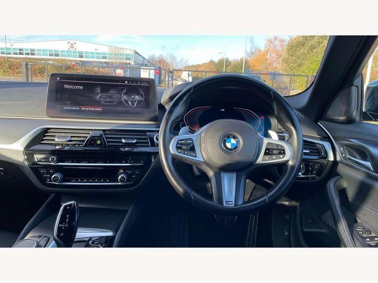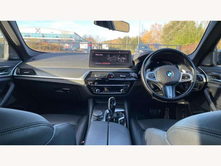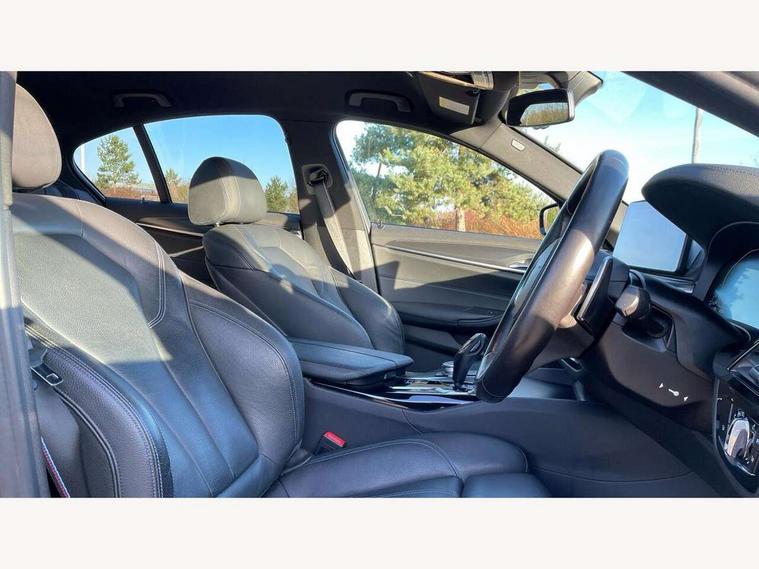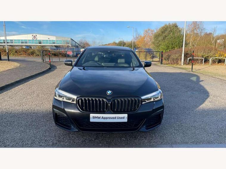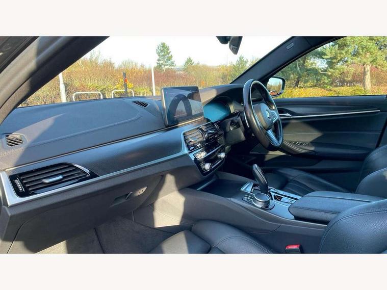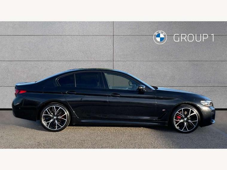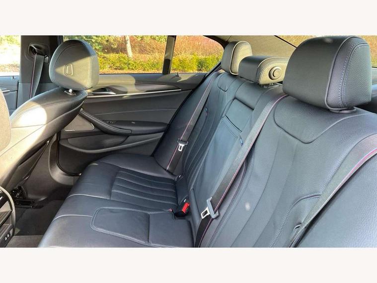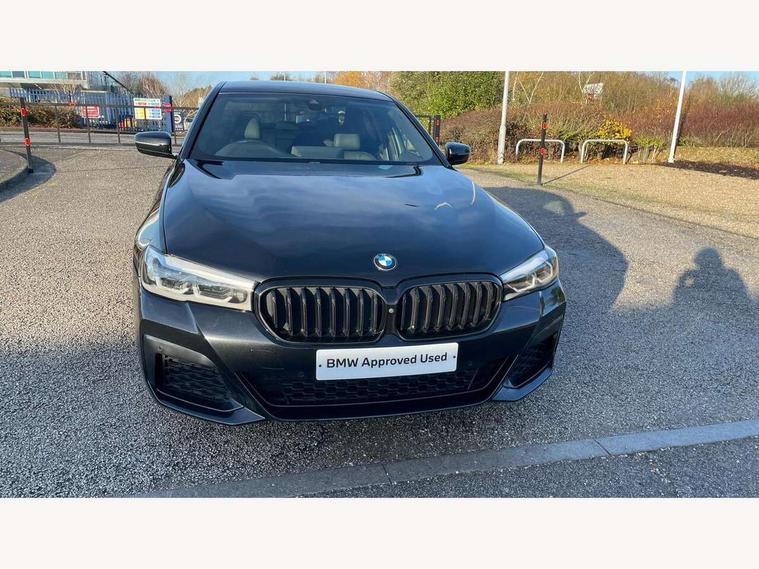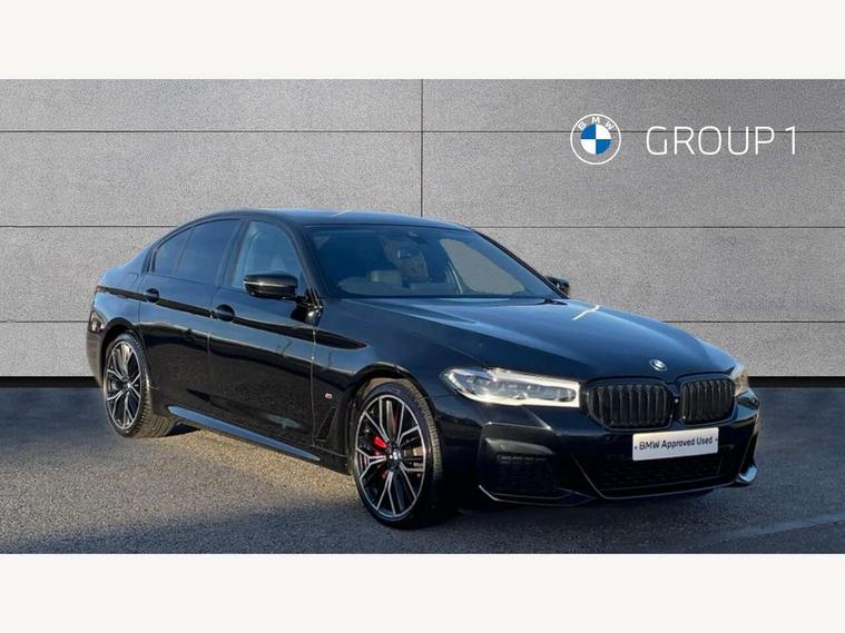 32GB hard disc drive (HDD) memory, Active Guard, BMW Live Cockpit Professional sat nav system with 12.3" instrument display and high resolution control display, BMW Teleservices, Brake pad wear indicator, Cruise control with brake assist, Driving experience switch, Electric Power Steering (EPS) with Servotronic, iDrive touch controller with shortcut buttons, Intelligent emergency call, Multifunctional instrument panel, Oil sensor for level and grade, On board computer inc. average speed, fuel consumption, liquid crystal Info display, journey computer, outside temperature display, personal profile, On-board diagnosis - OBD, Powered by Operating System 7.0, Service interval indicator, Speed limiting function, Stop/start button, 48V Mild hybrid technology, Diesel particulate filter, Drive performance control with ECO PRO comfort + sport mode, Engine cover with twin turbo designation, M sport suspension, Steptronic transmission with gearshift paddles on steering wheel, DAB Digital radio, Favourite buttons, Acoustic glazing, All round anti-corrosion system, Automatic windscreen wipers and automatic headlight, Automatically dimming rear view mirror, BMW Individual high gloss shadow line includes exterior mirror frame, window frame surround, B pillar finish, air breather in high gloss black, Body colour door handles, Body coloured bumpers, Door handle illumination, Dynamic brake lights with LED technology, Electric front and rear windows with fingertip open/close + anti-trap facility and comfort closing function, Electrically adjustable and heated exterior mirrors includes integrated direction indicators and automatic parking function, Folding exterior side mirror with auto- dimming, Follow me home headlight function, Heated windscreen washer jets, High gloss black active air stream kidney grille, LED daytime running lights, LED third brake light, M designation on front side panels, left and right in chrome, Trapezoidal visible exhaust tailpipes, xDrive designation on tailgate, 12V power socket in front and rear, 2 cup holders in front, Armrest - front and rear integrated door trim, centre console includes storage compartment, rear centre includes 2 cupholders, Child seat ISOFIX attachment with rear outer seats includes top tether, Front and rear footwell lights, Front reading lights, Height and length adjustable steering column and activation via lateral lever on the steering column, Lockable glove compartment with light, M door sill finishers, M specific pedals, M specific velour floor mats, Multifunction controls for leather steering wheel, Rear headrests, Three spoke sport M leather steering wheel, Ambient lighting pack - 5 Series, Connected package professional - 5 Series, M Aerodynamic pack - 5 Series, Parking assistant pack - 5 Series, Airbags - driver/front passenger, rear and side, first and second row seats head airbags, front passenger seat airbag deactivation, Anti-lock braking system (ABS), Automatic Stability Control (ASC), Brake assist function, Brake energy regeneration, Cornering brake control (CBC), Crash sensor activating central locking release, hazard warning lights, fuel cut off and interior lighting, Deformation zones - front and rear with door reinforcements and bumpers up to 2.5 mph, DSC - Dynamic Stability Control, Dynamic brake control, Dynamic Traction Control - DTC, Electromechanical parking brake with automatic drive away release and auto hold function, Electronic brake force distribution, Engine drag torque control, Front and rear brake discs with interior ventilation, Front head restraints with anti-whiplash, Hill start assist, M Sport brakes in high gloss blue painted brake callipers with M designation, Mechanical child proof lock on rear doors, Passive protection for pedestrians, Side impact protection, Three point seat belts for all four seats, Two tone horn, Tyre pressure indicator, Warning triangle and first aid kit, Alarm system (Thatcham 1) with remote control and electronic engine immobiliser, Locking wheel bolts,