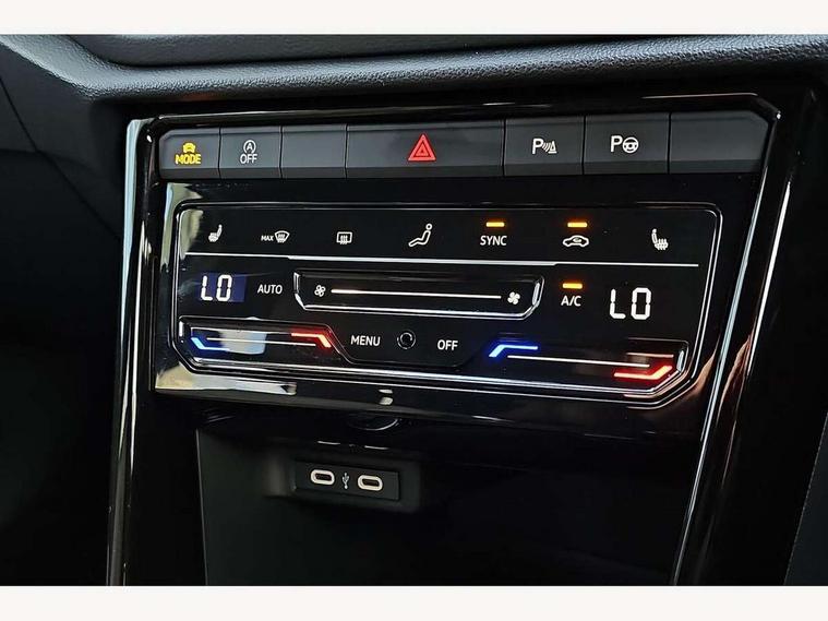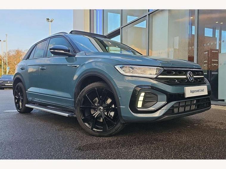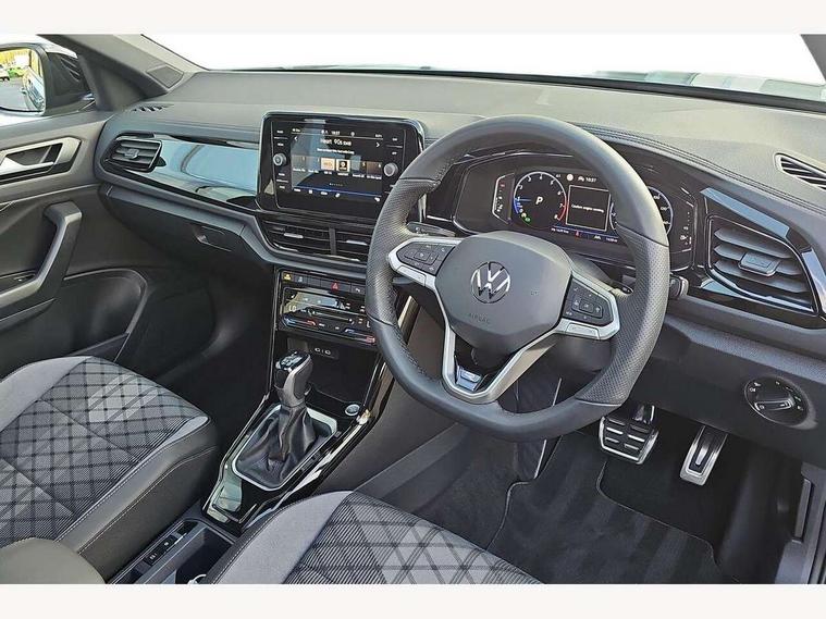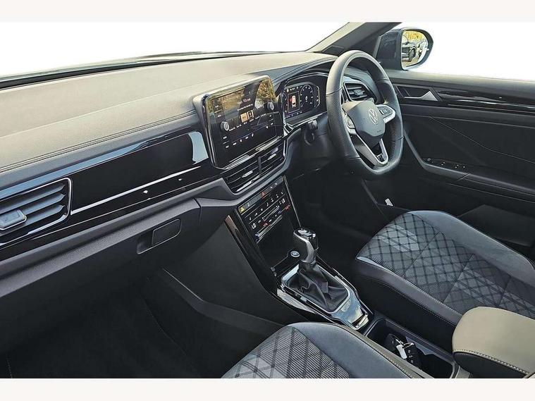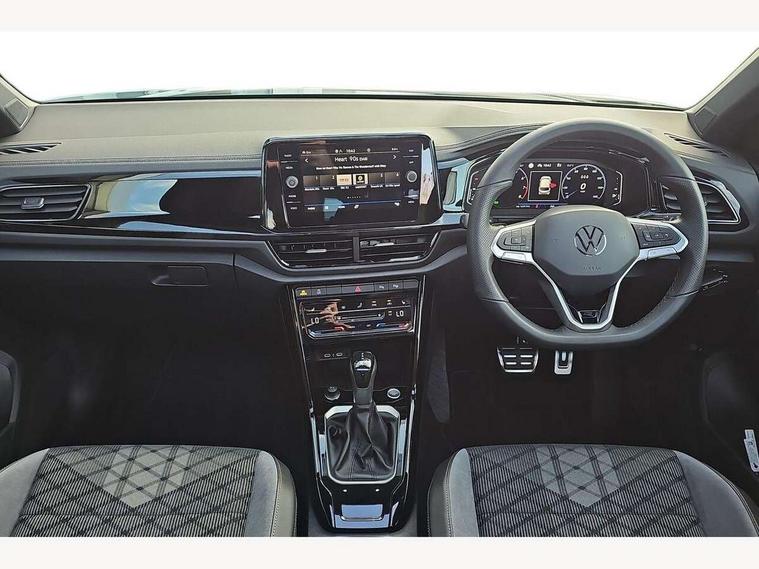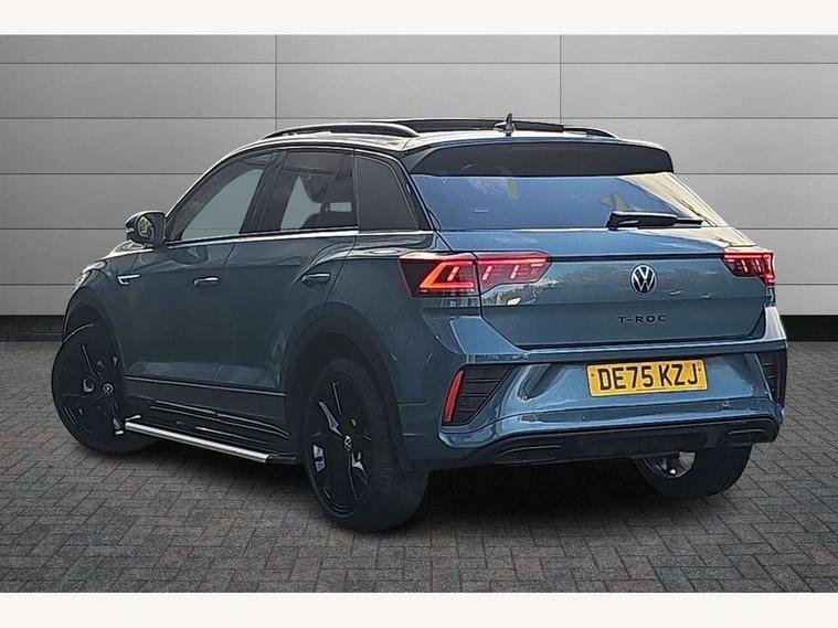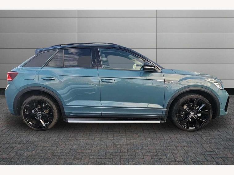 10.25" Digital cockpit pro, Advanced driver attention and drowsiness monitor, Emergency call service, Lane keeping system Lane Assist, Mobile phone interface, Modified key software - reduce switch off time for key status change to Long no motion, Online services, Park assist including front and rear parking sensors, Power assisted speed sensitive steering, Rear view camera, Service interval indicator, Tailgate/trunk lid release from outside, Think blue trainer driver tips and journey analysis, Warning sound and light for front seatbelts unfastened, Wireless app connect, Battery regeneration during braking, Start/stop function with battery regeneration, DAB Digital radio, Diversity antenna for FM reception, Music playback - MP3, WMA and AAC files, Premium USB cable in choice of either Apple or Android smartphone compatibility, SD card slot, Simultaneous pairing of 2 compatible mobile devices, Title and cover art display, We Connect and We Connect Plus functionality, Advanced dynamic light assist for LED matrix headlights, Auto dimming interior rear view mirror, Automatic hazard lights activation under emergency braking, Black roof rails, Dynamic cornering light, Dynamic headlight range control with self adjusting whilst driving, Electrically adjustable and heated door mirrors, Extended roof spoiler, Exterior ambient lighting, Exterior mirrors aspherical on driver side, convex on front passenger side, External USB type C socket and charging sockets, Front windscreen wiper with intermittent wipe and 4 position delay, Heated rear window, Illuminated front grille, IQ LED matrix headlights, LED 3rd brake light, LED rear number plate lights, LED rear tail lights with dynamic turn signal, LED separate daytime running light, Light mode for poor weather, rain, fog or snow, Power windows with comfort operation and circuit breaker, Privacy glass for rear side windows and rear window, R-Line design body coloured bumpers, Rain sensor, Rear exhaust tailpipe, Rear fog light on one side and reversing lights on both sides, Rear side wing doors, Rear wash/wipe with intermittent wipe setting, Remote electrically foldable door mirrors, puddle lights and reverse activated passenger's door mirror, Tilting and sliding panoramic sunroof with rear panoramic sunroof, 12V power socket in centre console, 3 rear head restraints, 3 seat bench in 2nd row, 4 load lashing points in luggage compartment, Air care climatronic air conditoning system with active combination filter and 2-zone temperature control, Chrome plated radiator grille inserts, air vent surrounds and light switch surrounds, Door and side trim panel with leatherette insert, Front + rear carpet mats, Front centre armrest, Front cupholders x 2, Front footwell illumination, Front reading light, Front scuff plates with R Line logo, Front seat back storage pockets, Glove compartment door with light, Instrument lighting, white adjustable panel illumination, Interior ambient lighting and surround lighting, Interior light delay, Isofix child seat preparation, Leather gearshift handle, Load-through provision with cup holder when folded down ('Unsplit rear seat bench, split folding backrest, with centre armrest), Luggage compartment lighting, Single front passenger seat, Stainless steel pedals, Storage compartment in left and right luggage area, Storage compartment in rear doors, Storage compartments in driver and front passenger doors, Sunvisors with illuminated vanity mirrors, Variable boot floor, height adjustable and removable, Black design pack - T-Roc black edition plus, Easy open package with safelock - T-Roc, 3 point height adj front seatbelts + pretensioners, 3 point seatbelts in outer rear with ECE label, ABS, Child locks on rear doors, City emergency braking and pedestrian monitoring, Driver and front passenger airbag with front passenger airbag deactivation, Driver and front passenger safety-optimised head restraints, Drivers seatbelt reminder, Electronic parking brake, Electronic Stability Control (ESC) inc EDL (Electronic Differential Lock) and ASR (Traction Control), Front and rear passengers curtain airbag system including front side airbags, Hill start assist, Predictive pedestrian protection, Rear disc brakes, Two tone horn, Tyre pressure loss indicator, Volkswagen roadside assistance, Keyless locking and starting system keyless access with safelock, Gloss deep iron dash trim, 19" Misano alloy wheels with low rolling resistance and anti theft wheel bolts, Tool kit, Trims for alloy wheels, Tyre mobility kit including compressor and sealing foam,