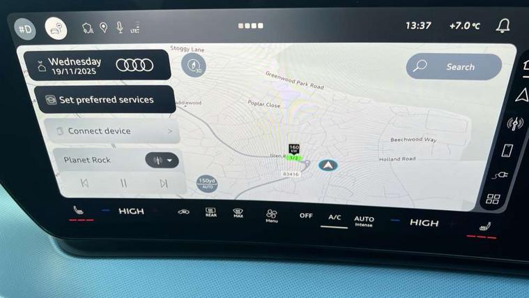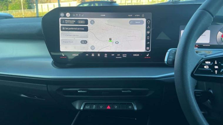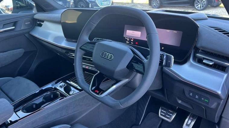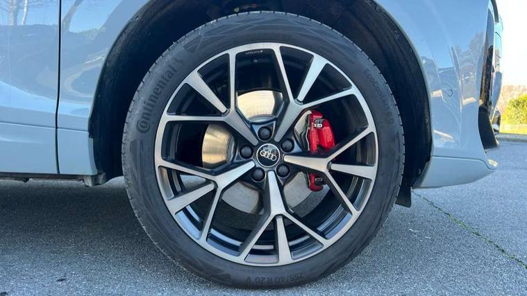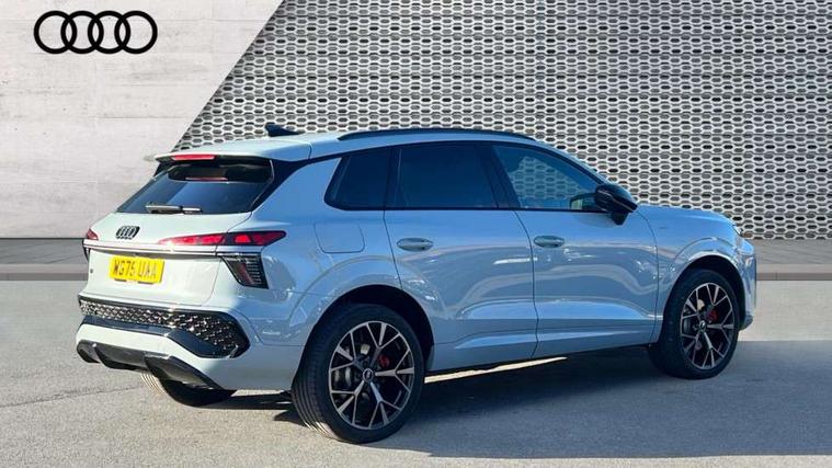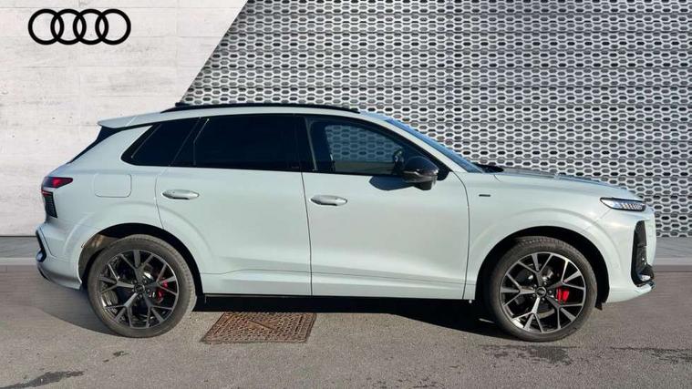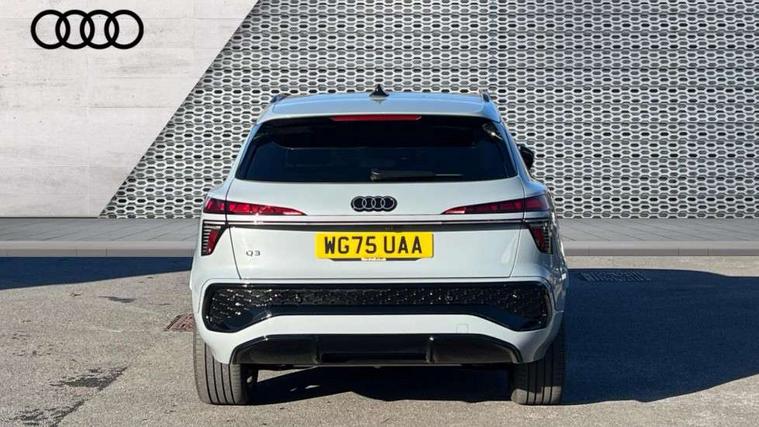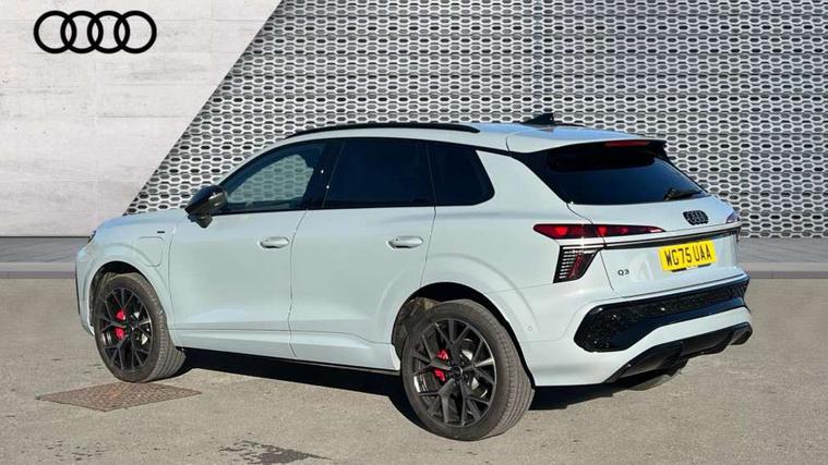 Adaptive cruise assist plus, Audi connect emergency call and service, Audi connect remote and controls, Audi drive select for suspension with damper control, Audi side assist with exit warning and rear cross traffic assist, Audi virtual cockpit plus - 11.9" display, Bluetooth interface, Camera based traffic sign recognition, Driver attention and fatigue detection with driver monitoring camera, Emergency assist, Front cross traffic assist, Garage door opener, Head up Display, In-car-office assist, Panoramic curved display with 12.8" MMI navigation plus and MMI touch, Phonebox light with wireless charging, Progressive steering, Projection of a black ice warning, Smartphone interface includes wireless Apple carplay/Android Auto, Start/stop system, Surround view cameras, Swerve assist and turn assist, Traffic sign based speed limiter, Trained parking, Voice control system with natural language interaction, 3 pin 10 amp domestic charging cable, Charging socket CCS type 2, Compact charging system, Industrial connector CEE 32A, 230V, Mode 3 charging cable for public charging, 22 KW (AC), Petrol Particulate Filter, Sound actuator for interior drive sound, Suspension with damping control, 2 USB-C ports with charge and data functions, DAB digital radio module, SONOS premium sound system, USB interfaces with higher charging capacity, Acoustic glass for front door windows, Acoustic windscreen, Advanced dynamic light scenario of the coming home/leaving home function, Aluminium window trim, Audi Q3 lettering on the B-pillars, Auto dimming rear view mirror, Automatic dynamic headlight range control, Automatically dimming exterior mirrors with memory function, Contrasting finish in volcano grey, Cornering light, Digital matrix LED headlights, Digital OLED rear lights, Dipped beam, Dynamic indicators, Electrically folding, adjustable and heated door mirrors with integrated LED side indicators and kerb view function for passenger side, Full paint finish, Headlight cleaning system, High resolution main beam, Illuminated door sills with aluminium inserts at the front with S logo, Intersection light, Lane light with side assist and direction indicator, LED daytime running lights, LED third brake light, Loading sill protector in stainless steel, Manoeuvring light, Motorway light, Opening panoramic sunroof, Orientation light with lane departure warning, Position light, Preparation for trailer hitch, Privacy glass - dark tinted rear window, rear door and side windows, Projection light in the exterior mirrors - Projects a graphic element onto the ground, Q3 badging on the rear, Rain and light sensors, Rear side wing doors, Rear window, rear door windows and rear side windows in clear glass, Rear wiper, Solid paint, Sports bumpers, Turning light, 3 seat bench in 2nd row, 3 spoke flat top and bottomed leather free multi function Sport steering wheel with gear shift paddles and "S" badging, 3-zone deluxe automatic air conditioning, 4 way lumbar support for the front seats - electric with horizontal and vertical adjustment in four directions, Black cloth headlining, Convenience auxiliary air conditioning, Electrically adjustable front seats with memory function for driver's side, Front and rear floor mats, Front and rear headrests, Front centre armrest, Heated front seats, Height and reach adjustable steering wheel, Interior storage compartment, Luggage compartment lid, electrically opening and closing, Microfibre upholstery with rhombus pattern and S emblem + front sports seats, Single front passenger seat, Stainless steel pedals, Steering wheel operating unit, gloss black, Storage compartment in front centre console, Ambient lighting package pro - Q3, Black styling pack with black door mirrors - Q3, Function pack - Q3, 3 point seat belts in front, with pretensioner and electric height adjustment, 3x3 point rear seatbelts, Acoustic vehicle alerting system, Convenience key with safelock, Driver and front passenger airbag with passenger airbag deactivation, Electromechanical parking brake, Electronic stabilisation control including ABS, ASR and EDL, First aid kit with warning triangle and high visibility vests, Front and rear side airbags with head airbags and front interaction airbag, Front emergency brake assist, i - Size child seat mounting on the front passenger side and i - Size and top tether on the outer rear seats, Power operated child locks, Proactive occupant protection, front, side and rear, Rear side airbags, Red brake callipers, front and rear, Seatbelt monitoring, Tyre pressure loss indicator, Anti theft wheel bolts, Remote central locking, Thatcham approved category 1 anti theft alarm, Dark aluminium divergence inlay, Interior elements in dinamica microfibre, Interior trims in aluminium look, 20" 5 spoke tripod design alloy wheels with gloss turned finish in darkened metallic black, Tool kit and Jack, Tyre repair kit,