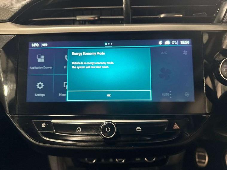 180 degree panoramic rear view camera, 7 inch digital instrument cluster display, Auto tele unit 3S vehicle communication system, Bluetooth connectivity, Central facia display with digital clock, outside air temperature and audio information, Cruise control with intelligent speed limiter, Driver drowsiness alert system, E-call, Engine oil life indicator, Enhanced traffic sign recognition, Front and rear parking sensors, Front camera system, Infotainment remote controls right side of steering wheel, telephone buttons on left side, Instrumentation - Speedometer, rev counter, low fuel gauge warning light + water temperature gauge warning light, shift up/down indicate light, Lane departure warning with lane assist, Lights on audible warning, Multi function trip computer - Trip odometer, vehicle range, average speed and fuel economy, instantaneous fuel economy and driving time, Natural voice control, RDS with traffic programme, Satellite navigation system, Service indicator, Side blind spot alert, Speed sensitive power steering, Speed sign recognition, Sport drive mode selector, Sports switch, Start/stop system, Vauxhall connect box, Voice recognition, Wireless Apple CarPlay/Android Auto, Wireless charger, Electronic returnless fuel system, Petrol Particulate Filter, Under body shield for aero, AM/FM stereo radio, Bluetooth A2DP audio streaming function (Advanced audio distribuition profile), DAB Digital radio, Multimedia Navi with 10-inch touchscreen, Rear USB port, Six speakers, Steering wheel audio, phone and cruise controls, USB type C port, 3rd brake light, Automatic headlamp levelling, Automatic headlight control system, Black DLO, Black door mirror housings, Black Griffin logo and vizor frame, Black lower side window mouldings, Body colour door handles, Body colour front and rear bumpers, Bonnet/headlight/wiper structure, Corsa lettering in tailgate, Dark tinted rear side windows + tailgate window, Electrically adjustable and heated door mirrors, Electrically folding door mirrors, Electrically operated front and rear windows with safety auto reverse and one touch up/down facility, Electrochromic automatic anti-dazzle rear view mirror, Glazed tailgate and heated rear window with wash/wipe facility, Hazard warning lights, Headlamps for left side traffic, High beam assist, High gloss black finish B pillar, Intelli-Lux Matrix LED Headlights, LED daytime running lights, LED fog lights, LED tail lamp, Rain sensitive windscreen wipers, Rear fog lamp, Rear reversing lights, Rear side wing doors, Rear wiper, Shark fin aerial, Solar heat absorbing windscreen and windows, Sports front and rear body styling for upper and lower bumper design, Two speed windscreen wipers with variable intermittent wipe, Ultimate badge and sill plate, Windscreen and side window demist vents, 12V power sockets, 3 bench rear seats in 2nd row, 3 spoke flat bottomed leather effect steering wheel with satin chrome effect bezel, 4 speed fan with illuminated controls, 6 way manual adjustable co-driver seat height up/down, reach fore/aft, backrest upright/recline, 6 way manual adjustable driver seat with massage function height up/down, reach fore/aft, backrest upright/recline, 60/40 split folding rear seat, Alcantara seat trim, Alloy effect sport pedals, Black headliner, Cabin particulate filter - removes dust, airborne particles and pollen, Comfort front seats, Driver's seat lumbar support, Driver/passenger sunvisors with vanity mirrors + covers, Electronic climate control (ECC), Four adjustable facia vents, Front centre armrest with storage, Front cupholder, Front headrests, Front map reading lights, Front seatback storage pockets, Heated front seats + heated steering wheel, Height adjustable head restraints, Illuminated glovebox with lid, Illuminated load compartment trunk, Interior courtesy light, Internal chrome door handles, Jet black door panels on door trim, Jet black side bolsters and surrounds, LED ambient lighting, LED boot light, Luggage compartment lighting, Mistral fabric side bolsters and surrounds, Polyurethane gear knob/lever, Reach and rake adjustable steering column, Rear headrests, Right hand drive (RHD), Single dome lamp with dual front reading lamps, Single front passenger seat, Two litre open door pockets, 3 rear 3 point seatbelts, Anti-lock braking system (ABS), Cornering brake control, Deactivation switch for front passenger's airbag, Drag torque control, EBD - Electronic brakeforce distribution, Electrical child lock system in rear door latch, Electronic parking brake, Electronic Stability Programme (ESP), Emergency brake assist, Enhanced automatic emergency braking with pedestrian detection, Forward collision alert, Front seatbelt unfastened audible warning and warning light, Hill hold and start system, Inertia reel lap and diagonal seatbelts for all seats, ISOFIX child seat mountings incorporating top tether anchor points located on second row rear seats, Seatbelt pretensioners, Single tone horn, Six airbags - Driver's dual stage airbag/front passenger's dual stage airbag/front seat side impact airbags/full size curtain airbags, Straight line stability control, Traction control, Tyre deflation detection system, Tyre pressure monitoring system, 2 keys one folding with integral remote, Electronically protected audio equipment, Engine deadlock and immobiliser, Freewheeling door locks, Keyless entry and start, Locking wheel nuts, Remote control central locking, Remote control central locking activation switch on driver door, Remote control security alarm system, Remote locking fuel filler flap, Steering column lock, Visible vehicle identification number, Silent black facia with liquid palladium insert, 17" Diamond-cut hi-gloss black alloy wheels,
