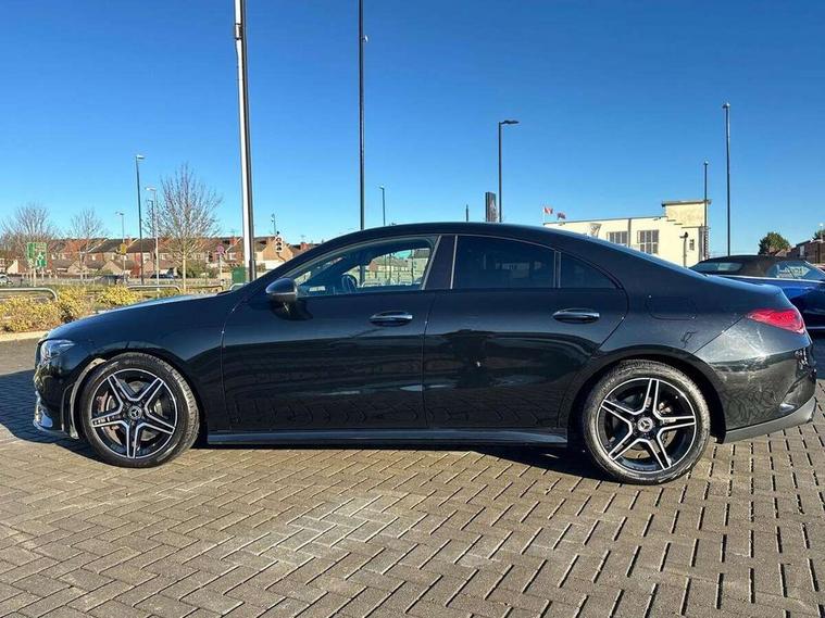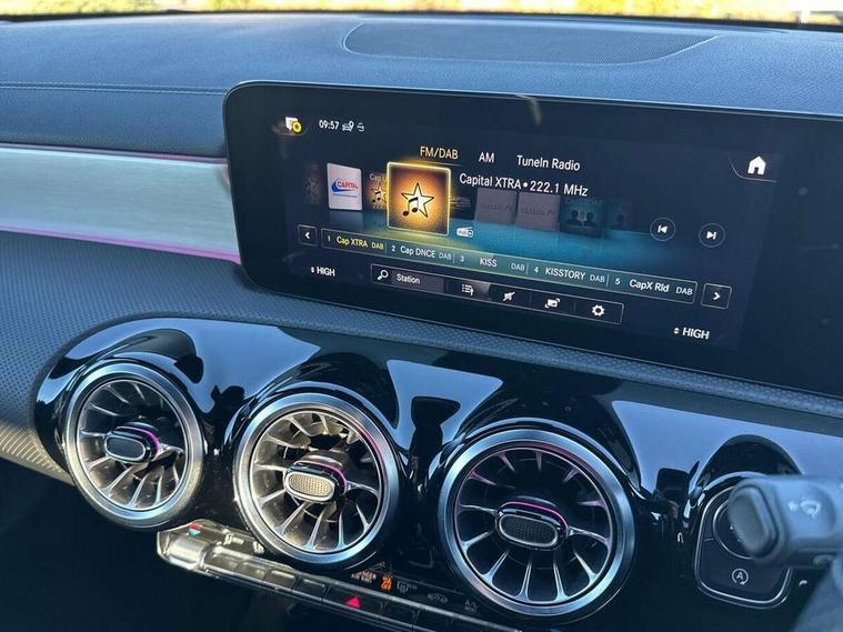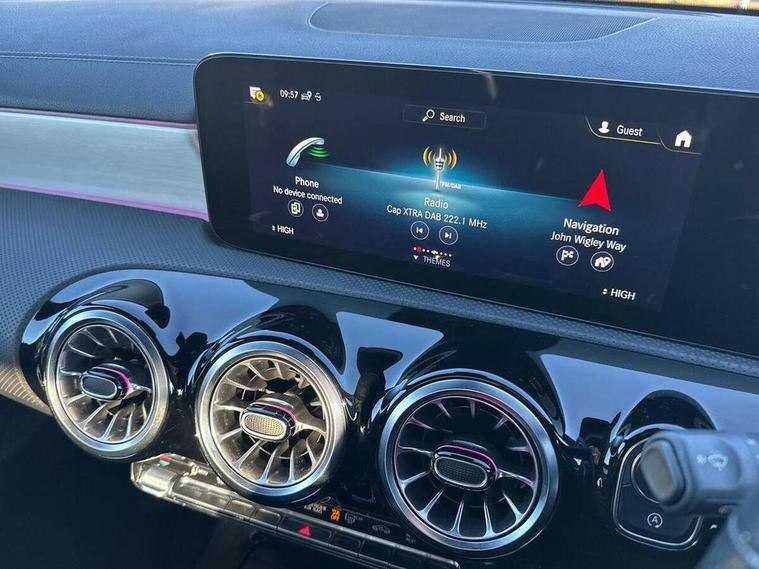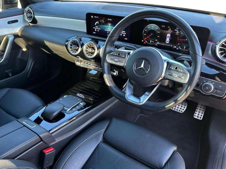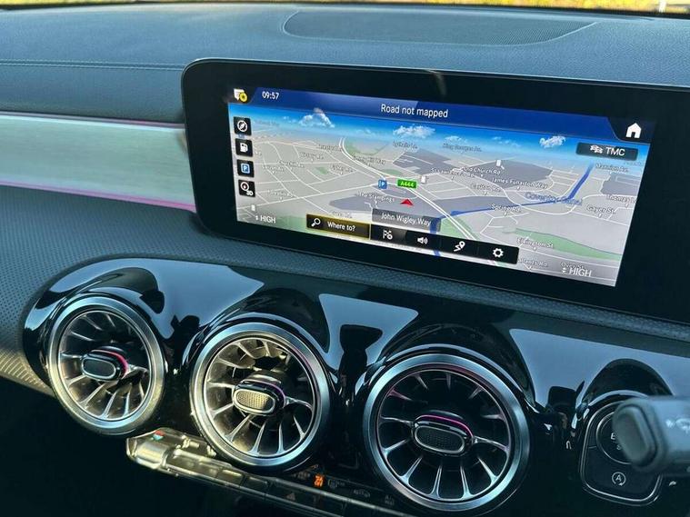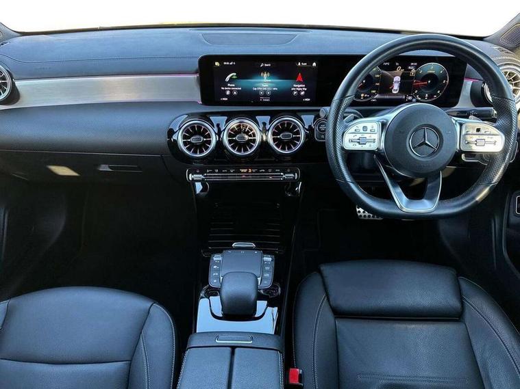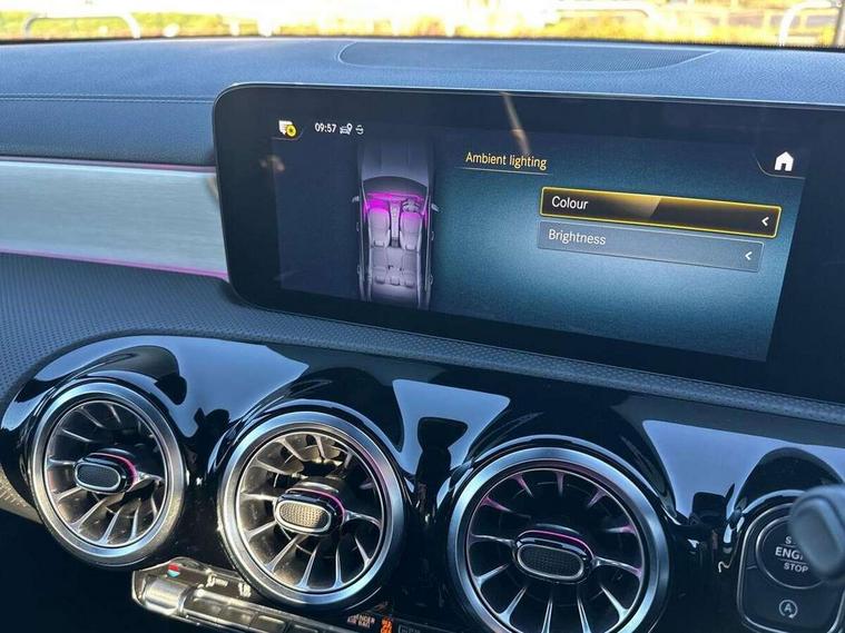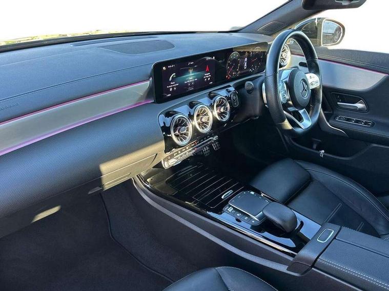 10.25 inch Instrument display with digital cockpit, 10.25 inch touchscreen central media display, Active lane keeping assist, Attention assist - Monitors steering behaviour and long journey fatigue, Bluetooth connection, Car wash mode, Cruise control with limiter, Direct steer system with speed sensitive power steering, DYNAMIC SELECT with a choice of driving modes (ECO, Comfort, Sport and Individual), ECO start/stop function, Fluid level warning indicator for fuel, oil, coolant and washer fluid, Hard-disk navigation, Hey Mercedes Voice activation, Lamp failure indicator, Mercedes me connect including emergency call system, accident recovery, breakdown and maintenance management, Mercedes me remote services, Outside temperature gauge, Owners manual and service booklet in English, Pre-installation of private car share, Preinstallation for Mercedes Benz link, Radio aerial integrated into front and rear windshields, Service indicator (ASSYST), Smartphone integration with Apple CarPlay and Android auto, Speed limit assist, Trip computer in multifunction display with current consumption indicator, Lowered comfort suspension, Rear axle multi-link, DAB digital radio tuner, MBUX multimedia system with DAB digital radio and touchpad including satellite navigation, Mid-range sound system, USB (type C) ports (2) in stowage compartment and 1 in front of centre console, Adaptive brake lights, AMG body styling with AMG front apron and visible exhaust tailpipe in chrome trim elements, AMG bodystyling side skirts, Body colour bumpers, Body colour door handles, Chrome beltline strips, Diamond radiator grille pins in chrome, Electric windows, Electrically adjustable and heated door mirrors with integrated LED indicators, Exhaust system with 2 Visible tailpipe trim elements and rear apron with trim in chrome, Headlamp assist automatic headlamp activation, Heated glass rear windscreen + timer control, High level LED third brake light, Interior mirror with black reading lamps and frameless, LED high performance headlamps with integrated LED daytime running lights, LED tail lamp, Privacy glass with dark tinting on rear side windows and rear window, Rain sensing windscreen wipers with two sensitivity settings, Rear boot, Rear fog lamp, Rear side wing doors, Window line trim strip in chrome, 3 seat bench in 2nd row, 3 spoke flattened bottom nappa leather multifunction steering wheel with perforated leather in grip area, 40:20:40 split folding rear seat backrests, Air conditioning - Two zone thermotronic luxury automatic climate control with display, Air vents with surround in silver chrome, Automatic child seat recognition sensor, Black roof lining, Brushed stainless steel sports pedals with rubber studs, Floor mats with stitched AMG lettering, Front centre armrest with stowage, Galvanished gear shift paddles on steering wheel, Heated front seats, Illuminated front door sills with changeable cover, Illuminated glove compartment stowage, Interior lighting - 64 colour Ambient lighting, Luggage net on driver/front passenger seat backrest, Manually adjustable front seats, Manually height and reach adjustable steering column, Rear armrest with two integral cup holders for drinks, Rear head restraints, Single front passenger seat, Sport seats with fixed head restraints, Stowage compartment in centre console with retractable cover, Sunvisors with illuminated vanity mirrors, Touchpad on center console, Twin front cupholders, Two outer rear seat isofix and top tether child seat fixing points, Keyless go pack - CLA, Light and sight pack - CLA, Mirror pack - CLA, Night package - CLA, Parking package - CLA, Seat comfort pack - CLA, Active bonnet pedestrain safety measure which detects an impact and raises bonnet by 65mm, Active brake assist includes forward collision warning system with autonomous braking, Adaptive brake assist with hold function and hill start assist, Anti-lock braking system (ABS), Black seat belts, Bonnet with power domes, Brake pad wear warning indicator, Childproof locks manually operated for rear doors and electrically operated for rear power windows, Crash responsive emergency lighting, Driver and front passenger head and sidebags, Driver and front passenger windowbags, Drivers knee airbag, Dual stage driver and front passenger airbags, Electric parking brake, Electronic stability programme with acceleration skid control, ESP curve dynamic assist, Front and rear seatbelt reminder, Front passenger seat occupancy sensor, Three point rear seat belts, Tyre pressure monitoring system, Warning triangle and first aid kit, Remote central locking and crash sensor with emergency opening function, Urban guard vehicle protection system with immobiliser and interior protection, Light aluminium with longitudinal grain interior trim, 18" AMG 5 twin spoke light alloy wheels painted in black with high sheen finish, Summer tyres, Tirefit tyre sealant kit,