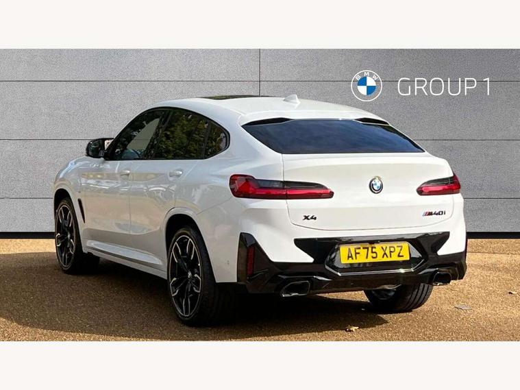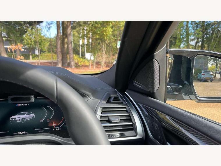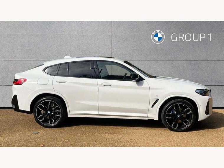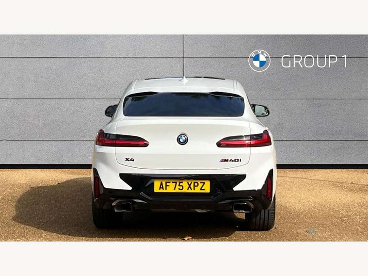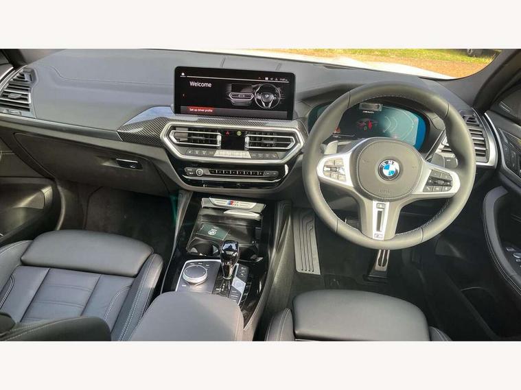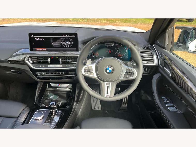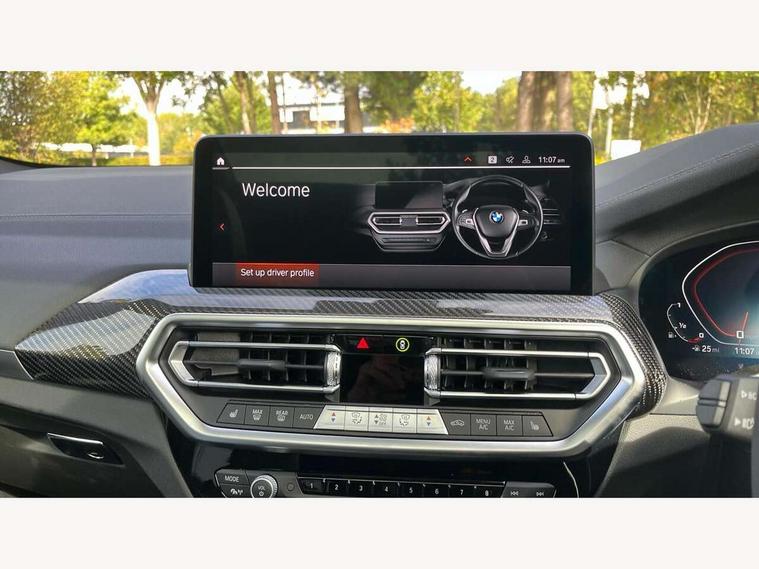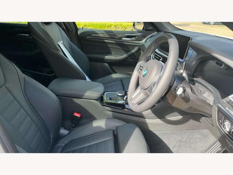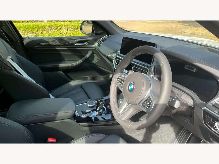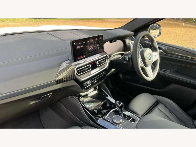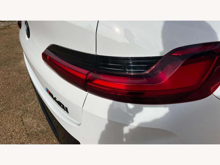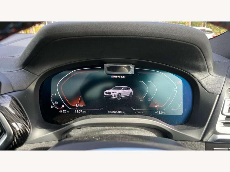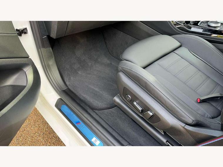 Active Guard Plus incl front collision warning with brake intervention, Attentiveness assist, Automatic operation of tailgate, BMW ConnectedDrive online services, BMW Live Cockpit Professional Nav with 12.3" instrument display + 12.3" control display, Intelligent Voice Assist, BMW OS 7, HDD, 2USB, 4G LTE connect, BMW Teleservices, Brake pad wear indicator in front and rear, Check Control warning system for monitoring of lights and door/luggage compartment open warning, Condition based service - BMW service history, electronic service booklet, integrated owner's handbook, Driving experience switch, Electric bootlid, iDrive touch controller with turn and press function, Instrument cluster with speedometer with mph readout, tachometer, fuel gauge and oil temperature gauge, Instrument panel in sensatec material, Language version English, Lights on warning by audio warning signal when ignition is switched off, Oil sensor for level and grade, warning by check control system, On board computer - average speed+fuel consumption, service interval, clock/date, odometer/trip meter, outside temperature display and ice warning, Optimum shift indicator, Park distance control (PDC), Personal Profile - automatic lock when driving away selectable, Servotronic system, Variable sports power steering, Double joint spring strut front axle, Double VANOS, Drive performance control - ECO PRO, comfort and sport modes, EU6 emissions management, Five link rear suspension, High precision injection, M Adaptive suspension, M Sport differential, Multiple control arm rear axle, Performance Control, Sport automatic transmission with gearshift paddles, Twin scroll turbocharger with Valvetronic, 2x USB Type C ports in front centre console for charging and data transfer, 2x USB Type C ports in rear centre console for charging, BMW professional radio/CD/MP3, DAB tuner, Acoustic glass, Automatic parking function on passenger's side exterior mirror, Automatic windscreen wipers and automatic headlight, Black chrome tailpipe finishers, Black finish on B pillars, Black kidney frame and nuggets painted in high-gloss black, BMW emblem base at rear in high-gloss black, Body colour door handles, Body colour roof mouldings, Body colour roof spoiler, Body coloured bumpers, Chrome exhaust tailpipes in split left and right, Direction indicator, side repeaters, integrated in exterior mirrors, Door sill strips, Dynamic brake lights, Electric folding wing mirrors with auto dimming, Electric front and rear windows with fingertip open/close + anti-trap facility and comfort closing function, Electrically adjustable and heated door mirrors, Electro-chrome auto-dimming rear view mirror, Electrochromic driver side exterior mirror, Energy absorbing foam within the front bumper, Extended high gloss shadow line exterior trim, Follow me home headlight function, Front and rear bumper system with replaceable deformation elements, Full LED L shape 3D tailights, Glacier silver metallic matt in side sills, Green tinted heat insulating glass, Headlight beam throw control, Heated windscreen washer jets, High gloss black front door sill finishers with BMW designation, LED High level third brake light, LED rear lights, Lightweight engineering, M black mirror caps, M designation side exterior badges, Model designation, Rain sensor + automatic driving lights control, Rear side wing doors, Rear wiper, Reversing lights, Shark fin antenna, Sun protection glass, Tinted passenger side exterior mirror, Visible VIN plate, Windscreen wipers with adjustable interval, 12V power socket in front centre console, 12V power socket in front storage compartment, 3 seat bench in 2nd row, 3 zone automatic air conditioning, 40/20/40 split folding rear seats with backrest, Anthracite headlining, Electric adjustable front seats with memory function for driver seat, Foldable storage floor with compartment, Front and rear bottle holders integrated into door trim storage compartments, Front and rear door exit lights, Front and rear footwell lighting, Front and rear side armrests integrated into door trim, Front centre armrest with storage compartment, Front passenger seat, Front/rear reading lights, Heated front seats, Height adjustable front/rear head restraints, Leather gear knob, Lockable glove compartment, Luggage compartment lighting, M Sport multifunction leather steering wheel, Make-up mirror lights, Microfilter and active carbon filter, Parcel shelf removable and storable under boot floor, Reach + rake adjustable steering column, Rear centre armrest with 2 cupholders, Storage compartment in rear centre console and front/rear door trims, Storage compartment lighting in front center armrest, Storage tray and compartment with cover in centre console, Sunvisors with vanity mirrors and ticket pocket, Synthetic leather door trims, Three rear headrests, Through loading system, Toolkit located in luggage compartment, Two front cupholders with removable oddments tray/lid, Two lashing eyes in luggage compartment, Velour floor mats, Visual exit area and front and rear door recognition, Welcome light (no extra light) with illumination in the colour white, Ambient lighting pack - X4, Connected package pro - X4, M Aerodynamic pack - X4, Non Smokers pack, 3 point seatbelts on all seats, Active protection, ADB - Automatic Differential Brake, Anti-lock braking system (ABS) with brake assist, Automatic Stability Control (ASC), Battery safety cut-off, BMW emergency call, Brake drying, Brake energy regeneration, Braking pre-tensioning, Child proof locking system in rear door, Child seat ISOFIX attachment rear outer seats, Cornering brake control (CBC), Crash Sensor - activation of central locking release, hazard warning light and interior lighting, safety battery terminal clamp and trigger e-Call, Deactivation of fuel pump in the event of a crash, Driver and front passenger knee airbag, Driver and passenger side airbags, body protection at side and airbags deploy from seat backrests, Driver/front 