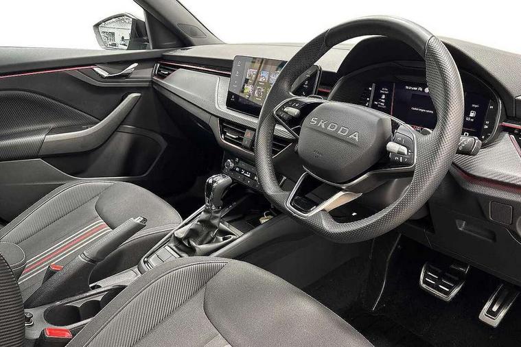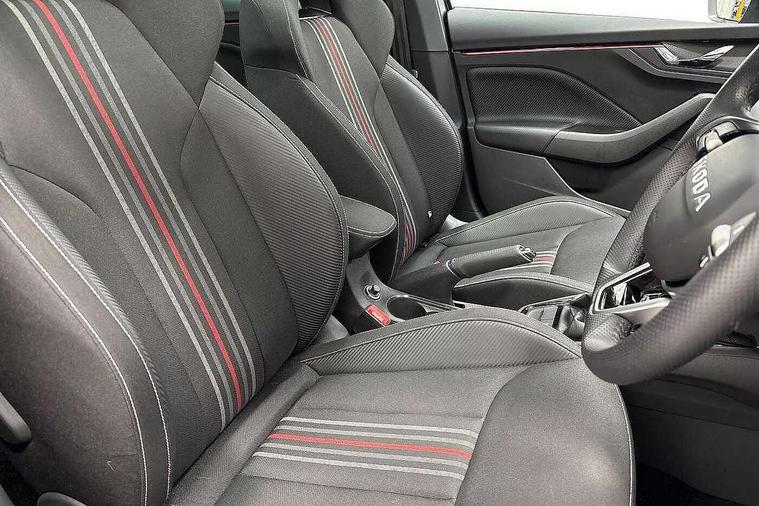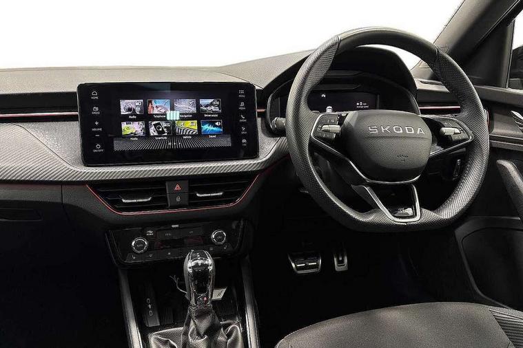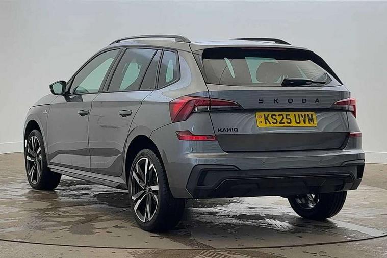 Advanced driver attention and drowsiness monitor, Bluetooth system, E-call, Front assist system, PAS, Rear parking sensors, Rear view camera, Service indicator, Speed limiter, Traffic sign recognition, Virtual cockpit with 10.25" display, Voice control system, Wireless smartlink, 4 USB C ports, 8 Speakers, 9.2" Skoda navigation display, DAB Digital radio, Auto dimming rear view mirror, Automatic headlight control with coming home and leaving home feature, Black door mirrors, Black radiator grille, Black rear diffuser, Black roof spoiler, Body colour bumpers, Body colour door handles, Boot lettering in black, Extended tailgate glass, Fixed panoramic sunroof with black roof rails, Front and rear electric windows, Heated rear window, LED daytime running lights, LED high beam, LED low beam, LED third brake light, Light sensors, Monte carlo plaque, Privacy glass, Rear side wing doors, Rear wiper, Ticket holder inside windscreen, 12V socket in luggage compartment, 3 seat bench in 2nd row, Aluminium pedals, Ambient lighting in white/red, Art leather carbon decor inserts, Art leather carbon door inserts, Black roof lining, Cargo elements, Chrome inner door handles, Driver and passenger sun visors with vanity mirror, Dual zone climate control, Front and rear roof lights, Front centre armrest, Front head restraints, Glove compartment with illumination, Height adjustable driver seat, Height adjustable front passenger seat, Ice scraper, Inner circulation control with pollen filter, ISOFIX on front passenger seat, Isofix preparation for back seats, Leather gearknob and handbrake lever, Manual lumbar support for front seats, Monte Carlo cloth upholstery, Net package and top tether hooks in boot space, Net under rear shelf, Pocket on the back of both front seats include mobile phone pockets, Rake/reach adjustable steering wheel, Reading lights, Rear centre armrests, Red hotstamping, Single front passenger seat, Sports seats, Textile floor mats, Third rear headrest, Top tether for front passenger seat, Umbrella in driver's door, Light and view plus package - Kamiq, 3x3 point rear seatbelts, Airbags - driver and front passenger, Disc brakes, ESP, Extended and predictive pedestrian/cyclist protection, Front passenger airbag deactivation switch, Front side airbags with curtain airbags, Hill hold control, Manual leather parking brake, Manual rear child locks, One tone horn, Seatbelt reminder for driver an co-driver, Traction control, Tyre pressure monitor, Anti-theft alarm system with interior monitoring, backup horn, towing protection and remote central locking with SAFE system, Anti-theft wheel bolts, Electronic engine immobilizer, 18" Ursa black diamond cut alloy wheels,