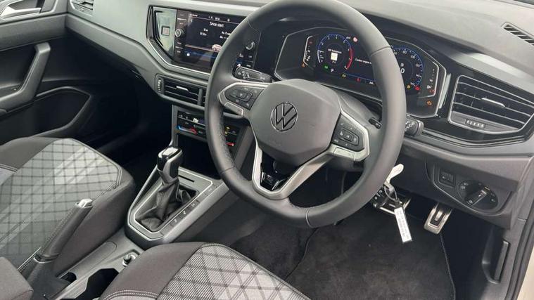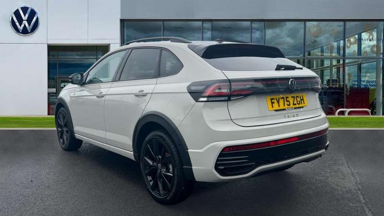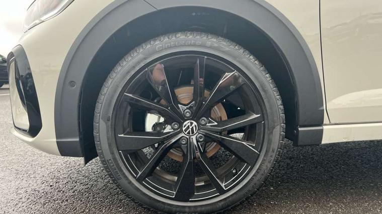 Adaptive cruise control, Advanced driver attention and drowsiness monitor, App-Connect including App-Connect Wireless, Digital cockpit pro - 10.25" high resolution TFT dash display screen with customizable menus and information, Driving profile selection, Dynamic road sign display, e-Call (emergency call), Power Steering, Travel assist including emergency assist, Washer fluid level indicator, Wireless Charging including Bluetooth, Start-stop system with battery regeneration (recuperation - energy recovery during braking), XDS electronic differential lock for improved traction and handling, Digital radio reception (DAB+), Diversity antenna for FM reception, WeConnect plus, Ambient lighting with logo projection, Aspherical driver's exterior mirror, Auto headlights, Body coloured bumpers, Bumpers in R-Line style, Electric windows, External USB type C socket and charging sockets, Front scuff plates with R-Line logo, LED rear combination lamp, LED third brake light, Left convex exterior mirror, Power folding adjustable/heated exterior mirrors and front passenger exterior mirror lowering function, Rear fog light on one side, reversing light on both sides, Rear side wing doors, Rear wash/wipe with intermittent wipe setting, 12V socket in centre console, 2 front reading lights, 3 rear head restraints, 3 seat bench in 2nd row, Air care climatronic air conditoning system with active combination filter and 2-zone temperature control, Black carpets, Black roof lining, Child seat anchor for child seat system i-Size, 2x top tether and child seat anchor in front on front passenger side, Chrome bezel for instrument cluster, vents, door handles + gear shift, Driver and front passenger seat height adjustment, Front + rear carpet mats, Front centre armrest, Front footwell illumination, Front sports comfort seats, Height and reach adjustable steering wheel, Interior ambient lighting and surround lighting, Karoso artvelours cloth upholstery, Leather trimmed gear knob, Leather wrapped multifunction steering wheel, Luggage compartment floor, Luggage compartment light, Lumbar support for driver's and front passengers seat, Seat covers in grey + titanium black, Single front passenger seat, Split folding backrest with centre armrest and unsplit rear seat bench, Stainless steel pedals, Storage compartment under front seats, Sun visors with illuminated vanity mirrors, Chrome Package - Taigo, Drivers assistance pack - Taigo, Light and Sight pack including High beam assist - Taigo, 2 x 3-point seatbelts/outer rear seats with ECE label, 3-point seat belts in front with pretensioner and height adjustment, 3-point seatbelt for centre rear seat, Adaptive driver and front passenger airbags with passenger airbag deactivation function, Driver and front passenger safety-optimised head restraints, Electronic stability control, Extended and predictive pedestrian/ cyclist protection, Front and rear disc brakes, Front curtain and side airbags with center airbag, Hill start assist, Manual rear child locks, Single tone horn, Tyre pressure loss indicator, Anti-theft alarm system with interior monitoring, backup horn, and towing protection, Grey anodised matte decorative inserts in dash and front door panels, Low rolling resistance tyres,