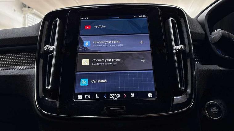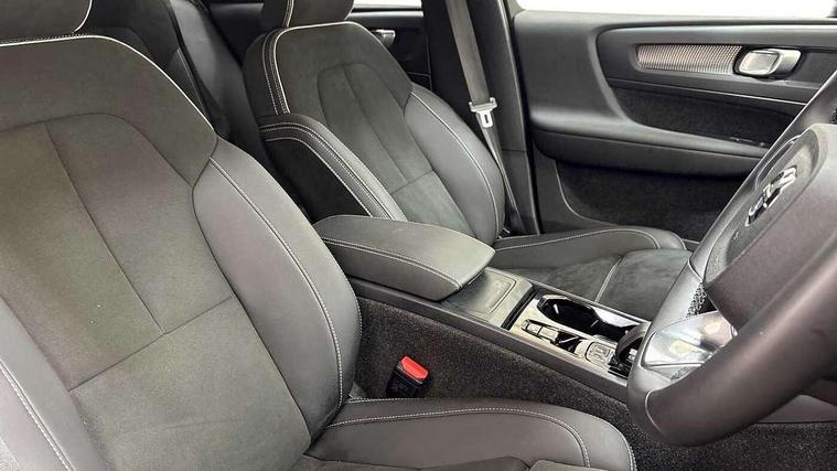 12.3" Progressive Driver Display, 9" centre console portrait touch screen, Adjustable steering wheel force, Android auto (Wired), Apple carplay (wired), Bluetooth handsfree system, Driver alert control, Driver assistance (pilot assist and adaptive cruise control), Driver awareness - Blind spot information system with steer assist, cross traffic alert with autobrake and rear collision warning and mitigation, E-call, Front park assist, Google automotive services - Enabled entertainment apps, navigation with google maps, voice recognition with google assistant, Hands free power tailgate, Intelligent speed assistance, Lane keeping aid, Oncoming Lane Mitigation, Rear park assist, Speed sensitive steering, Volvo cars services with app - Driving journal, emergency and breakdown call, engine remote start, remote door locking/unlocking and vehicle dashboard, Wireless/Inductive Mobile Phone Charging, Automatic transmission with start/stop and manual change functions, Dynamic chassis, DAB Digital radio, Steering wheel mounted remote controls, Adaptive brake lights with high level LED brake lights, Auto dimming feature for exterior door mirrors, Auto dimming interior mirror, Automatic headlamp levelling, Automatic LED Headlights + Active high beam incorporating daytime running lights, Front aluminium tread plates, Front and rear electric windows, High gloss black front and rear skid plate, High gloss black front bumper deco, High gloss black mesh front grille with high gloss black surround, High gloss black window trim, Home safe and approach lighting, Integrated roof rails in high gloss black, LED front fog lights, Puddle lights, Rain sensor with automatic windscreen wiper activation, Rear side wing doors, Rear wiper, Roof antenna, Roof spoiler, Visible VIN plate, 12V socket in front tunnel console and luggage compartment, 2-Zone electronic climate control with CleanZone air quality system and pollen filter, 3 seat bench in 2nd row, 3 Spoke tailored steering wheel with chrome trim, 60/40 versatile split folding rear seat, Centre console cupholders and storage, Charcoal headlining, Connect textile/microtech upholstery, Flexible load floor and grocery bag holder, Floor mats, Front cabin courtesy lights, Front door pocket, front cupholder, ambient front door, rear reading, rear courtesy, instrument panel and tailgate lighting, Front footwell illumination, Front headrests, Front reading lights, Front seat cushion extensions, Front side step illumination (under door), Glovebox bag hook, Heated front seats, Height adjustable passenger seat, Height/reach adjustable steering column, High gloss centre tunnel deco, Illuminated glovebox, Illuminated luggage compartment, Illuminated vanity mirrors + ticket holder, Integrated waste bin, Isofix attachments on outer rear seats, Load cover, Load protection net, Multi directional lumbar support for driver and passenger seat, Power driver seat with memory + exterior mirrors memory, Rear armrest with cupholders, Rear headrests, Single front passenger seat, Underfloor cargo storage, Climate pack without heated front seats - XC40, 3x3 point rear seatbelts, City safety with steering support with Pedestrian + cyclist + front collision warning with full auto brake and rear auto brake, Driver and passenger airbags, Drivers knee airbag, Electronic parking brake with auto hold, First aid kit, Front and outer rear seatbelt reminder and pretensioners, Front seats SIPS airbags, Hill descent control, Hill start assist, Inflatable curtain, Passenger airbag cut-off device, Power child locks on rear doors, Road sign information display, Run off Road Protection, SIPS (Side Impact Protection System), Slippery road and hazard light alert, Stability and Traction Control with Spin control, Engine Drag Control and Corner Traction Control, Tyre pressure monitoring system, Vehicle deceleration control with Anti-lock Brake System, Electronic Brake Distribution and Emergency Brake Assist, Warning triangle, WHIPS whiplash protection system - front, 2 x Key integrated remote control central locking including with deadlocking system and auto open/close windows, Anti-theft alarm including immobiliser/volume sensor + level sensor, Keyless drive includes keyless entry and keyless start, Locking wheel nuts,