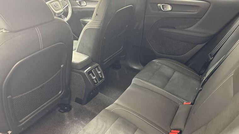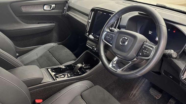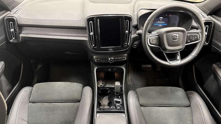 12.3" Progressive Driver Display, 9" centre console portrait touch screen, Adjustable steering wheel force, Android auto (Wired), Apple carplay (wired), Bluetooth handsfree system, Driver alert control, Driver assistance (pilot assist and adaptive cruise control), Driver awareness - Blind spot information system with steer assist, cross traffic alert with autobrake and rear collision warning and mitigation, E-call, Front park assist, Google automotive services - Enabled entertainment apps, navigation with google maps, voice recognition with google assistant, Hands free power tailgate, Intelligent speed assistance, Lane keeping aid, Oncoming Lane Mitigation, Rear park assist, Speed sensitive steering, Volvo cars services with app - Driving journal, emergency and breakdown call, engine remote start, remote door locking/unlocking and vehicle dashboard, Wireless/Inductive Mobile Phone Charging, Automatic transmission with start/stop and manual change functions, Dynamic chassis, DAB Digital radio, Steering wheel mounted remote controls, Adaptive brake lights with high level LED brake lights, Auto dimming feature for exterior door mirrors, Auto dimming interior mirror, Automatic headlamp levelling, Automatic LED Headlights + Active high beam incorporating daytime running lights, Front aluminium tread plates, Front and rear electric windows, High gloss black front and rear skid plate, High gloss black front bumper deco, High gloss black mesh front grille with high gloss black surround, High gloss black window trim, Home safe and approach lighting, Integrated roof rails in high gloss black, LED front fog lights, Puddle lights, Rain sensor with automatic windscreen wiper activation, Rear side wing doors, Rear wiper, Roof antenna, Roof spoiler, Visible VIN plate, 12V socket in front tunnel console and luggage compartment, 2-Zone electronic climate control with CleanZone air quality system and pollen filter, 3 seat bench in 2nd row, 3 Spoke tailored steering wheel with chrome trim, 60/40 versatile split folding rear seat, Centre console cupholders and storage, Charcoal headlining, Connect textile/microtech upholstery, Flexible load floor and grocery bag holder, Floor mats, Front cabin courtesy lights, Front door pocket, front cupholder, ambient front door, rear reading, rear courtesy, instrument panel and tailgate lighting, Front footwell illumination, Front headrests, Front reading lights, Front seat cushion extensions, Front side step illumination (under door), Glovebox bag hook, Heated front seats, Height adjustable passenger seat, Height/reach adjustable steering column, High gloss centre tunnel deco, Illuminated glovebox, Illuminated luggage compartment, Illuminated vanity mirrors + ticket holder, Integrated waste bin, Isofix attachments on outer rear seats, Load cover, Load protection net, Multi directional lumbar support for driver and passenger seat, Power driver seat with memory + exterior mirrors memory, Rear armrest with cupholders, Rear headrests, Single front passenger seat, Underfloor cargo storage, Climate pack without heated front seats - XC40, 3x3 point rear seatbelts, City safety with steering support with Pedestrian + cyclist + front collision warning with full auto brake and rear auto brake, Driver and passenger airbags, Drivers knee airbag, Electronic parking brake with auto hold, First aid kit, Front and outer rear seatbelt reminder and pretensioners, Front seats SIPS airbags, Hill descent control, Hill start assist, Inflatable curtain, Passenger airbag cut-off device, Power child locks on rear doors, Road sign information display, Run off Road Protection, SIPS (Side Impact Protection System), Slippery road and hazard light alert, Stability and Traction Control with Spin control, Engine Drag Control and Corner Traction Control, Tyre pressure monitoring system, Vehicle deceleration control with Anti-lock Brake System, Electronic Brake Distribution and Emergency Brake Assist, Warning triangle, WHIPS whiplash protection system - front, 2 x Key integrated remote control central locking including with deadlocking system and auto open/close windows, Anti-theft alarm including immobiliser/volume sensor + level sensor, Keyless drive includes keyless entry and keyless start, Locking wheel nuts,