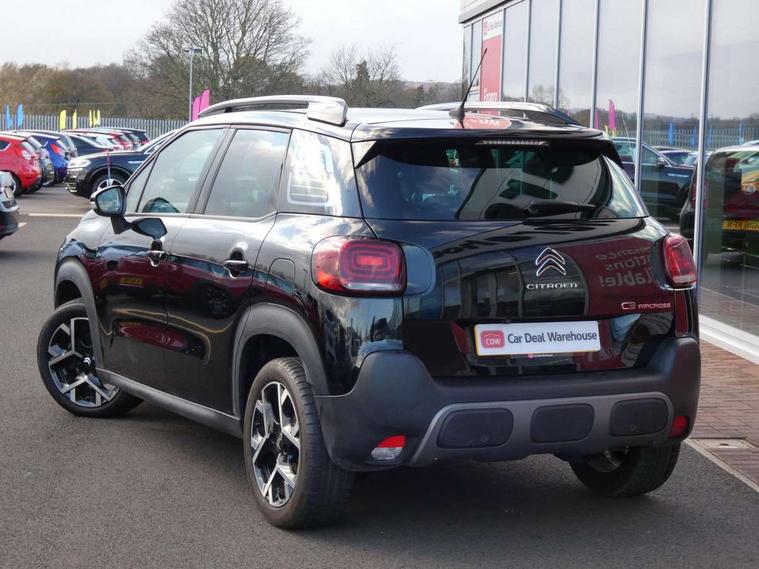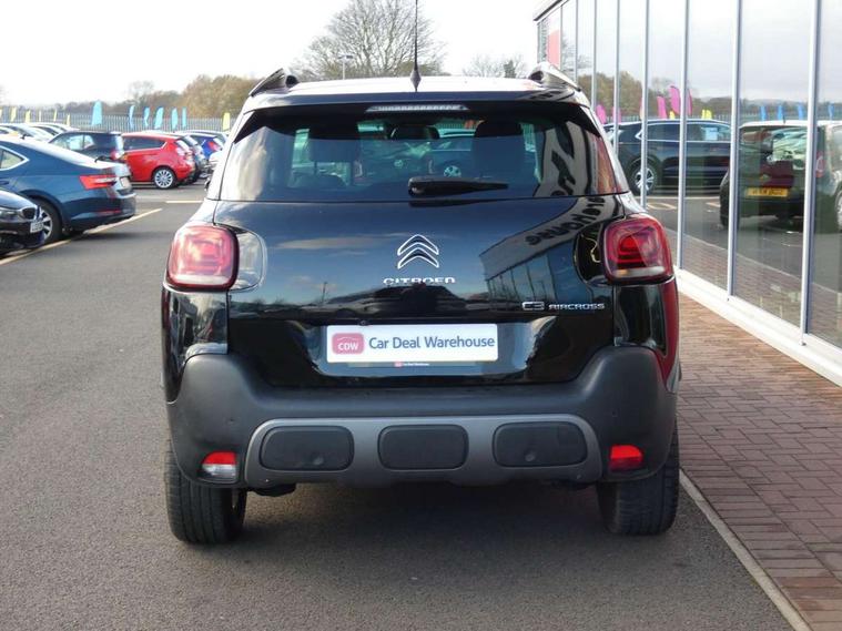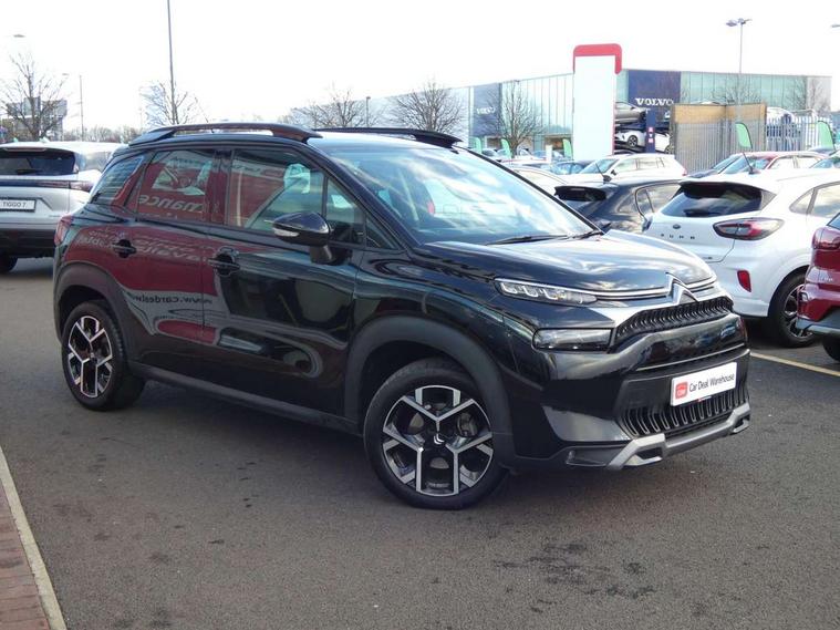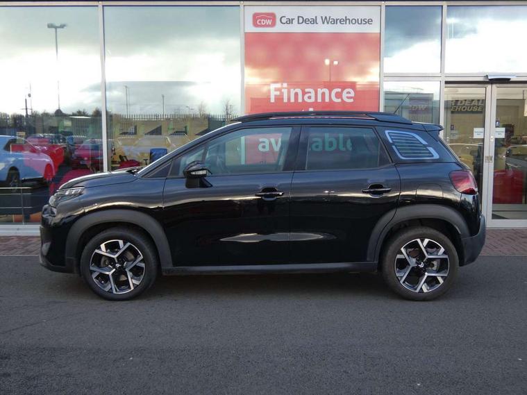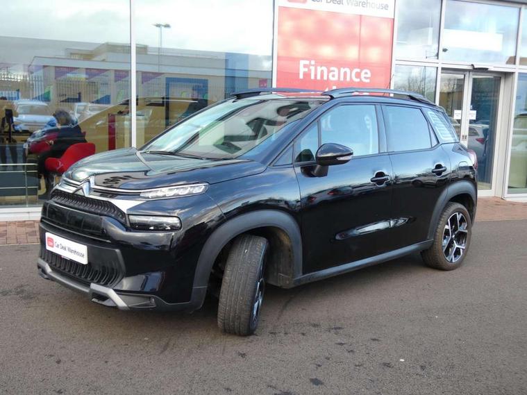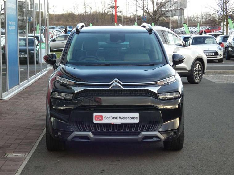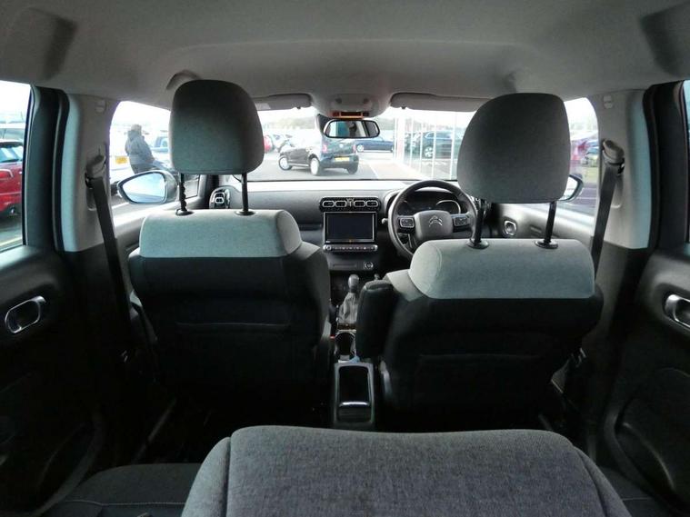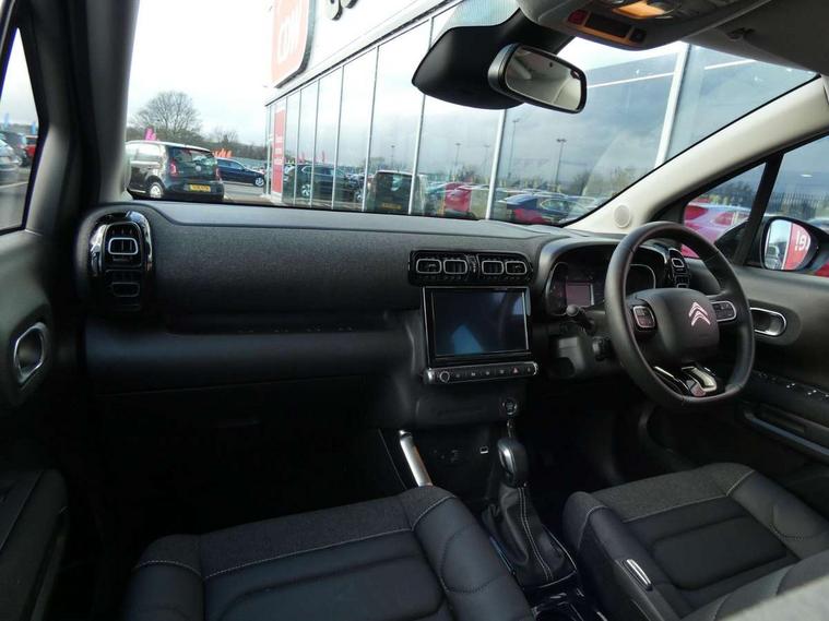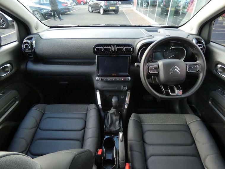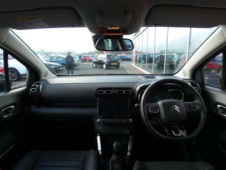 3.5" head up display, 9" Touchscreen display, Citroen connect box emergency and assistance system, Citroen Connect Nav with 3D navigation, Coffee Break Alert, Cruise control with speed limiter, Driver instrument cluster including trip computer and rev counter with white text LCD display and white needles and chrome decor, eCall emergency call system, Engine start button, Lane departure warning system, Mirror screen with Apple CarPlay and Android auto, Outside temperature sensor, Rear parking sensors, Tailgate, Top rear vision reversing camera, Traffic signs and speed limit recognition and recommendation, Variable assistance power steering, Voice recognition for radio, navigation and telephone features, Bluetooth hands free and media streaming with USB socket, Citroen connected DAB radio with 6 speakers, Steering wheel mounted controls for stereo and telephone, 3D effect LED rear lights, Automatic Eco LED headlights, Automatic lights and windscreen wipers, Black roof bars, Body colour painted door handles, Chrome chevrons front grille, Electric front windows + one touch + anti-pinch, Electric rear windows with one touch/anti-pinch, Electrically adjustable door mirrors, Electrically folding door mirrors, Electrochrome rear view mirror, Fog lights integrated into front bumper, Front and rear body coloured bumpers, Heated door mirrors, Integrated roof spoiler, LED daytime running lights, LED third brake light, Rear side wing doors, Rear wiper, Roof aerial, Tinted rear windows and rear quarterpanel glass, Variable front intermittent wipers, 12V socket in front, 12V socket in rear of vehicle, 60/40 split folding rear seats with sliding rear bench, centre armrest and ski flap, Automatic air conditioning, Boot light, Brasilia leather effect and flecked cloth upholstery with metropolitan graphite ambience, advanced comfort seats and wrapped dashboard, Central adjustable armrest on drivers seat, Centre console with closed storage and chrome insert, Driver and front passenger cup holders, Driver and passenger sunvisor with courtesy mirror, Flex load/Pull out boot floor, Front and rear courtesy reading lights, Front and rear door storage, Front head restraints, Front passengers seat flat folding, Glovebox with closable lid, Height adjustable driver's seat, Height and reach adjustable steering wheel, Leather steering wheel with satin chrome inserts and radio controls, Manual handbrake with chrome insert, Passenger compartment headlight adjustment, Rear isofix mounting points (outside seats) with top tether, Row 2 - Three seats with individually adjustable head rests, Satin chrome interior door handles, Single front passenger seat, Gloss black colour pack - C3 Aircross Max, 3 point, height adjustable, pre tensioned front seatbelts, ABS with Electronic brakeforce distribution and Emergency braking assistance, Active safety brake including Forward collision warning, Automatic illumination of hazard warning lights, Curtain airbags, Driver airbag, Drivers/passengers and rear seats unfastened seat belt warning, ESC (Electronic Stability Control), Front lateral airbags, Front passenger airbag, Front passenger airbag deactivation switch, Hill start assist function, Mono-tone horn, Rear door child safety locks, Three 3 point rear seatbelts, Tyre pressure monitor, Automatic door and boot locking when moving off with automatic unlocking in case of impact, Automatic locking of the vehicle (after 30 seconds if door or boot unopened), Immobiliser, Keyless entry and keyless start, Perimetric and volumetric anti theft alarm, Remote central locking + deadlocks, Vehicle locater function (headlights illuminate when button on key pressed), Gloss black centre console, Satin chrome air vent decors,