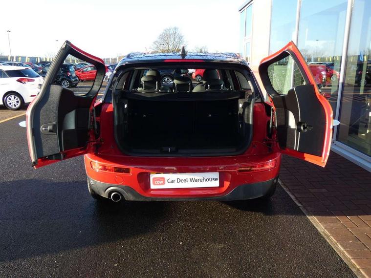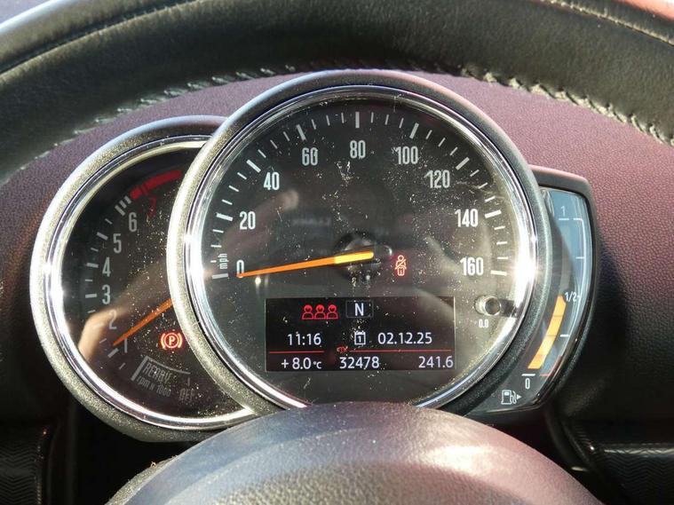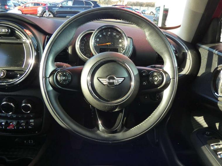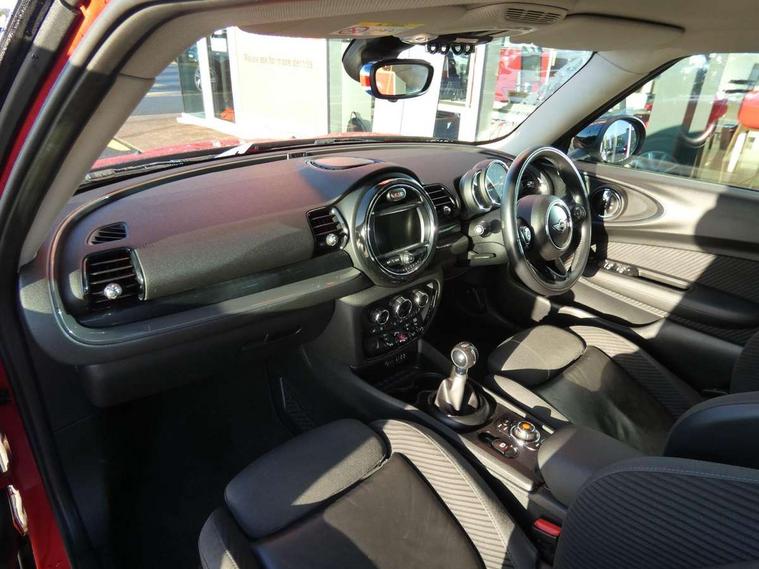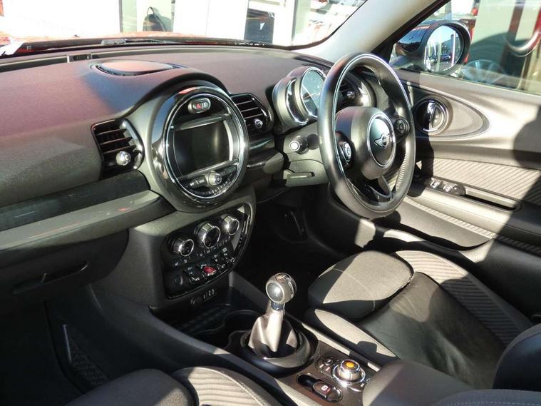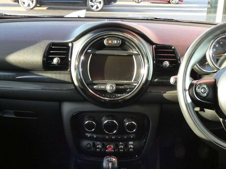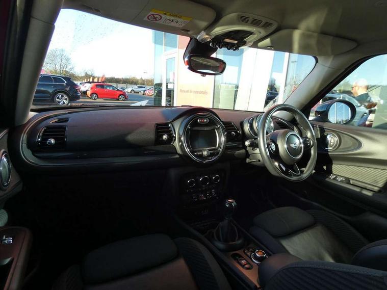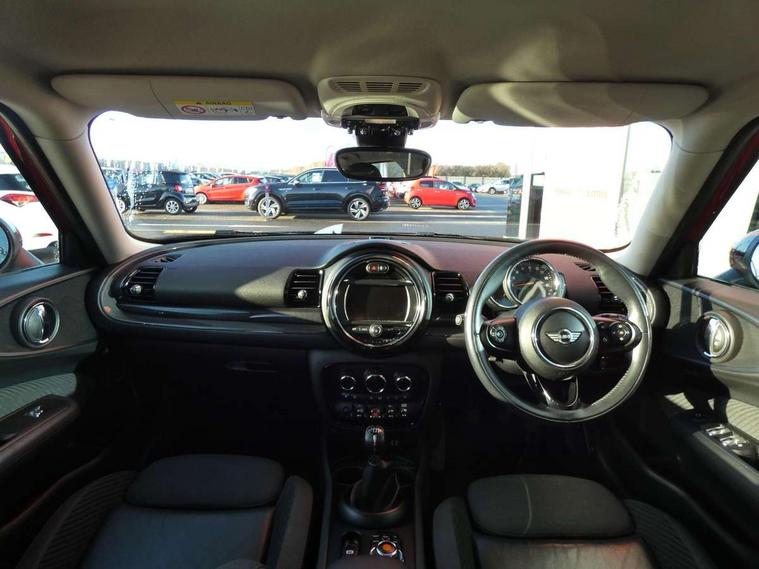 Brake pad wear indicator warning light, Central display with LED ring and 6.5" colour touch screen, DTC - Dynamic traction control, Exterior temperature gauge, Intelligent emergency call, Mini Ecall, MINI TeleServices, Navigation system, On board computer, Personal Profile, Service interval indicator, Servotronic speed sensitive power steering, Electronic differential lock, Auxiliary input socket, DAB digital radio module, MINI Connected, MP3 compatible radio/single CD player, Radio visual boost, Anti dazzle rear view mirror, Body coloured bumpers, Chrome door handles, Chrome exhaust tailpipe, Chrome headlight surround, Chrome plated radiator grille, Electric front windows + one touch + anti-pinch, Electrically adjustable door mirrors, Follow me home headlights, Front intermittent wipers, Heated door mirrors/heated windscreen washers, Heated rear window with timer, Metal look door sill finishers, Rain sensor including auto headlights activation, Rear wiper, Roof spoiler, White indicator lights, 12V power point front, 4 lashing points to secure luggage, 60/40 split folding rear seat, Centre console storage box, Chrome interior door handles, Driver/passenger sunvisors, Easy entry seats, Front and rear cupholders, Front and rear Isofix child seat preparation, Front and rear velour floor mats, Front centre armrest with storage compartment, Front headrests, Front interior light, Front passenger grab handle, Front seat backrest storage nets, Heater with recirculation function, Height/reach adjust steering wheel, Luggage compartment lighting, Multifunction steering wheel, Outer passenger rear headrests, Rear armrest with storage, Rear grab handles, Storage compartments in doors, Toolkit in luggage compartment, Interior lights pack - Mini Clubman, 3 point automatic seatbelts, 3 point seatbelts on all rear seats, ABS, Automatic Stability Control (ASC), Cornering brake control (CBC), Crash Sensor - activates hazard/interior lighting + unlocks doors, Driver and passenger airbags, Driver and passenger side airbags, DSC - Dynamic Stability Control, Electronic brake force distribution, Electronic parking brake, Front curtain airbags, Front passenger airbag deactivation, Fuel cut off safety device, Hill start assist, Pyrotechnically pre-tensioned front seatbelts, Traction control, Twin horns, Tyre pressure warning, Drive away door locking, Keyless Start, Locking wheel bolts, RF remote control central locking, Second remote key, Thatcham category 1 alarm + immobiliser,