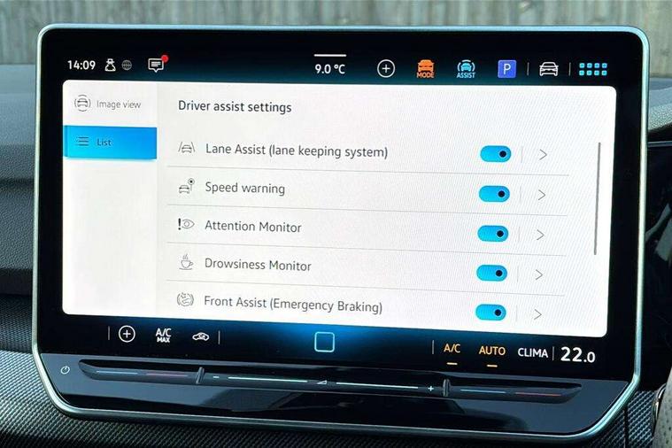 Activated carbon canister, Adaptive cruise control (ACC), Advanced driver attention and drowsiness monitor, Dynamic road sign display, Dynamic steering, E-Sim card for online connectivity, eCall emergency call system, Multi-color Digital cockpit pro, selection of different info profile possible, Multifunction front facing camera for distance control, Navigation system, Oncoming vehicle braking when turning including swerve support, Preparation for light assist system, Speed limiter, Speedo, rev counter, electronic odometer, trip, service interval display, exterior temperature and fuel gauge, Traffic jam assist, Voice enhancer and voice control, Warning signal and warning light for front and rear seatbelts not fastened, We connect plus preparation, We connect preparation, Wireless app connect, Diesel particulate filter, Hybrid propulsion system, Start-stop system with battery regeneration (recuperation - energy recovery during braking), XDS electronic differential lock for improved traction and handling, 2 USB C ports in front, 2 USB charging sockets on the centre console in the rear charging capacity upto 45W, Comfort telephony + wireless charging, without wireless aerial connection, Digital radio reception (DAB), Diversity antenna for FM reception, Gaming platform via car app, Infotainment system with 12.9" display, Mobile phone interface with inductive charging feature, 3rd brake light, Auto headlights, Automatic headlamp activation with Coming home and Leaving home feature, Body colored bumpers in R-Line style, Body colour door handles, Exterior ambient lighting with illuminated door handles, Exterior mirrors convex on the left and aspherical on the right, Front and rear electric windows, Heat insulating windshield made of laminated glass, LED daytime running lights, Rear exhaust tailpipe, Rear fog light on one side and reversing lights on both sides, Rear side wing doors, Rear windscreen washer and wiper with interval delay, Remote electrically foldable door mirrors, puddle lights and reverse activated passenger's door mirror, Welcome light with surround lighting, 12V socket in front centre console, 12V socket in luggage compartment, 3 rear head restraints, 3 seat bench in 2nd row, Ambient lighting with 30 colour including LED light unit in front footwell with selectable light colour, Brushed stainless steel pedals, Carpet mats, front and rear, Chrome plated radiator grille inserts, air vent surrounds and light switch surrounds, Front centre armrest, Integrated front head restraints, ISOFIX anchors for child seats on outer rear bench seats and on front passanger seat compatible for i-Size, Luggage compartment lighting, Plastic gear knob, Premium sports seats in front, Rear cupholder and loadthough, Single front passenger seat, Soul black instrument panel, Split folding backrest with centre armrest and unsplit rear seat bench, Storm grey roof lining, Sun visors with illuminated vanity mirrors, 3 point height adj front seatbelts + pretensioners, 3 rear three point seatbelts, ABS, Autonomous emergency braking front assist with pedestrian and cyclist monitoring, Child locks on rear doors, Driver and front passenger airbag with front passenger airbag deactivation, Electronic parking brake with auto hold, ESC (Electronic Stability Control), Extended pedestrian protection measures, Hill start assist, Rear disc brakes, Two tone horn, Tyre pressure loss indicator, Volkswagen roadside assistance, Anti theft wheel bolts, Preparation for alcohol interlock, Decorative inserts carbon grey for dashboard and front door trim panels,