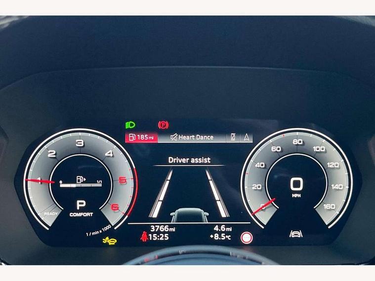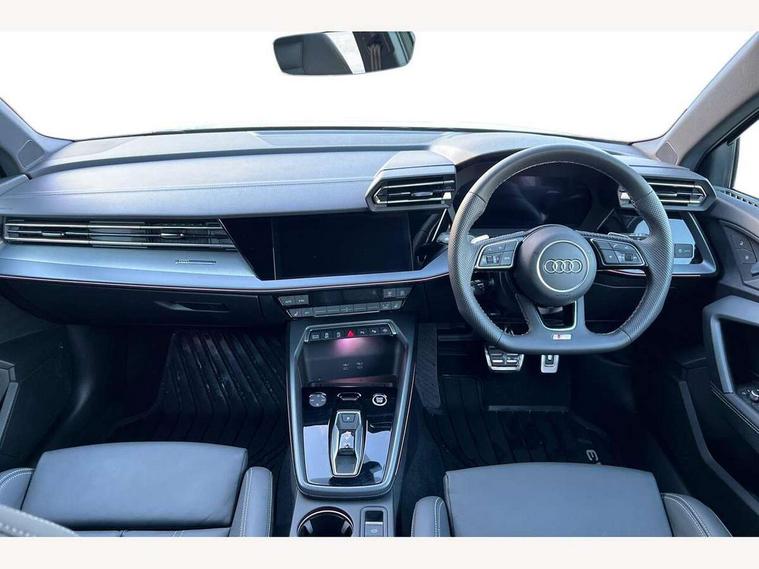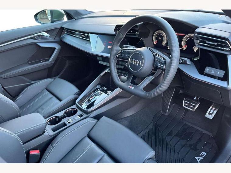 Adjustable speed limiter, Audi drive select, Audi smartphone interface with app store includes wireless Apple carplay, Android auto and Amazon alexa integration, Audi virtual cockpit plus - 12.3" full HD resolution dynamic digital instrument cluster, Automatic start/stop system with recuperation, Bluetooth interface, Camera based traffic sign recognition, Collision avoidance assistant, Cruise control, Distraction and Fatigue warning, e-Call (emergency call), Electromechanical power speed sensitive steering, Emergency assist, Lane departure warning system, MMI Navigation Plus with high resolution 10.1" colour touch screen display, Park Assist with parking system Plus, Service indicator, Tailgate, Trip computer, Voice control system with natural language interaction, Diesel particulate filter, Sports suspension, Audi Phonebox light with wireless charging, Audi sound system - 10 loudspeakers including centre loudspeaker and subwoofer, DAB Digital radio, USB ports with charging function in the rear, Acoustic glass windscreen, All weather light, Aluminium window trim, Auto dimming frameless rear view mirror, Automatic dynamic range control, Body colour exterior mirrors, Chrome exhaust tailpipes, Dipped beam, main beam, position light and turning light, Electrically adjustable/heated/folding/auto dimming door mirrors with integrated LED indications + kerb view function for passenger side, Exterior model badging, Front and rear side air inlets in grained matt black with dark liquid chrome frame, Front electric windows, Front radiator grill in high gloss dark chrome, Heat insulating glass windscreen, Illuminated door sills with aluminium inserts at the front with S logo, Intersection light, LED 3rd brake light, LED brake lights, LED daytime running x3, LED headlights with LED rear lights and dynamic rear indicators, LED rear number plate lights, LED reverse light, LED tail lights, Light and rain sensors, Manoeuvring light, Motorway light, Privacy glass - dark tinted rear window, rear door and side windows, Rear diffuser and grill in grained matt black with inlay in dark liquid chrome, Rear electric windows, Rear side wing doors, Rear wiper, S line bumpers, S roof spoiler, Side S line emblems on front wings, Side sill trim in dark liquid chrome, Static cornering light, 12V socket and storage compartment in front centre console, 3 seat bench in 2nd row, 3 spoke flat bottomed leather multifunction sport steering wheel with gear shift paddles, 3-zone deluxe automatic air conditioning, 4 way electrically adjustable lumbar support for driver and front passenger, 40/20/40 split folding rear seat bench, Black cloth headlining, Black front and rear floor mats, Front and rear centre armrest in artificial leather with contrasting stitching on armrests and instrument panel, Front and rear headrests, Heated front seats, Height and reach adjustable steering wheel, Manual boot compartment lid, Manually adjustable front seats, Rear centre armrest with cupholder, S badging on the steering wheel, Seat side bolsters, Single front passenger seat, Stainless steel pedals and front footrest in black, Twin leather upholstery with front sports seats S embossed logo, Aluminium interior elements pack - A3, Multi-coloured LED interior lighting package with Multi-coloured contour lighting of instrument panel - A3, 3x3 point rear seat belts, Driver and front passenger airbag with passenger airbag deactivation, Electronic Stabilisation Control (ESC) including ABS, ASR and EDL, First aid kit with warning triangle and 2 safety vests, Front side airbags with head airbags and interaction airbag, Hill hold assist, Pre-sense front with pedestrian and cyclist detection, Seatbelt monitoring, Tyre pressure loss indicator, Anti theft alarm, Anti-theft wheel bolts, Electronically operated child locks, Immobiliser, Remote central locking with safelock, Black dashboard, Inlay in dark aluminium spectrum,