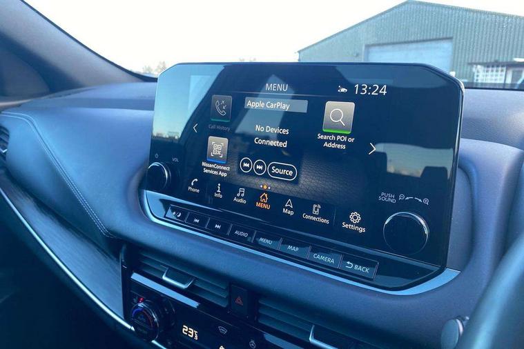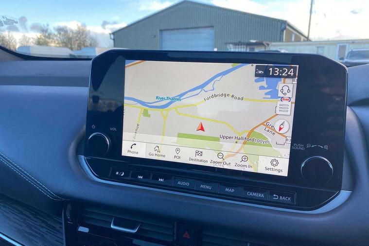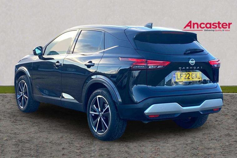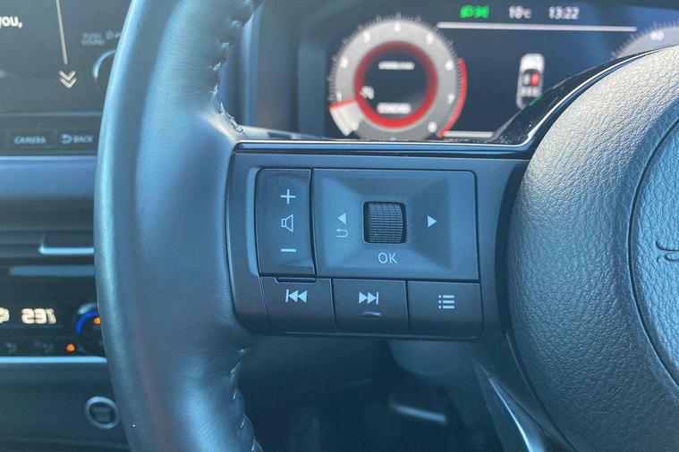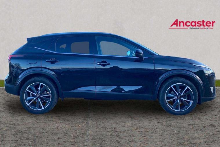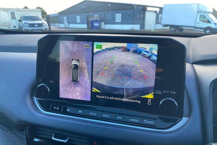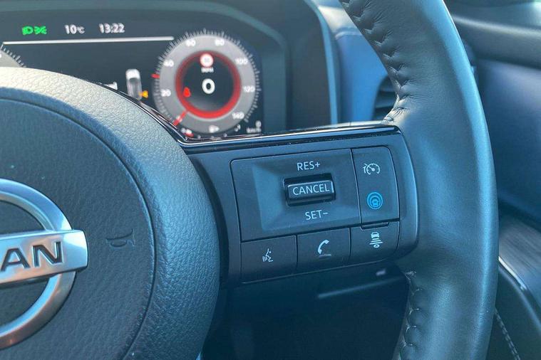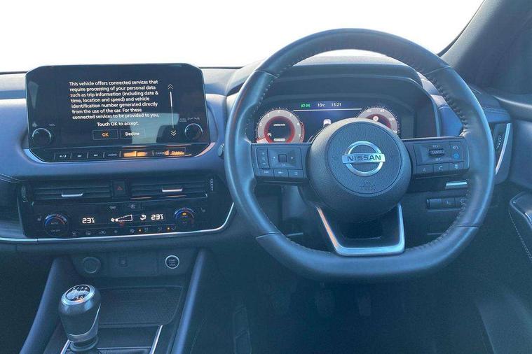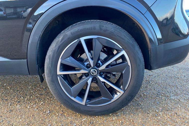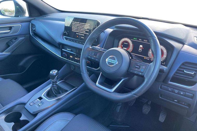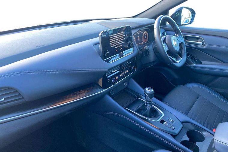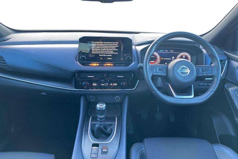 Blind spot warning, Drive modes (sport, normal, eco), Electric speed sensitive power steering, Emergency and breakdown call, Front and rear parking sensors, Full Digital 12.3" TFT Digital Combimeter, Google maps services - search, weather, 3D maps and Google street view, Hands free power tailgate, Idle stop/start system, Intelligent around view monitor, Intelligent Cruise control (ICC), Intelligent driver alert system, Intelligent forward collision warning, Intelligent lane intervention, Lane departure prevention, Lane departure warning system, Moving object detection, Nissan connect 12.3 inch touchscreen infotainment system, Nissan connect navigation, Push button starter, Rear cross traffic alert, Remote control services - door locks, lights, horn and car locator, Telematics - notifications and connectivity services, TomTom live traffic services, Traffic sign recognition with legal speed adjustment, Trip computer, Virtual personal assistant and firmware over the air capability, Wireless Apple CarPlay and wired Android Auto, Wireless charging pad, 6 speakers, AM/FM audio system with DAB, Bluetooth audio streaming, Front USB connections (Type-A and Type-C), Rear USB charging only ports (Type-A and Type-C), Auto dimming rear view mirror, Auto rear wiper when reversing, Automatic hazard signal with emergency stop signal, Body colour mirror caps, Body coloured door handles, Bodyside mouldings, Chrome side window finisher, Door handle with button, Dusk sensor, Electric auto folding door mirrors, Electrically adjustable and heated door mirrors with LED turn indicator, Fixed panoramic glass roof with electric sunshade, Follow me home headlights, Front and rear LED turning signals, Intelligent auto headlights, LED daytime running lights, LED rear lights, One touch front and rear electric windows with remote opening and closing, Partially body coloured bumpers, Privacy glass, Rain sensor, Rear bumper with graphite insert, Rear roof spoiler, Rear side wing doors, Rear styling plate, Roof rails, Shark fin antenna, Splash free rain sensing wipers, Super UV and infrared cut glass, Three blink turn signal, 12v power socket in dashboard and luggage, 2 way electrical driver lumbar adjustment, 2x Rear coat hooks, 3 bench rear seats in 2nd row, 3 rear headrests, 4 folding assist grip, 6 Luggage hooks - 4 on floor, 2 on side, 60/40 split folding rear seat bench, 8 way electric adjustable drivers seat, Ambient lighting around centre console, Ambient lighting in front doors, Centre console storage tray, Chrome interior door handles, Cloth/syntech leather monoform upholstery, Dark black/blueish PVC wrapping, Dark headlining, Driver and front passenger sunvisors with illuminated vanity mirrors, Driver seat back pocket, Dual zone automatic climate control with pollen filter, Front and rear door storage, Front cupholders x 2, Front door with bottle holders, Glovebox with light, Hard trunk cover, Height adjustable front headrests, Leather shift knob, Leather steering wheel, Luggage board system, Luggage space lighting, Manual lumbar support on passenger seat, Manually adjustable passenger (slide recline + lifter), Multifunction steering wheel, Passenger seat back pocket, PVC front centre console and armrest, Rear armrest with 2 cupholders, Rear door bottle holders, Single front passenger seat, Soft PVC kneepad, Steering wheel switches, Tilt/telescopic adjustable steering wheel, Two rear isofix child seat anchorage points with top tether, Welcome light and doors with console tray ambient lighting, Drive assist pack - Qashqai, Heat pack - Qashqai, Tech Pack (Drive Assist + HUD), 3x3 point rear seatbelt pretensioners + load limiters, ABS, ESP, EBD and brake assist, Active brake limited slip, Auto hold function, Child locks on rear doors, Curtain and front side, far side airbags, Driver and passenger airbags, Driver, passenger and 2nd row rear seat belt reminder, Electronic parking brake, Front seatbelt pretensioners + load limiters, Height adjustable front seatbelts, Hill start assist, Intelligent blind spot intervention, Intelligent front emergency braking with pedestrian, cyclist recognition and junction assist, Intelligent rear automatic braking, Tyre pressure monitoring system, Vehicle dynamic control, Capless fuel filler, Engine immobiliser, Nissan i-key, Remote central door locking with deadlocking, Thatcham Cat.1 alarm, Interior instrumental panel C finisher, 19" Alloy wheels, Tyre puncture repair kit,