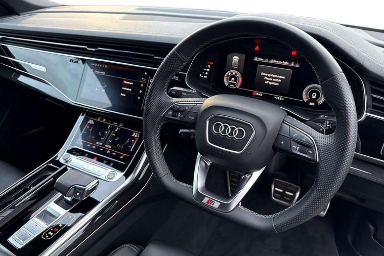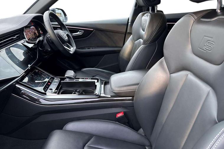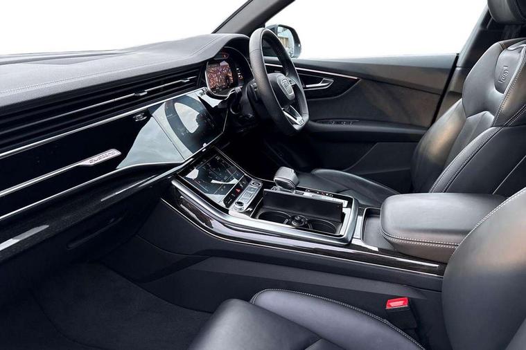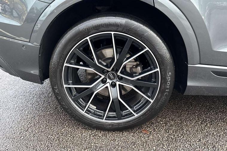10.1" and 8.6" Dual colour touchscreens, Audi connect safety and service (e-call), Audi connect with Amazon Alexa Integration, Audi drive select, Audi parking system plus includes 360 degree display with front and rear sensors, Audi phone box light with wireless charging, Audi virtual cockpit - 12.3" high resolution LCD display with fully customisable instrument cluster, Automatic start/stop system, Electro-mechanical PAS, Low washer fluid indicator, MMI - Multi Media Interface control system, MMI navigation plus with MMI touch, Natural voice recognition, On board computer, Operating buttons in black, glass look with haptic feedback, Power operated tailgate, Rear view camera, Service interval indicator, Smartphone interface includes wireless Apple carplay/Android Auto, 48V Mild hybrid technology, Adaptive sport air suspension, Diesel particulate filter, Quattro all wheel drive with self locking centre differential, Audi music interface with 2 USB ports with charge and data functions, Audi sound system with 6 channel amplifier, 180 watt amplifying capacity and 10 loudspeakers including subwoofer, Aux-in socket, DAB Digital radio, 3rd brake light, Acoustic windscreen, Aluminium window trim, Audi beam, Audi HD Matrix LED headlights with dynamic front and rear indicators, Auto dimming frameless rear view mirror, Black Audi rings and black badging, Coming/leaving home lighting function, Electric front+rear windows, Electrically folding auto dimming/adjustable/heated door mirrors with memory function, LED side indicators and kerb view function for passenger side, Headlight washers, Heat insulating glass in windshield, LED signature daytime running lights, Platinum grey front spoiler lip and diffuser insert with honeycomb grille in black, Privacy glass - dark tinted rear and rear side windows from B-pillar backwards, Rain and light sensors, Rear side wing doors, Rear wiper, 2 zone automatic climate control, 3 bench rear seats in 2nd row, 4-way lumbar support for front seats, 40:20:40 split folding rear bench seat, Audi phone box light, Black cloth headlining, Comfort front centre armrest, Driver seat memory function, Electrically adjustable front seats, Front head restraints, Front/rear floor mats, Heated front seats, ISOFIX child seat mounting for front passenger seat and 2 outer rear seats with top tether child seat mounting for all 3 rear seats, LED interior ambient lighting, Luggage compartment sill protection in stainless steel, Rear centre armrest with 2 cupholders, Rear headrests, Seat cushion displaceable by 100mm in the ratio 60:40, Single front passenger seat, Stainless steel pedals, Sunvisors with illuminated vanity mirrors, 3 point seatbelts on all seats, Audi pre sense front, Child locks on rear doors, Driver and front passenger, front side and curtain airbags, Electromechanical parking brake, Electronic Stability Control (ESC) including ABS, ASR and EDL, Front passenger airbag deactivation, Hill descent control, Hill hold assist, Predictive pedestrian protection, Seatbelt monitoring, Traction control, Tyre pressure loss indicator, Warning triangle and first aid kit, Anti theft alarm with tow away protection, Anti-theft wheel bolts and wheel loosening detection, Immobiliser, Keyless go with remote central locking, Polished oak trim with grey finish inlay, Tool kit, Tyre repair kit,