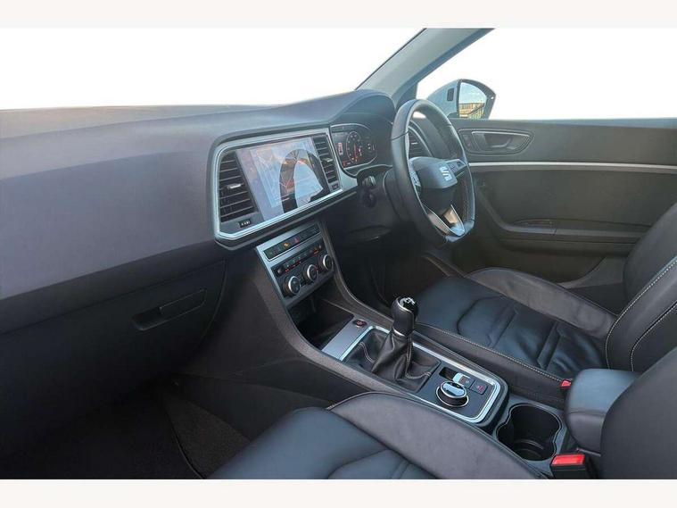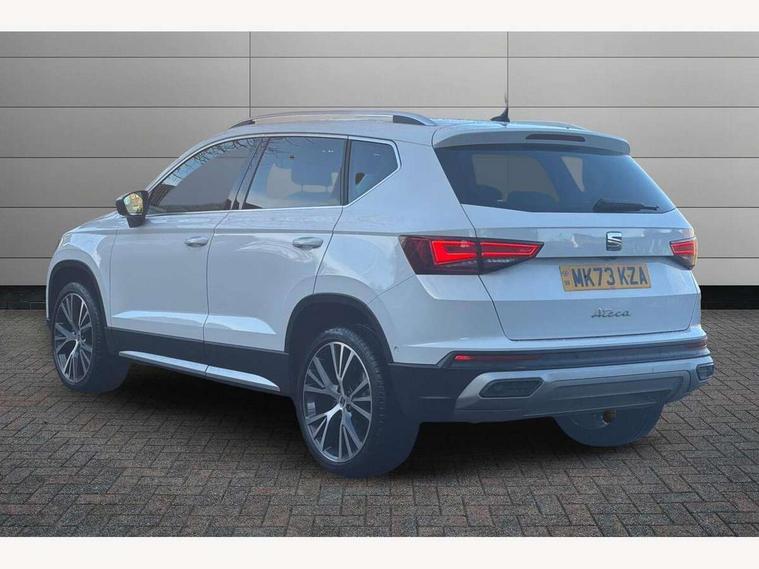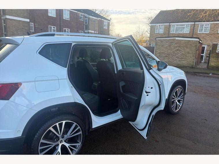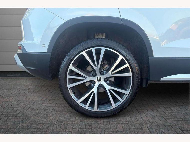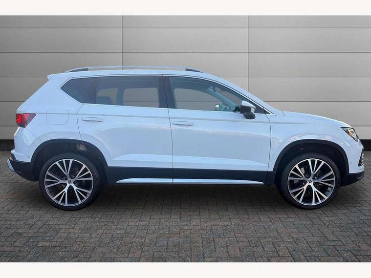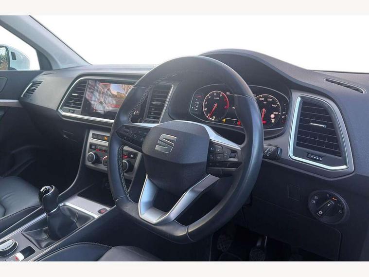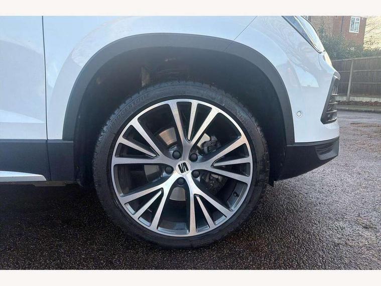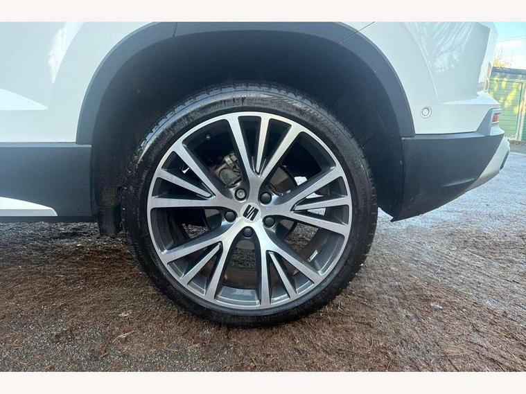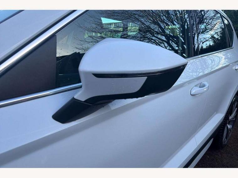 10" Digital cockpit, E-call, Electric tailgate with virtual pedal, Outside temperature gauge, Progressive power assisted steering, SEAT drive profile with driving experience button - Normal, Sport, Eco and Individual mode, steering and throttle response, Self parking functionality (includes front and rear parking sensors), Side and exit assist, Start/stop system, Tailgate, Top view camera, Trip computer, Wireless full link smartphone integration, Wireless phone charger, Steering wheel mounted audio/phone controls, Black simulated exhaust pipes, Black wheel arch surrounds, Body colour bumpers, Chrome front grille frame, Chrome roof rails, Chrome side window trim, Dark tinted rear windows, Daytime running lights, Door mirrors with welcome light silhouette, Dynamic headlight range control with self adjusting whilst driving, Electric adjustable/heated/folding door mirrors, Front and rear electric windows, Front grille hot stamping, Full LED headlamps with lens and LED front fog lamps with cornering function, Heated windscreen, Illuminated aluminium front door sill, LED rear tail lights with dynamic indicators, Rear fog lights, Rear side wing doors, Rear wash/wipe, Reflex silver side mouldings, Third brake light, Variable front intermittent wipers, 12v socket in front, 3 seat bench in 2nd row, 60/40 split folding rear seat, Drawer under right front seat, Dual zone climate control, Front and rear head restraints, Front centre armrest, Front seat back storage pockets, Heated front seats, Heated steering wheel, Height adjustable driver and passenger seat with lumbar adjustment, ISOFIX points in outer rear seats with top tether anchorage points, Leather steering wheel and gear knob, Leather upholstery with Comfort seats, Rear armrest and easy back seat release mechanism from boot, Single front passenger seat, Convenience pack - Ateca, Interior lighting pack - Ateca, Navigation system pack with DAB - Ateca, Safe and driving pack with lane assist - Ateca, 3x3 point rear seatbelts, ABS, Traction control system (TCS), Electronic stability control (ESC) and Electronic differential lock system (XDS), Airbags - Driver and front passenger airbag with deactivation, front side, two curtain and driver's knee airbags, Electric parking brake with auto hold function, Front and rear seatbelt reminder, Hill hold control, Manual rear child locks, Pre crash system, Single tone horn, Tiredness recognition system, Traction control, Tyre pressure monitoring system, Alarm, Keyless entry, Locking wheel bolts, Remote central locking, Chrome interior detailing, 19" Exclusive machined alloy wheels 36/4 in nuclear grey,
