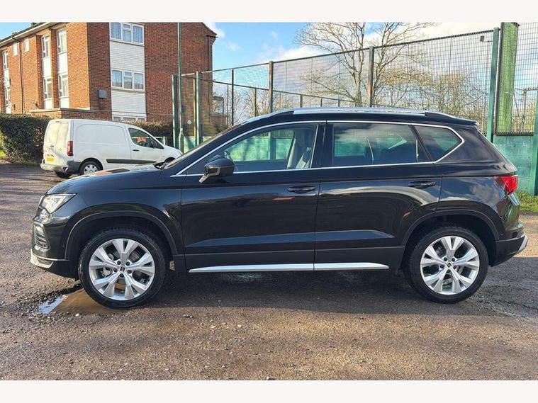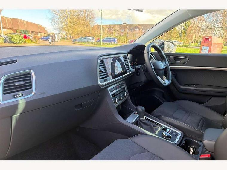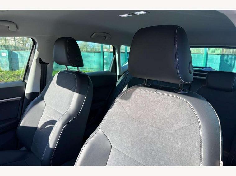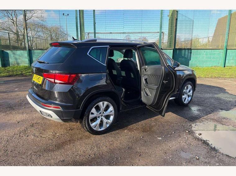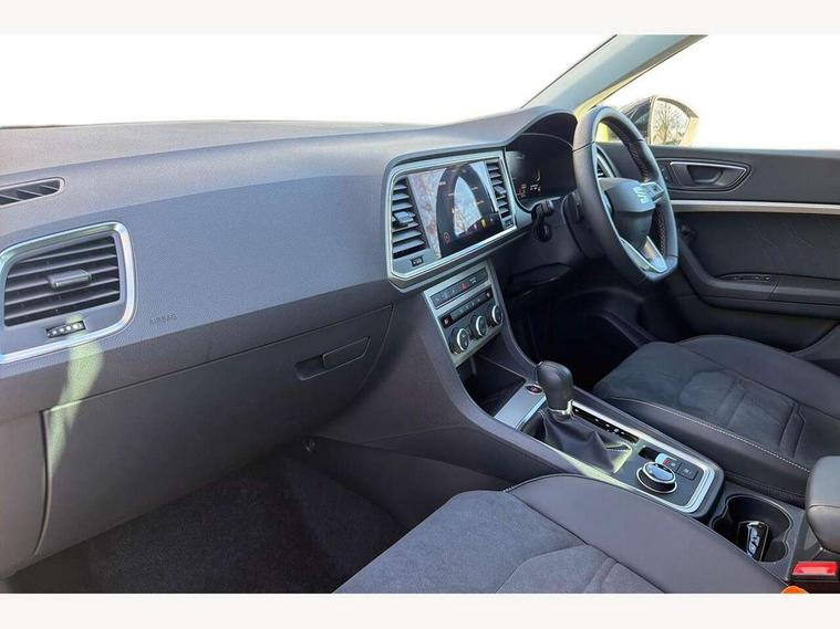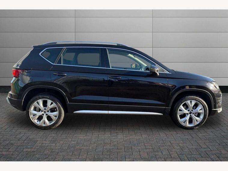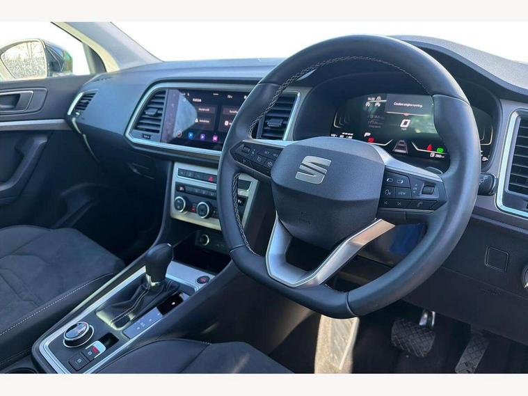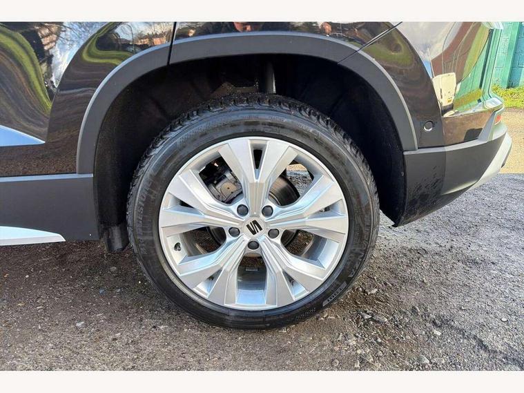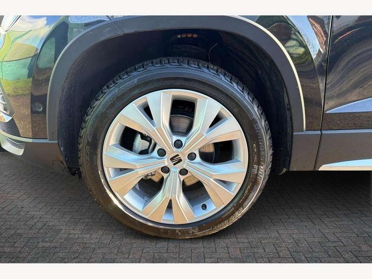 8" Digital cockpit, Colour multi-function on board computer display, E-call, Electric tailgate, Outside temperature gauge, Progressive power assisted steering, Rear view camera, SEAT drive profile with driving experience button - Normal, Sport, Eco and Individual mode, gearshift, steering and throttle response, Self parking functionality (includes front and rear parking sensors), Start/stop system, Trip computer, wired and wireless full link smartphone integration, Wireless phone charger, Steering wheel mounted audio/phone controls, Black wheel arch surrounds, Body colour bumpers, Chrome front grille frame, Chrome roof rails, Chrome side window trim, Dark tinted rear windows, Daytime running lights, Door mirrors with welcome light silhouette, Dynamic headlight range control with self adjusting whilst driving, Electric adjustable/heated/folding door mirrors, Front and rear electric windows, Front grille hot stamping, Full LED headlamps with lens and LED front fog lamps with cornering function, Heat reflecting windscreen, Illuminated aluminium front door sill, LED 3rd brake light, LED rear tail lights with dynamic indicators, Rear exhaust tailpipe, Rear fog lights, Rear side wing doors, Rear wash/wipe, Reflex silver side mouldings, Variable front intermittent wipers, 12V socket in front, 3 seat bench in 2nd row, 60/40 split folding rear seat, Dinamica upholstery with front comfort seats, Drawer under right front seat, Dual zone climate control, Front and rear head restraints, Front centre armrest, Front seat back storage pockets, Height adjustable driver and passenger seat with lumbar adjustment, ISOFIX points in outer rear seats with top tether anchorage points, Leather sports steering wheel and gear knob, Rear armrest and easy back seat release mechanism from boot, Single front passenger seat, Steering wheel mounted gearshift paddles, Convenience pack - Ateca, Interior lighting pack - Ateca, Navigation system pack with DAB - Ateca, Safety and driving pack (M) - Ateca, Safety and driving pack with attention and drowsiness assist - Ateca, 3x3 point rear seatbelts, ABS, Traction control system (TCS), Electronic stability control (ESC) and Electronic differential lock system (XDS), Airbags - Driver and front passenger airbag with deactivation, front side, two curtain and driver's knee airbags, Electric parking brake with auto hold function, Front and rear seatbelt reminder, Hill hold control, Manual rear child locks, Single tone horn, Tiredness recognition system, Tyre pressure monitoring system, Alarm, Keyless entry, Locking wheel bolts, Remote central locking, Chrome interior detailing, 18" Brillaint silver alloy wheels,