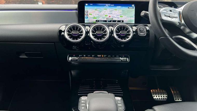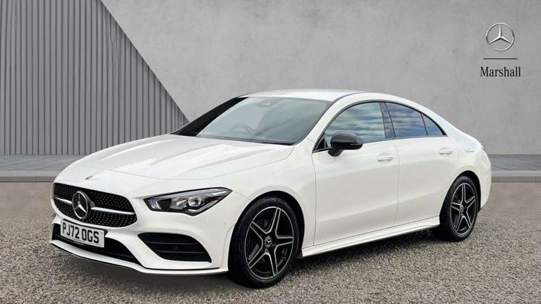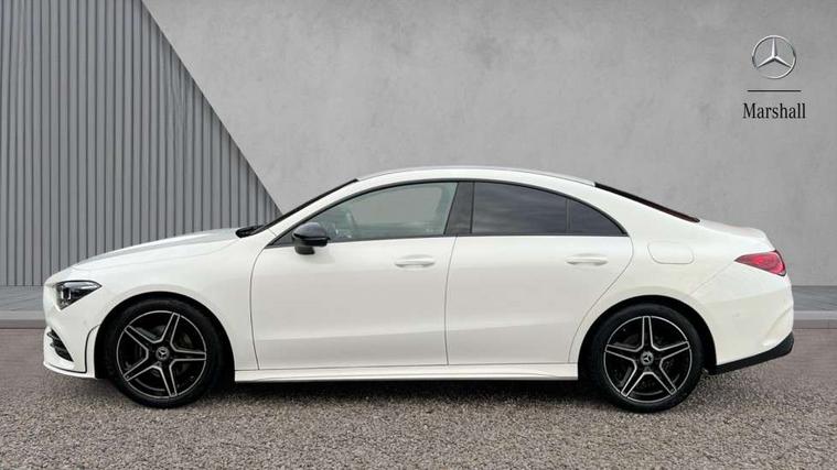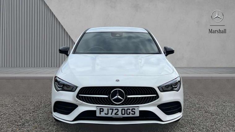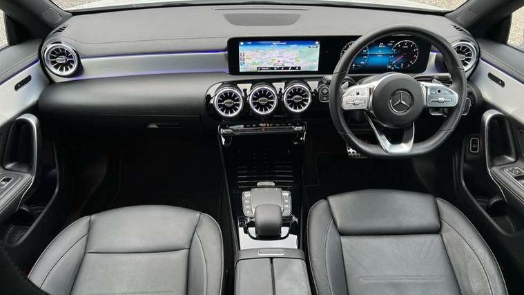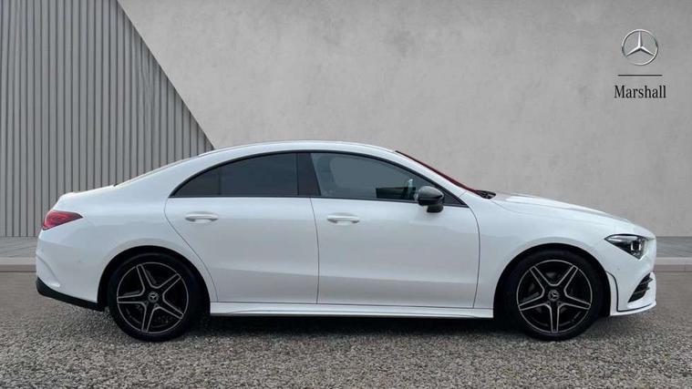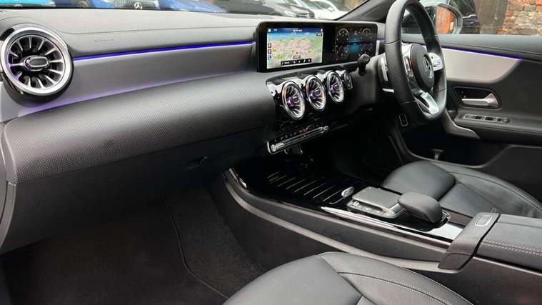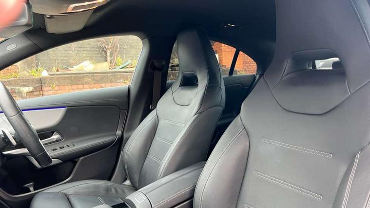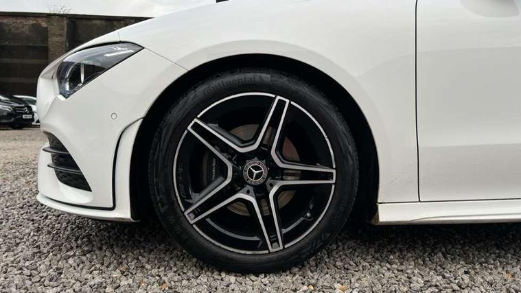 10.25 inch Instrument display with digital cockpit, 10.25 inch touchscreen central media display, Active lane keeping assist, Attention assist - Monitors steering behaviour and long journey fatigue, Bluetooth connection, Car wash mode, Cruise control with limiter, Direct steer system with speed sensitive power steering, DYNAMIC SELECT with a choice of driving modes (ECO, Comfort, Sport and Individual), ECO start/stop function, Fluid level warning indicator for fuel, oil, coolant and washer fluid, Hard-disk navigation, Hey Mercedes Voice activation, Lamp failure indicator, Mercedes me connect including emergency call system, accident recovery, breakdown and maintenance management, Mercedes me remote services, Outside temperature gauge, Owners manual and service booklet in English, Pre-installation of private car share, Preinstallation for Mercedes Benz link, Radio aerial integrated into front and rear windshields, Service indicator (ASSYST), Smartphone integration with Apple CarPlay and Android auto, Speed limit assist, Trip computer in multifunction display with current consumption indicator, Lowered comfort suspension, Rear axle multi-link, DAB digital radio tuner, MBUX multimedia system, Mercedes Benz sound system (100 W) with 6 speakers, USB (type C) ports (2) in stowage compartment and 1 in front of centre console, Adaptive brake lights, AMG body styling with AMG front apron and rear apron and visible exhaust tailpipe in chrome trim elements, AMG bodystyling side skirts, Body colour bumpers, Body colour door handles, Chrome beltline strips, Diamond radiator grille pins in chrome, Electric windows, Electrically adjustable and heated door mirrors with integrated LED indicators, Exhaust system with 2 Visible tailpipe trim elements and rear apron with trim in chrome, Headlamp assist automatic headlamp activation, Heated glass rear windscreen + timer control, High level LED third brake light, Interior mirror with black reading lamps and frameless, LED high performance headlamps with integrated LED daytime running lights, LED tail lamp, Privacy glass with dark tinting on rear side windows and rear window, Rain sensing windscreen wipers with two sensitivity settings, Rear boot, Rear fog lamp, Rear side wing doors, Variable front intermittent wipers, Window line trim strip in chrome, 3 seat bench in 2nd row, 3 spoke flattened bottom nappa leather multifunction steering wheel with perforated leather in grip area, 40:20:40 split folding rear seat backrests, Air conditioning - Two zone thermotronic luxury automatic climate control with display, Air vents with surround in silver chrome, Artico man-made leather upholstery, Automatic child seat recognition sensor, Black roof lining, Brushed stainless steel sports pedals with rubber studs, Floor mats with stitched AMG lettering, Front centre armrest with stowage, Front door sills with Mercedes Benz lettering, Galvanished gear shift paddles on steering wheel, Heated front seats, Illuminated glove compartment stowage, Interior lighting - 64 colour Ambient lighting, Luggage net on driver/front passenger seat backrest, Manually adjustable front seats, Manually height and reach adjustable steering column, Rear head restraints, Single front passenger seat, Sport seats with fixed head restraints, Stowage compartment in centre console with retractable cover, Sunvisors with illuminated vanity mirrors, Touchpad on center console, Twin front cupholders, Two outer rear seat isofix and top tether child seat fixing points, Light and sight pack - CLA, Mirror pack - CLA, Night package - CLA, Parking package - CLA, Seat comfort pack - CLA, Active bonnet pedestrain safety measure which detects an impact and raises bonnet by 65mm, Active brake assist includes forward collision warning system with autonomous braking, Adaptive brake assist with hold function and hill start assist, Anti lock braking system (ABS) with brake assist, Black seat belts, Bonnet with power domes, Brake pad wear warning indicator, Childproof locks manually operated for rear doors and electrically operated for rear power windows, Crash responsive emergency lighting, Driver and front passenger head and sidebags, Driver and front passenger windowbags, Drivers knee airbag, Dual stage driver and front passenger airbags, Electric parking brake, Electronic stability programme with acceleration skid control, ESP curve dynamic assist, Front and rear seatbelt reminder, Front passenger seat occupancy sensor, Three point rear seat belts, Tyre pressure monitoring system, Warning triangle and first aid kit, Guard 360 degree guard vehicle protection system with immobiliser and interior protection, Keyless Go starting function, Remote central locking and crash sensor with emergency opening function, Light aluminium with longitudinal grain interior trim, 18" AMG 5 twin spoke light alloy wheels painted in black with high sheen finish, Summer tyres, Tirefit tyre sealant kit,