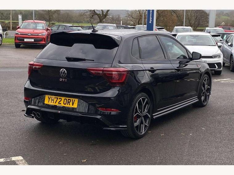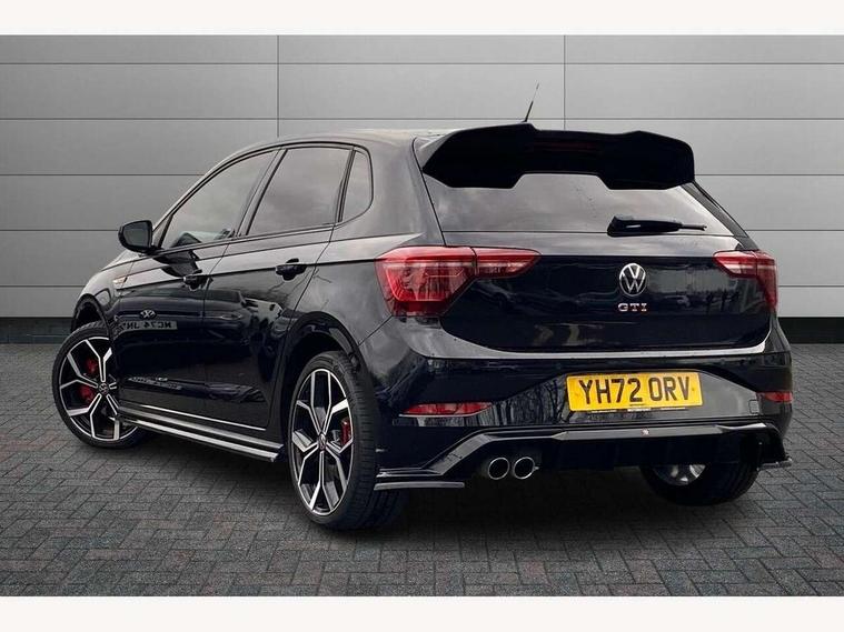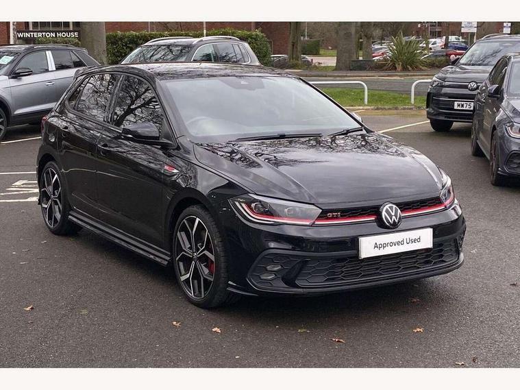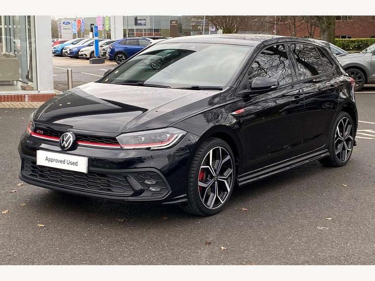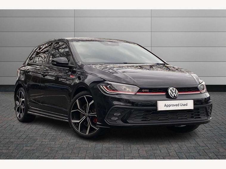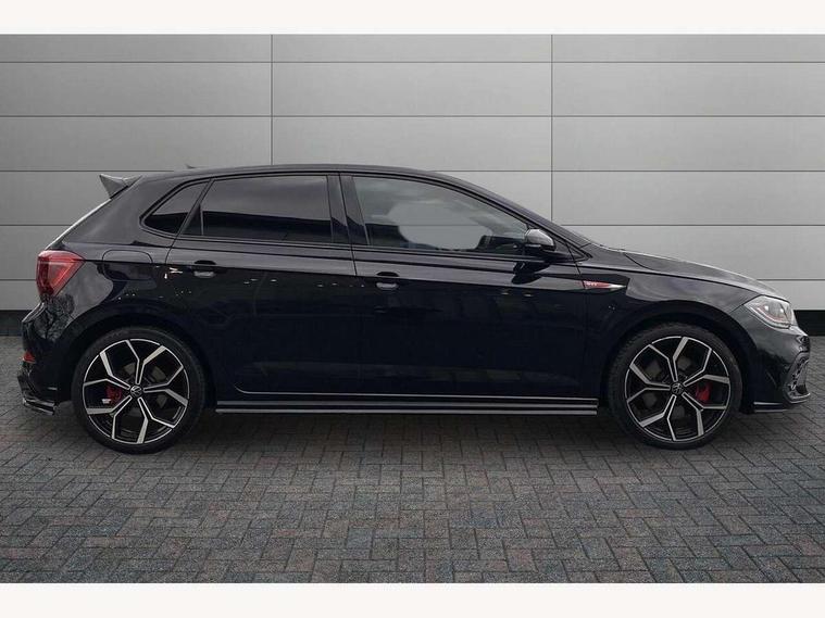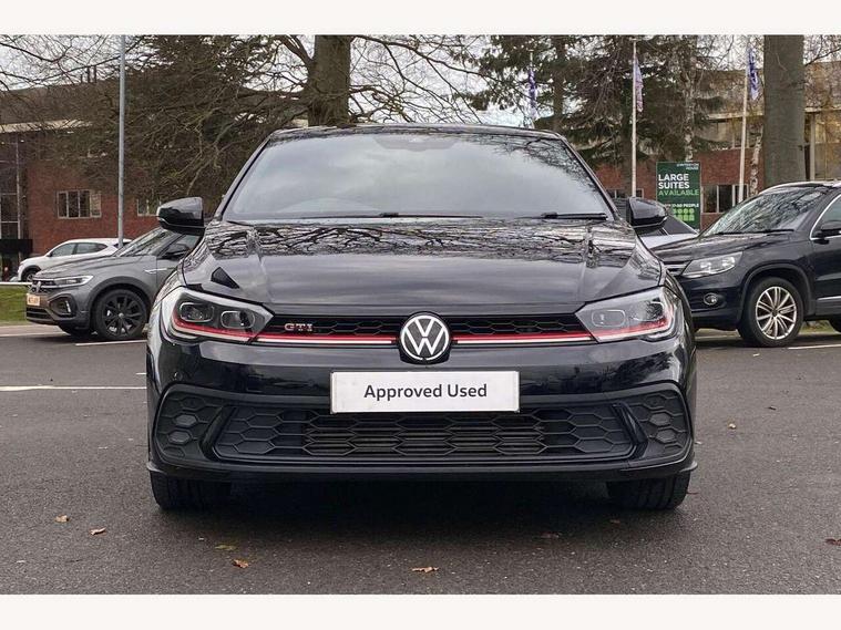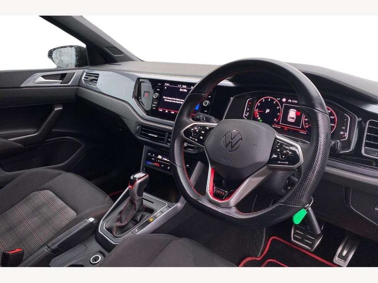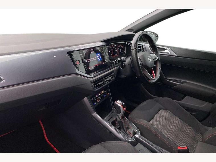 Adaptive cruise control with follow-to-stop and speed limiter, Bluetooth mobile phone interface, Digital Cockpit Pro with 10.25" Display, Driver alert system, Dynamic road sign display, Eco mode, Emergency call service, Power assisted speed sensitive steering, Preparation for We connect and We connect plus, Speedo and rev counter, electronic odometer, trip, service interval display and fuel gauge, Travel Assist - Lane keeping system and traffic jam assist, Travel assist including emergency assist, Trip computer, Warning signal and warning light for front and rear seatbelts not fastened, Washer fluid level indicator, Wireless app connect, Adaptive chassis control, Front wheel drive, Heavy duty rear axle, Rear shock absorpion sports version, Sports select suspension lowered by 15mm, Start-stop system with battery regeneration (recuperation - energy recovery during braking), DAB Digital radio, Diversity antenna for FM reception, Front and rear 6 speakers, Body colour bumpers, Body colour door handles, Electric front windows, Front scuff plates in aluminium with GTI logo, Heat insulating darkened glass in side and rear windows, Heat insulating glass windscreen, Power folding adjustable/heated exterior mirrors and front passenger exterior mirror lowering function, Rear electric windows, Rear fog light, Rear side wing doors, Rear windscreen washer and wiper with interval delay, Sport bumpers with air intakes with honeycomb structure, Third brake light, Twin chrome exhaust tailpipes, 12V power socket in centre console, 2 USB-C ports in the front, 2 USB-C charging sockets on the center console in the rear, 3 rear head restraints, 60/40 split folding rear seat and rear seat bench not split, Air care climatronic air conditoning system with active combination filter and 2-zone temperature control, Black roof lining, Ceramique headliner, Chrome plated radiator grille inserts, air vent surrounds and light switch surrounds, Door and side trim panel, Driver and front passenger seat height adjustment, Driver/passenger sunvisors with illuminated vanity mirrors, Front + rear carpet mats, Front centre armrest, Front footwell illumination, Front seat backrest storage pockets, GTI sports gearshift knob in aluminium leather, Handbrake lever handle in leather, Isofix child seat preparation easy-fit (for two outer rear seats, and front passenger seat) compatible with I-size, LED interior light with switch off delay and dimmer, 2 reading lights front and rear, Luggage compartment cover, Luggage compartment floor, Luggage compartment lighting, Single front passenger seat, Stainless steel pedals, Standard pedal cluster, Three spoke leather wrapped multifunction sports steering wheel with shifting paddles, IQ LED matrix headlights pack - Polo, Light and sight pack - Polo GTI, Sports suspension pack - Polo, 3 point height adj front seatbelts + pretensioners, 3x3 point rear seatbelts, ABS, Driver and front passenger airbag with front passenger airbag deactivation, Drivers and front passengers safety optimised head restraints, ESC (Electronic stability control) + EDL (Electronic Differntial lock) and ASR (Traction control), Extended and predictive pedestrian/ cyclist protection, Front and rear disc brakes with red brake calipers, Front curtain and side airbags with center airbag, Hill hold control, Manual child lock in rear doors, Two tone horn, Tyre pressure loss indicator, Alarm with interior protection, Anti-theft alarm system with interior monitoring, backup horn, and towing protection, Anti-theft wheel bolts, Electronic engine immobiliser, Chrome applications on rotary light, mirror adjustment, window regulator switches, outlet with frame in black, Low rolling resistance tyres,