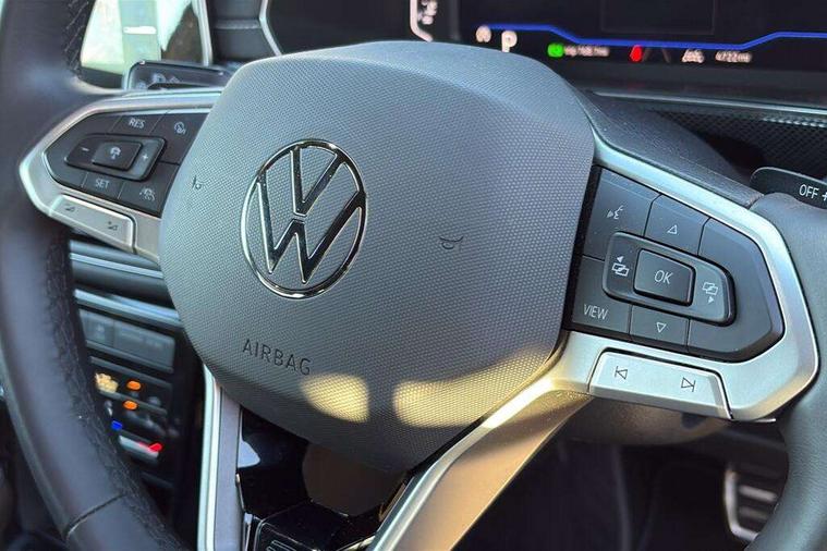 'Lights On' Reminder warning buzzer, 10.25" Digital cockpit pro, Advanced driver attention and drowsiness monitor, Car information display, Driver profile selection including ECO function, Dynamic road sign display, E-Sim card for online connectivity, eCall emergency call system, Front and rear parking sensors, Front assist, forward collision warning, autonomous emergency braking and speed limiter, Low washer fluid warning light, Mobile phone interface with inductive charging, Multifunction computer with visual gear change recommendation for fuel consumption, Multifunction front facing camera for distance control, Operating permit alteration, Power assisted steering, Predictive adaptive cruise control, Preparation for navigation system with media and internet package, Preparation for We connect and We connect plus, Semi-automated driving assistance, travel assist including lane keeping system Lane Assist and emergency assisst, Side assist, Speedo, rev counter, electronic odometer, trip, service interval display, exterior temperature and fuel gauge, Warning sound and light for doors and tailgate open, Warning sound and light for front seatbelts unfastened, Wireless Car net app connect with Apple CarPlay, combined functionality of Apple CarPlay/Android Auto and MirrorLink, Wireless charging, Misfuel prevention device, Start-stop system with battery regeneration (recuperation - energy recovery during braking), 2 USB C ports in front, 2 USB charging sockets on the centre console in the rear charging capacity upto 45W, Diversity antenna for FM reception, Music playback - MP3, WMA and AAC files, Radio, Advanced high beam control dynamic light assist, Automatic dimming interior rear view mirror, Automatic hazard lights activation under emergency braking, Automatic headlight control and coming home and leaving home feature, Black roof rails, Body colour door handles, Body coloured bumpers, Cornering light and poor weather light, Dynamic headlight range control, Electric folding door mirror, adjustable, heated with front passenger exterior mirror lowering function, Exterior mirror housings in black, Exterior mirrors convex on the left and aspherical on the right, Front and rear electric windows, Front door sill protectors with R-Line logo, Galvanised body, Heat insulating and laminated safety glass windshield, Heat insulating darkened glass in side and rear windows, Illuminated molding between headlamps, IQ.Light LED matrix headlamps with LED separate daytime running light, LED rear tail lights with dynamic turn signal, LED third brake light, Lower door sills and door pillars in black, Privacy glass for rear side windows and rear window, Rain sensor, Rear fog light on one side, reversing light on both sides, Rear side wing doors, Rear window aerial, Rear window wiper with intermittent control, Reflectors in all doors, Scuff plates, Tailgate with integrated roof spoiler, 12V Accessory socket in centre console, 2 Front and rear reading lights incorporating LED technology, 3 rear head restraints, 3 seat bench in 2nd row, 60/40 split folding rear seat backrest, Air care climatronic 2 zone air conditioning system, Ambient lighting and logo projection, Brushed stainless steel pedals, Chrome plated radiator grille inserts, air vent surrounds and light switch surrounds, Cloth upholstery, Comfort front sport seats, Door and side trim panel, Driver and front passenger sunvisor with vanity mirror, Dust and pollen filter, Front + rear carpet mats, Front centre armrest, Front centre armrest with storage compartment, Front footwell illumination, Front seat back storage pockets, Glove compartment door with light, Heated front seats, Heating and fresh air system with 4 stage blower, Height/reach adjust steering wheel, Instrument lighting white adjustable panel illumination, Interior light with switch off delay and dimmer, Isofix anchors for child seats on outer rear seats and front passenger seats, Leather gearshift handle, Leather wrapped multifunction steering wheel with paddle shift, Luggage compartment floor, Luggage compartment lighting, Manual front seats with height adjustment, Padded dashboard, Removable luggage compartment cover, Single front passenger seat, Storage compartment in drivers and front passengers door, Titanium black roof lining, Unsplit sliding rear seat bench, Without drawers under front seats, 3 point outer rear seat belts with ECE label, 3 Point seatbelt for centre rear seat, Anti-lock Braking System (ABS) with Hydraulic Brake Assist (HBA), Automatic post collision braking system, Disc brakes in front, Disc brakes in rear, Driver and front passenger safety-optimised head restraints, Drivers and Front Passengers airbags with front passengers airbag deactivation switch, ESC with EDL and ASR (traction control), Extended and predictive pedestrian/cyclist protection, Front and rear passenger curtain airbag system including front side airbags, Height adjustable front 3 point seatbelts + pretensioners, Hill start assist, Pre crash preventive occupant protection, Proactive passenger protection system in combination with front assist, Rear door child safety locks, Rigid safety cell with front and rear crumple zones, Single tone horn, Tyre pressure loss indicator, Volkswagen roadside assistance, Alarm with interior protection, Anti theft alarm system, Anti theft wheel bolts, Electronic engine immobiliser, Remote tailgate unlocking using key fob, Black decorative trims, Titanium Black Decorative inserts - R Line, 18" York alloy wheels in black, Low rolling resistance tyres,