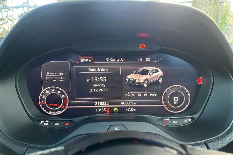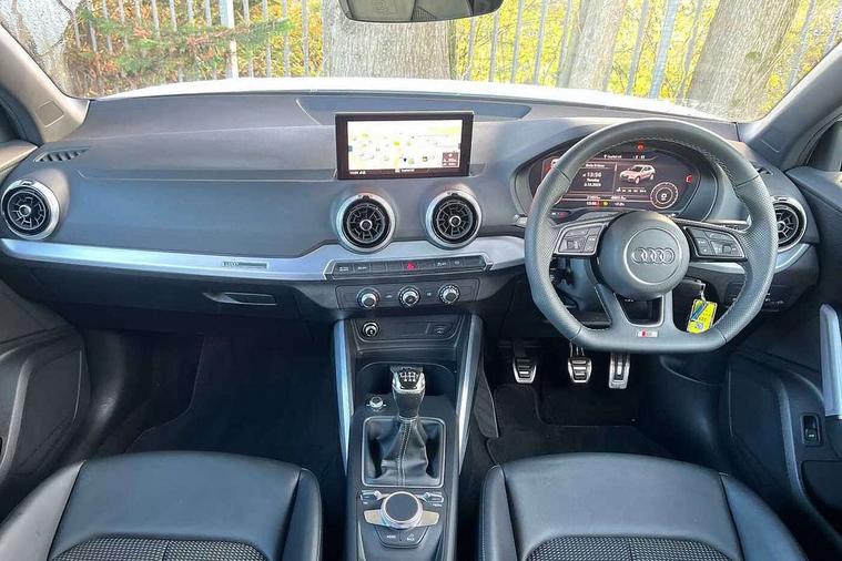 Audi connect navigation and infotainment includes innovative services, Audi connect remote and control connects your vehicle to your smartphone, Audi drive select, Audi drive select with efficiency, Audi smartphone interface, Audi virtual cockpit, Automatic start/stop system with recuperation, Bluetooth interface includes bluetooth audio streaming, Cruise control, E-call, MMI navigation plus with MMI touch, Power operated tailgate, Progressive steering, Rear parking sensors, 2 x SDXC card reader, 6 passive loudspeakers, DAB Digital radio, DVD Drive, Auto dimming rear view mirror, Black window trims, Bumper in full body colour paint finish, Electrically adjustable, folding, auto dimming and heated door mirrors with integrated LED side indicators, Front windscreen with grey tinted sunband, LED daytime running lights, LED headlights with LED rear lights, LED third brake light, Privacy glass - dark tinted rear and rear side windows from B-pillar backwards, Rear side wing doors, Rear wiper, Variable front intermittent wipers, Wheel arch trims in manhattan grey, 12V socket in front, 3 seat bench in 2nd row, 3 spoke flat bottomed multi-function leather sport steering wheel, 4-way electric lumbar support for front seats including seat height adjustment for both front seat, 60/40 split folding rear seat bench, Black cloth headlining, Front and rear head restraints, Front centre armrest, Front/rear floor mats, Height/reach adjust steering wheel, Illuminated door sill trims with S logo, ISOFIX child seat mounting in front passenger and rear outer seats, Single front passenger seat, Stainless steel pedals, Black styling pack - Q2, 3x3 point rear seatbelts, 6 airbags - Front, curtain and front side airbags, Electromechanical parking brake, Electronic stabilisation control including ABS, ASR and EDL, Front passenger airbag deactivation, Hill hold assist, Pre-sense front with pedestrian recognition, Seatbelt monitoring, Tyre pressure warning light, Warning triangle and first aid kit, Anti theft alarm, Anti theft wheel bolts, Electronically operated child locks, Remote central door locking, Aluminium interior element, Matt brushed aluminium trim inlays, Tool kit,