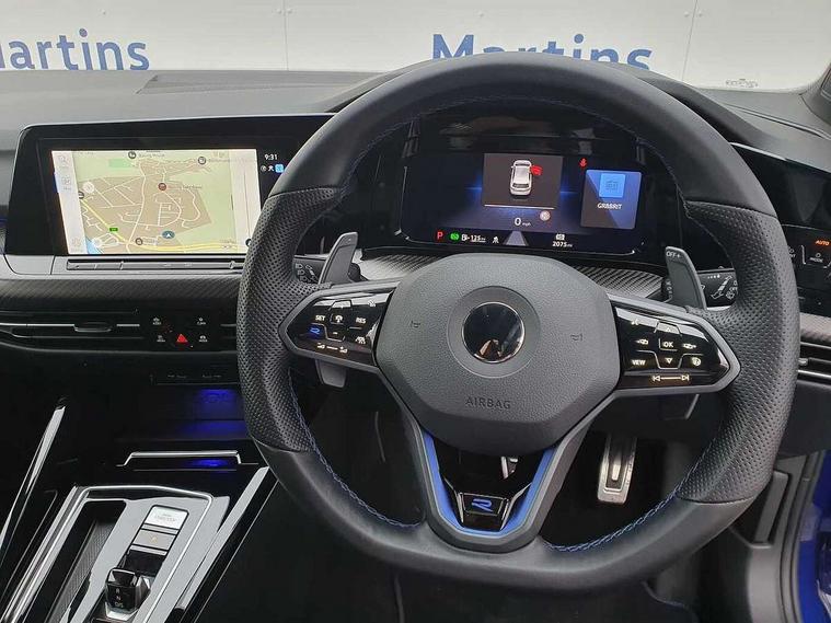 Adaptive cruise control (ACC) with speed limiter and front assist (reacting to vehicles pedestrians and cyclists), Car2X communication, Digital cockpit pro - 10.25" high resolution TFT dash display screen with customizable menus and information, Drive acoustics, Driver alert system, Dynamic road sign display, eCall - Emergency call service for SOS calls to emergency response, Lane assist, Lane change assistant, Mobile phone interface with wireless inductive charging function, PAS, Speedo, rev counter, electronic odometer, trip, service interval display, exterior temperature and fuel gauge, Start/Stop function, Travel assist with emergency side assist with electrically foldable door mirrors, USB-C ports in the front and rear centre console with increased charging performance, Warning buzzer and light for front seatbelts unfastened, Wireless app connect, 4Motion 4 wheel driver, Emotion start function, Front differential lock, Petrol Particulate Filter, XDS electronic differential lock for improved traction and handling, Premium USB cable in choice of either Apple or Android smartphone compatibility, "20" badge on the B-Pillar, Advanced high beam control dynamic light assist for LED matrix headlamps, Auto dimming rear view mirror, Automatic headlamp activation with Coming home and Leaving home feature, Automatic headlights, Blue 'R' logo on front grille, side fenders and rear tailgate, Body colour bumpers, Body colour door handles, Body colour rear roof spoiler, Front and rear electric windows, Golf 20 years styling - including '20 R' logo projection from door mirrors, Heat insulating glass windscreen, Heated rear windscreen, High level 3rd brake light, Highway light, IQ.Light - LED Matrix headlights, dynamic headlight control with advanced high beam control matrix dipped main beam + LED DRL + 22 LED lights, LED front fog lights with 5 honeycomb design, LED License plate illumination, LED rear combination lamp inlcuding dynamic turn signal, Performance rear spoiler, Rain sensor, Rear fog light on one side and reversing lights on both sides, Rear side wing doors, Rear tinted glass 65% light absorbing from B pillar backwards, Rear windscreen washer and wiper with interval delay, Remote electrically heated, adjustable and foldable door mirrors, including door mirror puddle lights and reverse activated kerb-view adjustment on pa, Welcome light, 12V socket in front centre console, 12V socket in luggage compartment, 3 rear head restraints, 3 seat bench in 2nd row, 3 zone climate with controls in the rear, Aluminium gear knob, Ambient lighting - Customisable 30 colour ambient lighting, Ambient lighting, exterior illuminated styling elements at the sides, Black roof lining, Blue R logo on the multifunction sport steering wheel and on the vehicle key cap, Brushed stainless steel pedals, Chrome plated surround to electric mirror button, window switch and air vent surrounds, Door insert in Artvelours, Drivers and front passengers sun visors with vanity mirrors, Front + rear carpet mats in recycled material, Front centre armrest with storage compartment, Front cupholders x 2, Front passenger seat, Front reading lights x 2 incorporating LED technology, Front seat lumbar support adjuster, Glovebox, Height adjustable front seats, Height and reach adjustable steering wheel, Isofix child seat preparation for 2 rear child seats and front passenger seat, Leatherette door armrests and centre armrest, Luggage compartment lighting, Nappa leather upholstery with heated, active climate control sports comfort seats, electric adjust driver seat, memory, leather door insert, R leather wrapped multi function sports heated steering wheel with extended paddle shift, Removable luggage compartment cover, Split folding backrest with centre armrest and unsplit rear seat bench, Sports seats with integrated headrest in Nappa leather front and outer rear seats with R logo in upper backrest, Woven fabric storage compartments in front and rear doors, R performance pack - Golf R 20 years, R styling pack - Golf, Winter pack - Golf R Line/GTE/GTD/GTI/GTI Clubsport/R/Alltrack, 3 point height adj front seatbelts + pretensioners, 3 rear three point seatbelts, ABS, Blue brake callipers in front with R logo, Child locks on rear doors, Driver and front passenger airbag with front passenger airbag deactivation, Drivers and front passengers safety optimised head restraints, Electronic parking brake with auto hold, ESC (Electronic Stability Control), Extended pedestrian protection measures, Front and rear passengers curtain airbag system including front side airbags, Front disc brakes, Rear disc brakes, Two tone horn, Tyre pressure monitoring system, Alarm with interior protection and deactivation via infotainment system, Electronic engine immobiliser, Keyless entry with start/stop button on centre console, High gloss black centre console, High quality decorative trim in Genuine Carbon on dash panels and door trims, Soul dashboard, Tyre mobility kit Includes 12V compressor and tyre sealant,