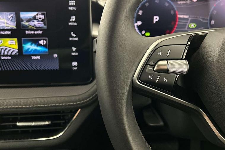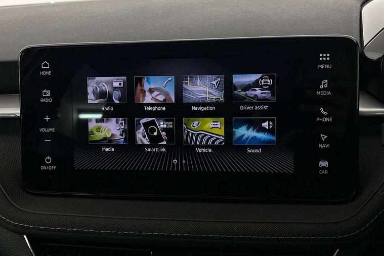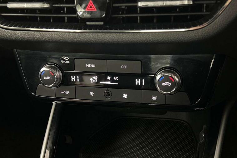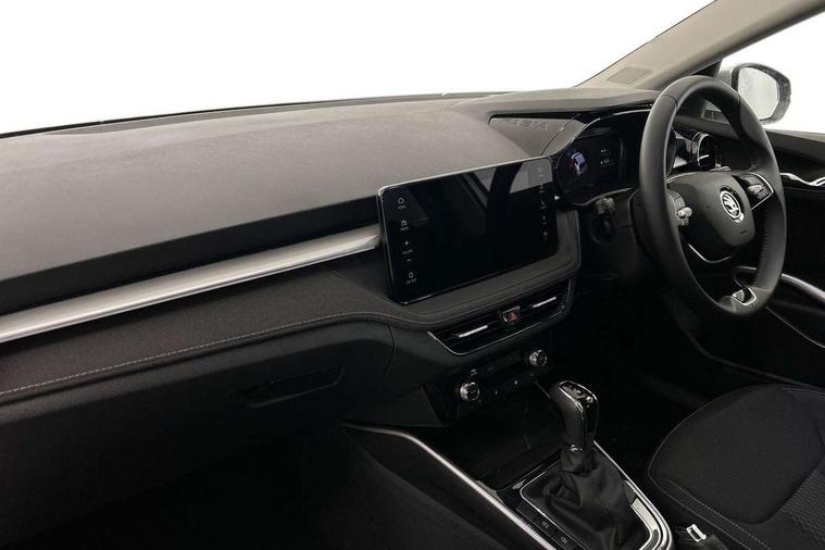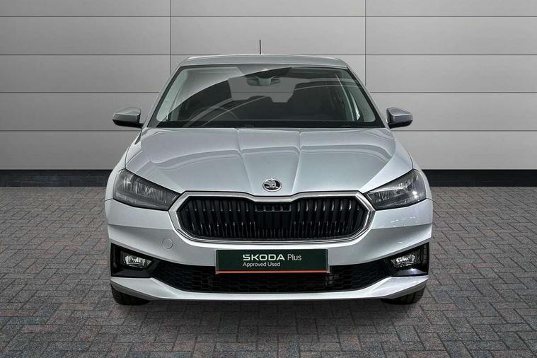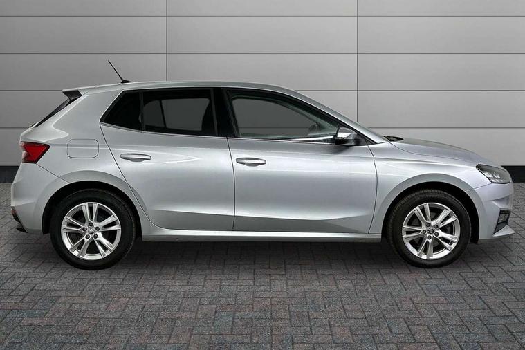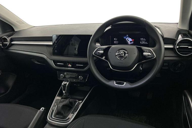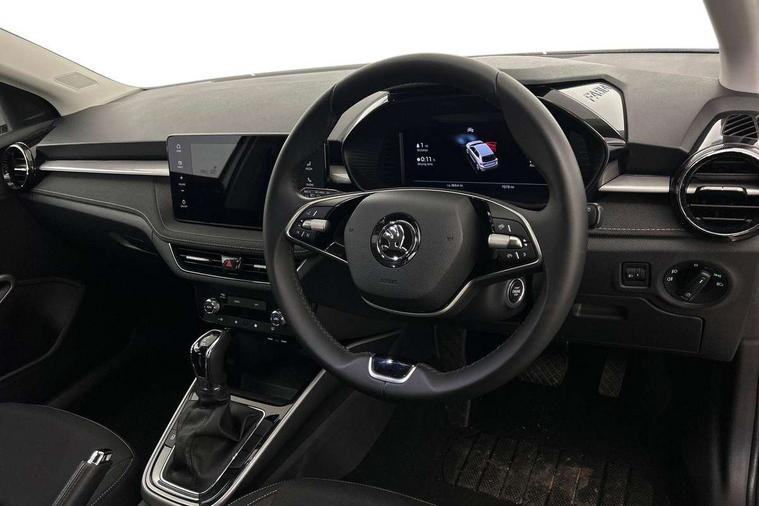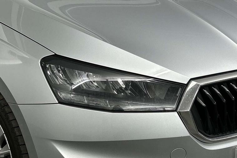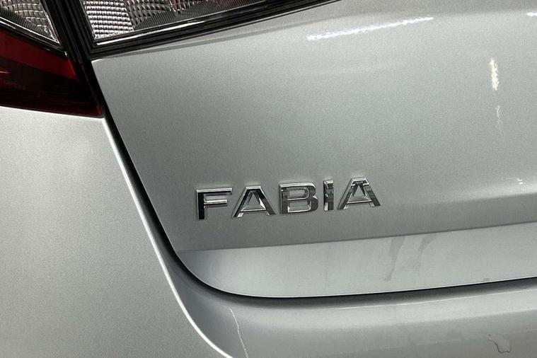 Advanced driver attention and drowsiness monitor, Bluetooth connection, Electromechanical power steering, Exterior temperature gauge, Service interval indicator, Traffic sign recognition, Virtual cockpit with 10.25" colour display, Wireless SmartLink for Apple CarPlay and Android Auto, 6 Speakers (4 in front and 2 in rear), 9.2" colour display skoda navigation system with voice control and web radio, Auxiliary socket for external MP3 player, DAB digital radio reception, Auto dimming rear view mirror, Body colour door mirrors, Body coloured bumpers, Chrome window surround, Door mirror integrated indicators, Front and rear electric windows, Front window wiper intermittent control, Headlight range control - Automatic, Ice scraper in fuel cap, LED daytime running lights with coming and leaving home feature, LED rear lights, Privacy glass, Rear LED fog light, Rear side wing doors, Rear window wiper with washing nozzles, Roof mounted spoiler, SKODA tailgate lettering in chrome, Third brake light, 2 reading lights in front and 2 reading lights in rear, 3 rear headrests, Backrest split and folding, Central console with removable cup holder and storage box, Chrome handbrake release button, Comfort seats, Door sills with fabia badging, Dual zone air conditioning with climatronic electronic control, Fabric upholstery, Front centre armrest, Gearshift knob/handle in leather, Hand brake lever handle in leather, Height adjustable front headrests, Height adjustable front seats, Height adjustable steering wheel, ISOFIX and TopTether anchorage points to the outer rear seats, ISOFIX and TopTether on the front passenger seat, Luggage compartment lighting, Manually adjustable lumbar support in front seats, Metallic grey interior door handles, Pollen filter, Rear seat bench unsplit, Single front passenger seat, Storm grey headlining, Sun visors with mirror and airbag label on passenger side, Textile floor mats, Ticket holder, Umbrella in drivers door, 3-point height adjustable front seats belts with pretensioner and force limiter, Automatic warning lights in case of crash, Driver and passengers airbag with switch off function, e-Call+, ESC including ABS, MSR, ASR, EDS, HBA and XDS, Front and rear seat belt warning, FRONT ASSIST (AEB City and AEB Inter Urban), Front side airbags, Head airbags, Hill hold control, One tone horn, Pedestrian protection, Three rear 3-points safety seat belts with pretensioner and force limiter including stop function for outer rear seat belts, Tyre pressure monitoring system, Anti-theft alarm system including immobiliser, interior monitoring, backup horn, and towing protection, Central locking with radio remote control, interior controls, SAFE function and 2 foldable keys, Chrome edged air vents, Metallic grey central console cover, Metallic grey upper decorative trim, Satin black door and side trim panel in front, Textile microsuede grey lower decorative trim with art grey stitching, Anti-theft wheel bolts protection, Super-low rolling resistance tyres,