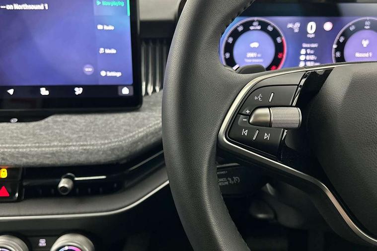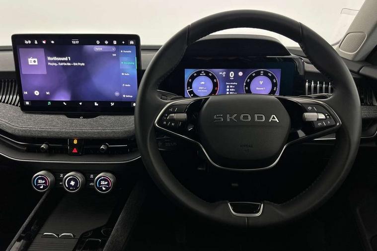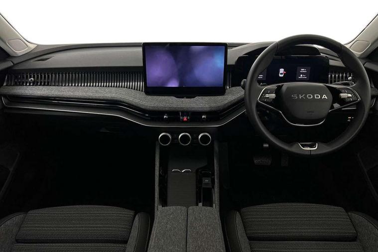 13" touchscreen display with satellite navigation, 4x USB-C ports (2x in front centre console and 2x in rear) (45W), Adaptive cruise control with speed assist, lane assist plus and traffic tram assist, Blind spot detection with door exit warning, Bluetooth system, CareConnect and Emergency Call, ChatGPT functionality, Driver fatigue sensor, Front assist with extended predictive pedestrian protection, Front cross traffic assist, PAS, Quick start all heating software functionality, Stop/start engine system, Traffic sign recognition, Turn assist with evasive assistance, Virtual Cockpit - 10.25" digital display, Voice control system, Washer for rear camera, Wireless charging for one smartphone (15W) with cooling function, Wireless smartlink apple carplay, SmartLink+ android auto, 8 Speakers, DAB Digital radio, Display cleaner, FM radio connection, Web radio connection, Acoustic side windows and interior noise suppression, Backdrop lighting, Body colour door handles, Body coloured door mirrors, Chrome window surround, Dark chrome grille surround, Electrically adjustable, heated, folding and driver side auto-dimming door mirrors with integrated indicators and logo projection, Frameless auto-dimming rear view mirror with USB-C, Ice scraper in fuel tank cap, LED 3rd brake light, Light assist with High beam control, Light assistant (coming/leaving home/tunnel light), Privacy glass, Rear fog light (x1), Rear side wing doors, Unique dark chrome design logo on alloy wheels, Windscreen wipers with rain sensor, 12V socket 1x centre console 1x boot, 2x cargo elements in boot, 2x light in boot, 3 seat bench in 2nd row, 60:40 Split folding rear seats, Bottle holders in the front doors 1.5 litre bottle and rear 1.5 litre bottle, Cup holder in front with easy open mat, Front armrest with storage box, Front comfort seats, Heated front seats, Height adjustable driver and front passenger seats with 2-way electric tilt, 4-way pneumatic lumbar support, and extendable thigh support, Height adjustable front and rear head restraints, Height adjustable front passenger seat, Illuminated glovebox, Interior lights with control switches, Isofix child seat fittings in outer rear and front passenger seats, LED front and rear reading lights, Massage function for front seats, Single front passenger seat, Skoda lettering on steering wheel, Storage compartment with cover, Storage pockets on back of front seats, Sun visors with illuminated vanity mirrors, Ticket holder on A Pillar, Tri zone climate control, Umbrella in driver's door, 3 rear seatbelts, 8 Airbags - Front driver and passenger, front side driver and passenger, centre, curtain front and rear, drivers knee, Crew protect assist, Driver and passenger seatbelts with warning light, Electronic parking brake, ESC including ABS, EBV, MSR, ASR, EDS, HBA, DSR, RBS, CBC, multi-collision brake (MKB) and Auto hold, Hill hold assist, Power operated child lock in rear doors, Alarm with interior monitoring tilt sensor and back up horn, Backrest remote release from trunk, Electronic engine immobiliser, Keyless start/stop, Remote central locking with SAFE system, Third key, Decorative front door sills,