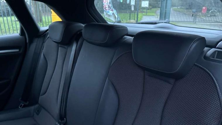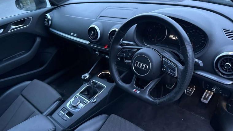Audi drive select, Audi smartphone interface, Automatic start/stop system, Colour driver's information system display, Electro - mechanical power assisted steering, Mobile telephone preparation - bluetooth interface, SD card based MMI navigation, Service interval indicator, Speed limit display, Voice control system, Voice recognition for navigation system, Diesel particulate filter, Sports suspension, 2 USB interfaces and Aux-In jack, Audi music interface, CD player, DAB Digital radio, MMI radio plus with 7" colour MMI screen and MMI controller, Online entertainment, Aluminium window trim, Auto dimming interior rear view mirror, Body colour door mirrors, Chrome exhaust tailpipes, Electric front windows, Electric rear windows, Electrically adjustable and heated door mirrors with integrated LED side indicators, Heated windscreen washer jets, LED daytime running lights, Light and rain sensors, Matt black radiator grille, Rear wiper, S line badges on front wings, S Line body styling with front & rear bumpers and side skirts, radiator grille and rear diffuser insert, roof spoiler, Sport specific side air inlet grille and diffuser insert, 3 adjustable rear headrests, 3 spoke flat bottomed multi-function leather sport steering wheel, 60/40 split folding rear seat, Adjustable front centre armrest, Black cloth headlining, Dual zone electronic climate control, Front and rear interior lights with delay, Front/rear floor mats, Height and reach adjustable steering wheel, Illuminated door sill trims with S logo, Isofix child seat preparation for front passenger/outer rear seats inc passenger airbag deactivation including top tether, Lashing point in luggage compartment, Manual height adjustable front seats, Stainless steel pedals, Storage compartments in doors side trims, centre console and under front drivers seat, LED interior light pack - A3/RS3, Non smoking pack - A3, Storage and luggage pack - A3/RS3, 3 point seatbelts on all seats, ABS/EBD, Active bonnet, Active front headrests, Airbags - front driver/passenger, front & rear side, curtain, drivers knee, ASR, EDL, Electromechanical parking brake, ESC - Electronic Stability Control + traction control, Front passenger airbag deactivation, Hill hold assist, Manual rear child locks, Multi-Collision braking, Seatbelt warning, Tyre pressure warning, Warning triangle and first aid kit, Anti theft alarm, Anti-theft wheel bolts, Remote control central locking, Thatcham category 1 alarm + immobiliser, Aluminium air vent surrounds, Aluminium trim elements, Matt brushed aluminium inlays, Tool kit, Tyre repair kit,