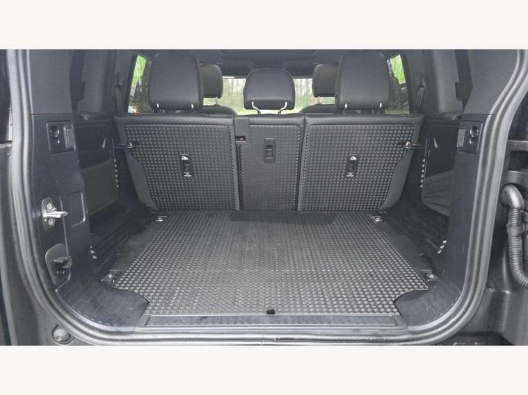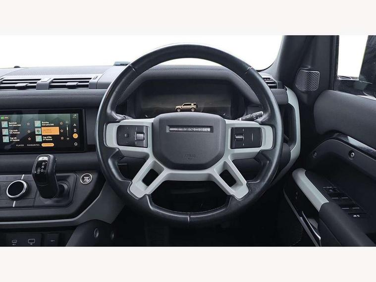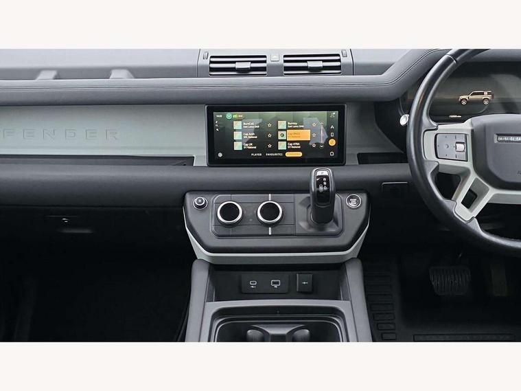 360 degree parking aid, 3D Surround Camera with 360 View, 180 Rear View, Front Traffic Detection, Forward Vehicle Guidance, Tow Hitch Assist and clear sight Ground View, Adaptive cruise control, Android Auto, Apple CarPlay, Assisted tailgate with soft close, Bluetooth system, Brake pad wear indicator, Connected navigation pro, Driver condition monitor, Electric power assisted steering (EPAS), Lane keep assist, Push button start, Traffic sign recognition with adaptive speed limiter, Trip computer, Wade Sensing, 8 speed automatic transmission, All wheel drive system, Twin speed transfer box, DAB Radio (Digital Audio Broadcasting), Meridian 400w sound audio system with 11 speakers and subwoofer, Pivi pro connected, Auto high beam assist, Automatic headlight levelling, Automatic headlights, Centre high mounted stop light, Electric heated/power fold door mirrors with approach lights and auto dimming driver side, Electric windows with one touch open/close and anti-trap, Follow me home lighting, Front fog lights, Heated rear window with timer, Heated windscreen, LED tail lights, Premium LED headlights with signature DRL, Privacy glass, Puddle lights, Rain sensing windscreen wipers, Rear fog lights, Rear side wing doors, Rear wiper, Side hinged tailgate, Trailer stability assist, X-Dynamic badge, 12V power socket in loadspace, 3 seat bench in 2nd row, Alpine lights, Durable rubber cabin flooring, Durable rubber loadspace flooring, Footwell lights, Front head restraints, Loadspace cover, Loadspace Hook, Multifunction steering wheel, Overhead stowage for sunglasses, Rear headrests, Rear ISOFIX, Rear reading lights, Single front passenger seat, Standard seat configuration, Storage glovebox, Sunvisors with illuminated vanity mirrors, Online pack with data plan - Defender, 5 x 3 point seatbelts, ABS, Brake hold function, Cornering brake control (CBC), Customer configurable autolock, DSC - Dynamic Stability Control, EBD - Electronic brakeforce distribution, Electric parking brake (EPB), Emergency brake assist, Emergency braking, ESP + traction control, Front airbags with passenger seat occupant detector, HDC - Hill descent control, Hill launch assist, Low traction launch, Power operated child locks, Remote for (e-Call, Optimised assistance call, InControl app, Climate, beep and flash and door), RSC - Roll stability control, Seat belt reminder, TPMS (Tyre pressure monitoring system), Alarm, Immobiliser, Intrusion sensor, Keyless entry, Locking wheel nuts,