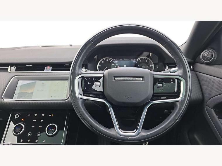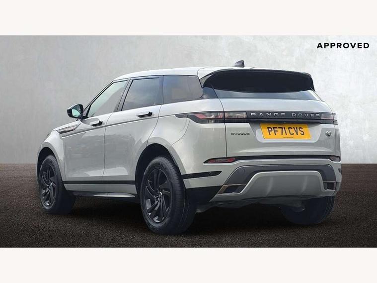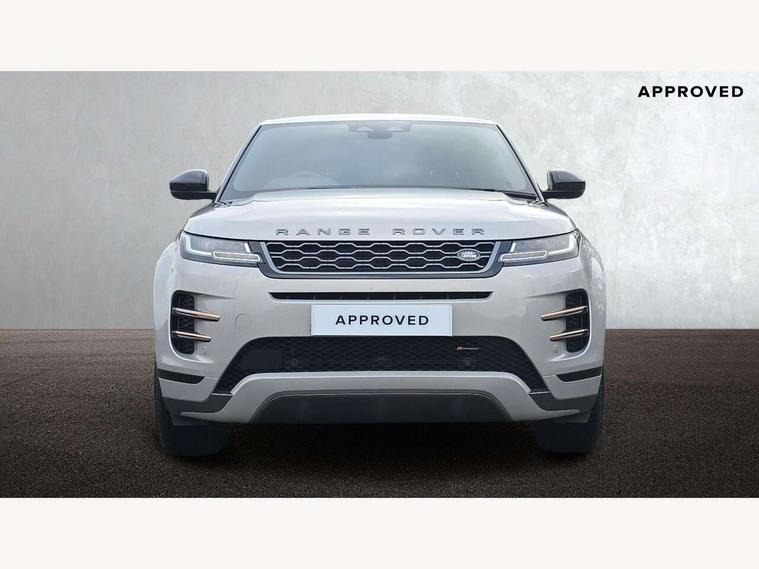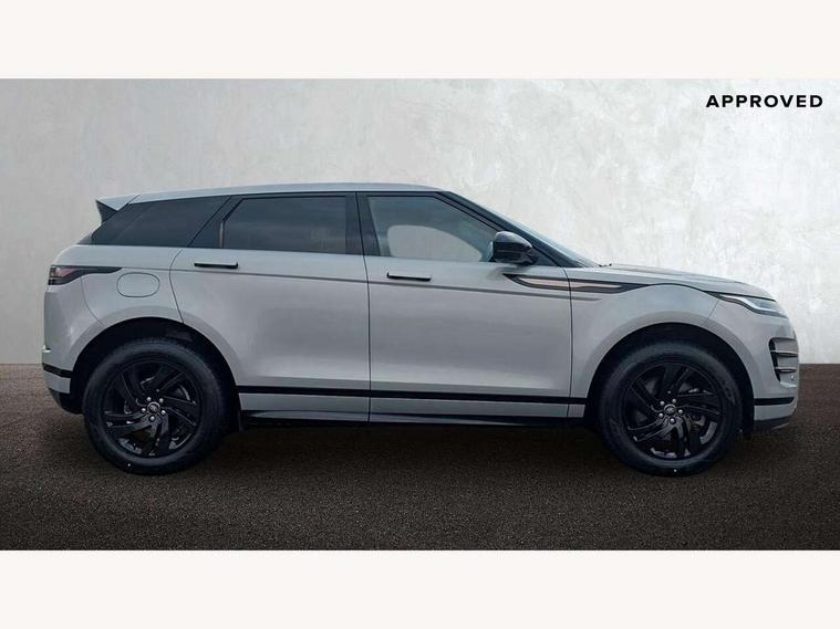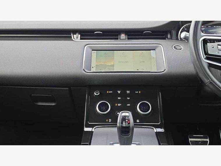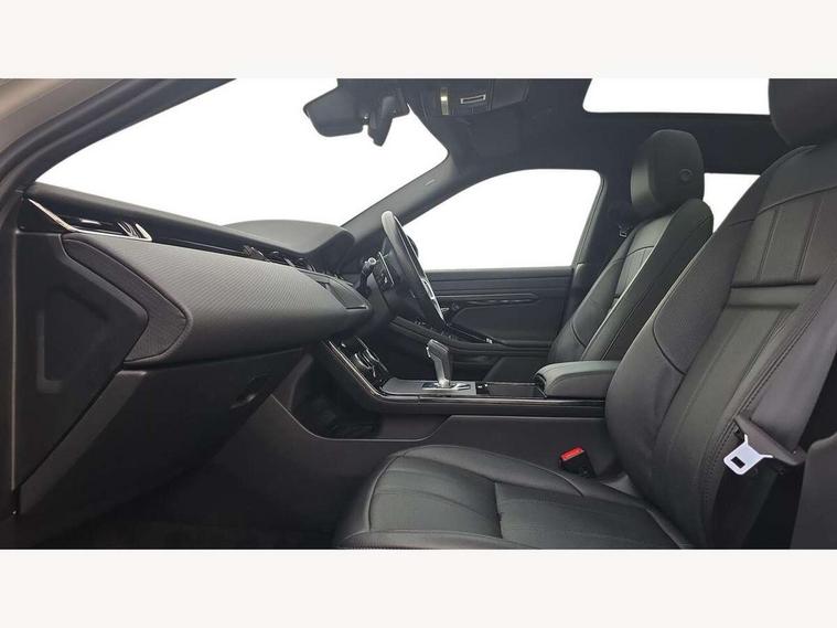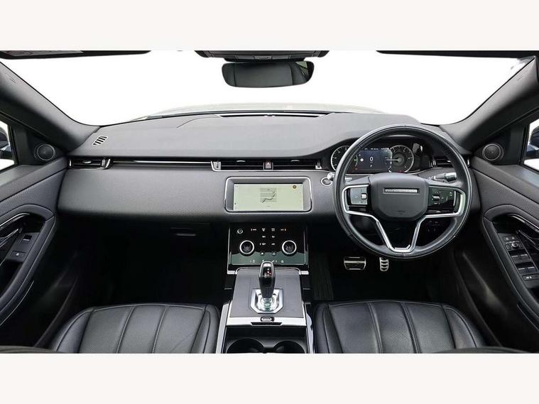 Android Auto, Apple car play, Bluetooth connectivity, Brake pad wear indicator warning light, Cruise control + speed limiter, Driver condition monitor, eCall emergency system, Electronic power assisted steering (EPAS), Front and rear parking aid, InControl remote, Land Rover InControl apps, Lane keep assist, Pivi pro connected includes upgraded infotainment, connected navigation pro, Nuance speech licence, Push button starter, Traffic sign recognition with adaptive speed limiter, Voice control system, All terrain progress control, Efficient Driveline, Passive suspension, Terrain Response 2 Auto, Digital Audio Broadcast radio-DAB, Steering wheel mounted controls, Auto headlights, Daytime running lights, Electric windows with one touch open/close and anti trap, Evoque and R-Dynamic badge, Flush deployable exterior door handles, Heated rear window with timer, Heated washer jets, Heated windscreen, Power fold, auto-dimming, heated door mirrors with approach lights and auto dimming driver side, Rain sensing windscreen wipers, Rear fog lights, Rear side wing doors, Rear wiper, Tailgate spoiler, Third brake light, 40:20:40 split folding rear seats with centre headrest and armrest, Ambient interior lighting, Bright metal pedals, Isofix system on outer rear seats, Overhead lighting console, Overhead stowage for sunglasses, Passive front head restraints, Rear air vents, Rear centre headrest, Rear head restraints, Satin chrome gearshift paddles, Single passenger seat, Sunvisors with illuminated vanity mirrors, Twin sliding front centre armrest, 3 rear 3 point seatbelts, Anti-lock braking system (ABS), Customer configurable autolock, DSC - Dynamic Stability Control, Electronic brake force distribution, Electronic parking brake, Electronic traction control, Emergency braking, Front and rear seatbelt reminder, Hill descent control, Hill launch assist, Low traction launch, Power operated child locks, Roll stability control, Six airbags - Driver and passenger airbags/driver knee airbag/front side airbag and curtain airbags, Torque vectoring brake, Tyre pressure monitoring system, Alarm, Immobiliser, Intrusion sensor, Locking wheel nuts,