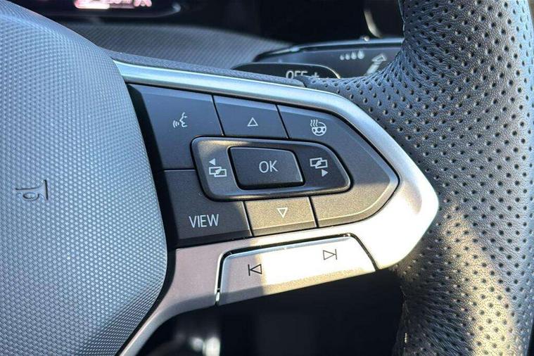 Activated carbon canister, Adaptive cruise control (ACC), Advanced driver attention and drowsiness monitor, Dynamic road sign display, Dynamic steering, E-Sim card for online connectivity, eCall emergency call system, Multi-color Digital cockpit pro, selection of different info profile possible, Multifunction front facing camera for distance control, Navigation system, Oncoming vehicle braking when turning including swerve support, Speed limiter, Speedo, rev counter, electronic odometer, trip, service interval display, exterior temperature and fuel gauge, Traffic jam assist, Voice enhancer and voice control, Warning signal and warning light for front and rear seatbelts not fastened, We connect plus preparation, We connect preparation, Wireless app connect, Hybrid propulsion system, Petrol Particulate Filter, Start-stop system with battery regeneration (recuperation - energy recovery during braking), XDS electronic differential lock for improved traction and handling, 2 USB C ports in front, 2 USB charging sockets on the centre console in the rear charging capacity upto 45W, Digital radio reception (DAB), Diversity antenna for FM reception, Gaming platform via car app, Infotainment system with 12.9" display, Mobile phone interface with inductive charging feature, 3rd brake light, Automatic headlamp activation with Coming home and Leaving home feature, Body colored bumpers in R-Line style, Body colour door handles, Exterior mirrors convex on the left and aspherical on the right, Front and rear electric windows, Heat insulating windshield made of laminated glass, LED separate daytime running light, Rear exhaust tailpipe, Rear fog light on one side and reversing lights on both sides, Rear side wing doors, Rear windscreen washer and wiper with interval delay, Remote electrically foldable door mirrors, puddle lights and reverse activated passenger's door mirror, Welcome light with surround lighting, 12V socket in front centre console, 12V socket in luggage compartment, 3 rear head restraints, 3 seat bench in 2nd row, Ambient lighting with 30 colour including LED light unit in front footwell with selectable light colour, Black roof lining, Brushed stainless steel pedals, Chrome plated radiator grille inserts, air vent surrounds and light switch surrounds, Door insert, side trim panel and arm support in leatherette, Front + rear black carpet mats, Front centre armrest, Front seat lumbar support adjuster, Integrated front head restraints, ISOFIX anchors for child seats on outer rear bench seats and on front passanger seat compatible for i-Size, Luggage compartment lighting, Manual height adjustable front passenger seat, Manually height adjustable driver seat, Plastic gear knob, Premium sports seats in front, Rear cupholder and loadthough, Sardegna cloth upholstery with front and outer rear seats Art Velour inner sides of bolsters, Single front passenger seat, Split folding backrest with centre armrest and unsplit rear seat bench, Sun visors with illuminated vanity mirrors, Titanium black instrument panel, 3 point height adj front seatbelts + pretensioners, 3 rear three point seatbelts, ABS, Autonomous emergency braking front assist with pedestrian and cyclist monitoring, Child locks on rear doors, Driver and front passenger airbag with front passenger airbag deactivation, Electronic parking brake with auto hold, ESC (Electronic Stability Control), Extended pedestrian protection measures, Hill start assist, Rear disc brakes, Two tone horn, Tyre pressure loss indicator, Volkswagen roadside assistance, Anti theft wheel bolts, Preparation for alcohol interlock, Decorative inserts carbon grey for dashboard and front door trim panels, Tool kit for tyre mobility set, Tyre mobility kit Includes 12V compressor and tyre sealant,