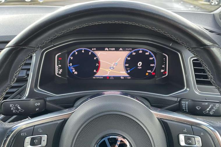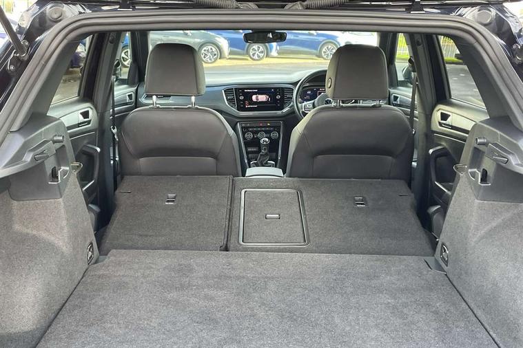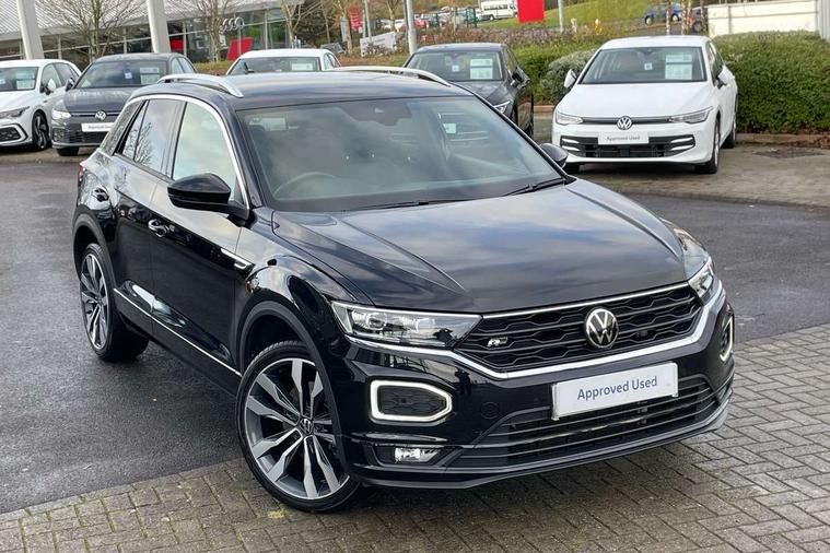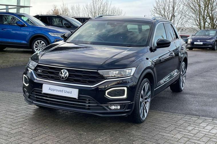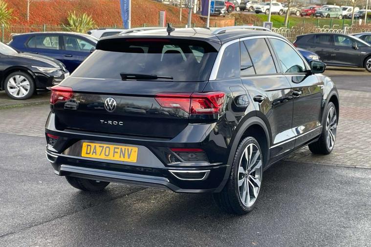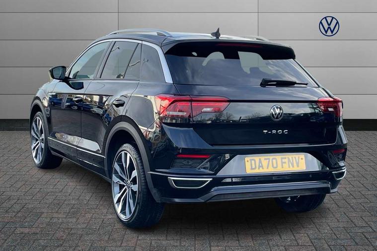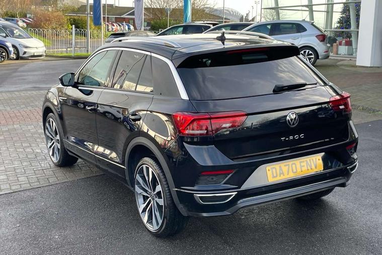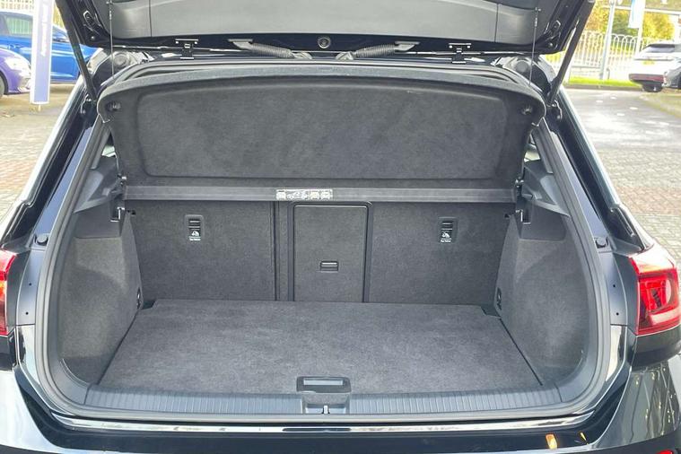 'Lights On' Reminder warning buzzer, Adaptive cruise control with front assist, radar sensor controlled distance monitoring, city emergency braking, Automatic start/stop system, Bluetooth telephone and audio connection for compatible devices, Car information display, Digital Cockpit Pro - Active info display, Discover navigation including 8" touch screen display, streaming and internet, Driver alert system with audible and visual fatigue detection system, Driver tips and journey analysis, Lane assist with warning text instrument cluster, Modified key software - reduce switch off time for key status change to Long no motion, Multifunction computer with visual gear change recommendation for fuel consumption, Service interval indicator, Think blue trainer driver tips and journey analysis, Voice activation, Wireless app connect for apple carPlay, Battery regeneration during braking, Centre arm rest including USB type C interface and USB charging socket, DAB Digital radio, Diversity antenna for FM reception, Front USB type C Interface 2X and USB charging socket, Music playback - MP3, WMA and AAC files, Premium USB cable in choice of either Apple or Android smartphone compatibility, SD card slot, Simultaneous pairing of 2 compatible mobile devices, SMS functionality - read, compose and send SMS messages using touch-screen display, Storage compartment with longitudinal and height adjustable in armrest and two rear air vents, Three route options - Fast, Short, Eco, Title and cover art display, Auto dimming interior rear view mirror, Automatic hazard lights activation under emergency braking, Black grained lower door protectors, Body colour door handles, Body colour rear roof spoiler, Chrome effect left and right trapezoid exhaust tailpipe fascia surround, Chrome trim on upper and lower radiator grille, Dusk sensor, Electrically foldable, adjustable and heated door mirrors with puddle lights and reverse activated kerb-view adjustment on passenger's door mirror, Front and rear electric windows, Front fog lights with static cornering function, Front windscreen wiper with intermittent wipe and 4 position delay, Fully galvanised body, Heated rear window, High level 3rd brake light, LED darkened rear light clusters, LED dipped and main beam headlights with automatic range adjustment including signature LED daytime running lights, LED rear number plate lights, Manual coming/automatic leaving home lighting function, Rain sensor, Rear tinted glass from B-pillar backwards approx 65% tinted, Rear wash/wipe with intermittent wipe setting, Volkswagen roundel, 2 Front and rear reading lights incorporating LED technology, 3 rear head restraints, 4 load lashing points in luggage compartment, Aluminium pedals, Ambient lighting in front footwell and light strips below trim in front doors, Black roof lining and sun visors, Branded points of interest, Carbon flag cloth upholstery, Climate control - 2 zone electronic air conditioning with automatic air recirculation and allergy filter, Drawer under drivers seat, Front + rear carpet mats, Front cupholders x 2, Front seat back storage pockets, Front sports seats with R-Line logo on seat backrest, Glovebox, Height adjustable front seats, Height/reach adjust steering wheel, Illuminated vanity mirrors, Instrument lighting, white adjustable panel illumination, Interior light delay, Isofix easy fit child seat preparation for 2 outer rear seats, Load through provision with single cup holder when folded down, Luggage compartment cover, removable, Luggage compartment lighting, R Line badge, Split folding rear seat backrests with centre armrest, Storage compartment in left and right luggage area, Storage compartment in rear doors, Storage compartments in driver and front passenger doors, Three spoke multi-function leather trimmed steering wheel and gearknob, Unique R Line door sill protectors, R line styling pack - T-Roc, Winter pack - T-Roc, 3 rear three point seatbelts, ABS, Curtain airbags, Driver and front passenger safety-optimised head restraints, Drivers and front passengers airbags with passengers deactivation switch, Drivers seatbelt reminder, Electronic parking brake with auto hold, Electronic stability control (ESC) includes ASR, EDL, EDTC and trailer stabilisation function, Front seat side impact airbags, Predictive pedestrian protection, Rigid safety cell with front and rear crumple zones, Three point height adjust front seatbelts + pretensioners, Tyre pressure loss indicator, Ventilated front and rear disc brakes, Volkswagen roadside assistance, Alarm with remote central locking and interior protection, Electronic engine immobiliser, Remote central locking with 2 remote folding keys, Shadow grey decorative inserts in dash and door panel, 19" Suzuka alloy wheels with low rolling resistance tyres and anti wheel bolts,