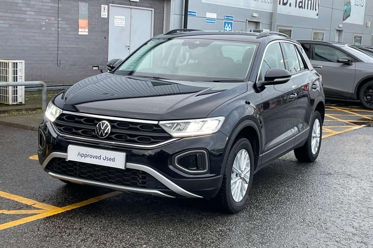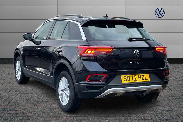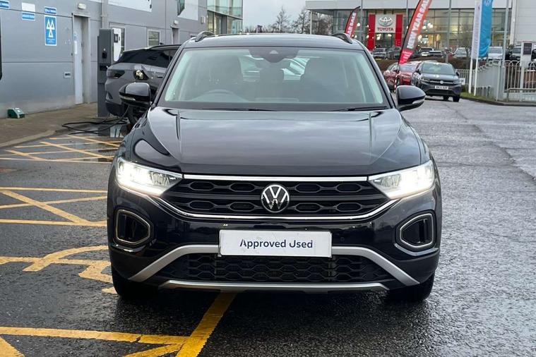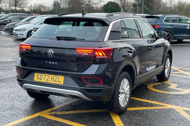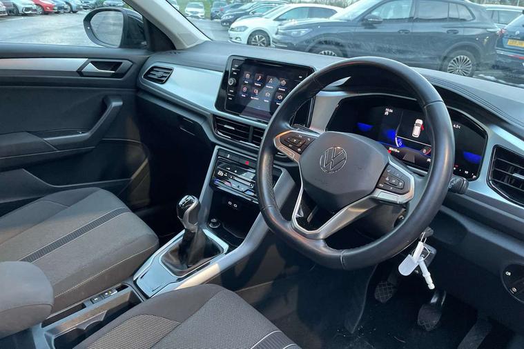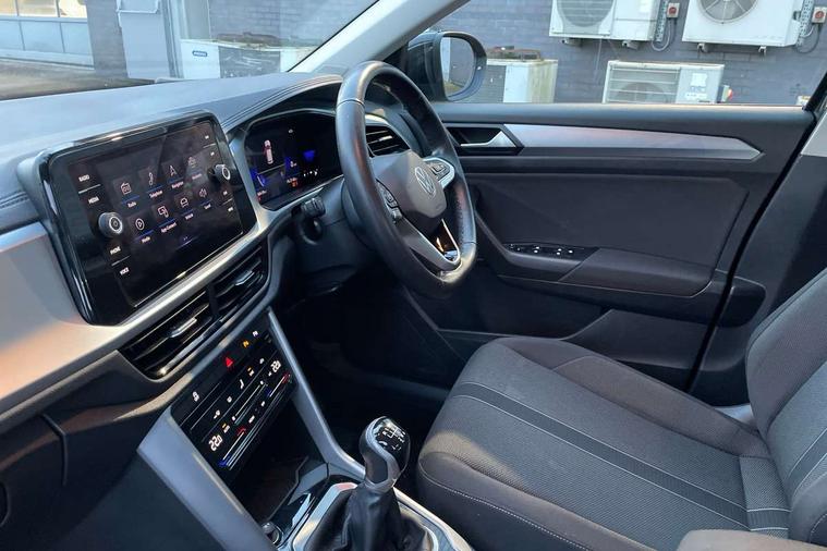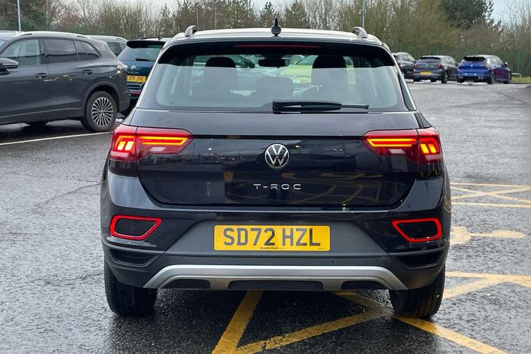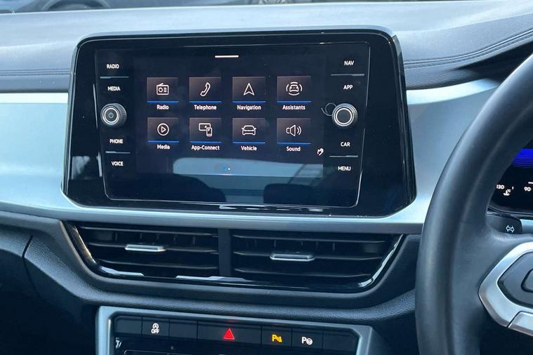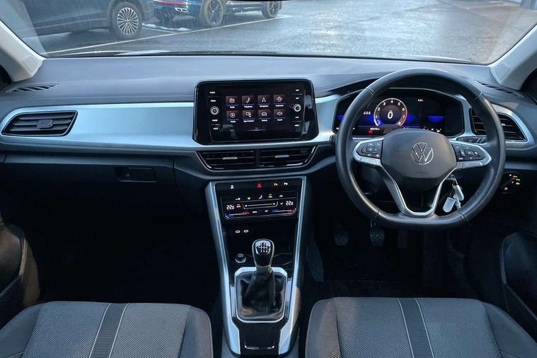 Bluetooth mobile phone interface, Driver alert system with fatigue detection, Driver tips and journey analysis, Emergency call service, Lane keeping system Lane Assist, Modified key software - reduce switch off time for key status change to Long no motion, Online services, Park assist including front and rear parking sensors, Power assisted speed sensitive steering, Service interval indicator, Tailgate/trunk lid release from outside, Think blue trainer driver tips and journey analysis, Warning sound and light for front seatbelts unfastened, Wireless app connect, Battery regeneration during braking, Front shock absorption, Rear shock absorption chassis with increased ride height, Start/stop function with battery regeneration, DAB Digital radio, Diversity antenna for FM reception, Front and rear 6 speakers, Music playback - MP3, WMA and AAC files, Premium USB cable in choice of either Apple or Android smartphone compatibility, SD card slot, Simultaneous pairing of 2 compatible mobile devices, Title and cover art display, We Connect and We Connect Plus functionality, 3rd brake light, Auto dimming interior rear view mirror, Automatic hazard lights activation under emergency braking, Automatic headlight control with LED separate daytime running lights with coming/leaving home function, Black roof rails, Body coloured bumpers and radiator grille with chrome trim and front fog lamps with chrome bezel, Body coloured exterior mirror housings and door handles, Extended roof spoiler, Exterior mirrors aspherical on driver side, convex on front passenger side, External USB type C socket and charging sockets, Front windscreen wiper with intermittent wipe and 4 position delay, Heated rear window, LED Headlights, LED rear combination lamps, LED rear number plate lights, LED tail lamp rear comination lamps, Power windows with comfort operation and circuit breaker, Rain sensor, Rear exhaust tailpipe, Rear fog light on one side and reversing lights on both sides, Rear side wing doors, Rear wash/wipe with intermittent wipe setting, Remote electrically foldable door mirrors, puddle lights and reverse activated passenger's door mirror, 12V power socket in centre console, 3 rear head restraints, 3 seat bench in 2nd row, 4 load lashing points in luggage compartment, Air care climatronic air conditoning system with active combination filter and 2-zone temperature control, Ambient lighting with mirror logo projection, Cloth upholstery, Door and side trim panel in cloth, Drawer under drivers seat, Driver/front passenger seat height adjustment, Front centre armrest, Front comfort sports seats, Front cupholders x 2, Front reading light, Instrument lighting, white adjustable panel illumination, Interior light delay, Isofix child seat preparation, Leather gearshift handle, Load-through provision with cup holder when folded down ('Unsplit rear seat bench, split folding backrest, with centre armrest), Luggage compartment lighting, Lumbar support for driver's and front passengers seat, Non-folding front passenger seat backrest, Single front passenger seat, Storage compartment in left and right luggage area, Storage compartment in rear doors, Storage compartments in driver and front passenger doors, Sunvisors with illuminated vanity mirrors, Variable boot floor, height adjustable and removable, Driver assistance pack without proactive passenger protection - T-Roc, 3 point height adj front seatbelts + pretensioners, 3 point seatbelts in outer rear with ECE label, ABS, Child locks on rear doors, Driver and front passenger airbag with front passenger airbag deactivation, Driver and front passenger safety-optimised head restraints, Drivers seatbelt reminder, Electronic parking brake, Electronic Stability Control (ESC) inc EDL (Electronic Differential Lock) and ASR (Traction Control), Front and rear passengers curtain airbag system including front side airbags, Front assist with city emergency braking and pedestrian monitoring, Front disc brakes, Front seat side impact airbags, Hill start assist, Predictive pedestrian protection, Rear disc brakes, Single tone horn, Tyre pressure loss indicator, Volkswagen roadside assistance, Alarm with interior protection, Anti-theft alarm system with interior monitoring, backup horn, and towing protection, Remote central locking with SAFELOCK, radio remote control with 2 remote control folding keys, Pewter matt decorative inserts for intrument panel, centre console and door panels at the front, Trims for alloy wheels,