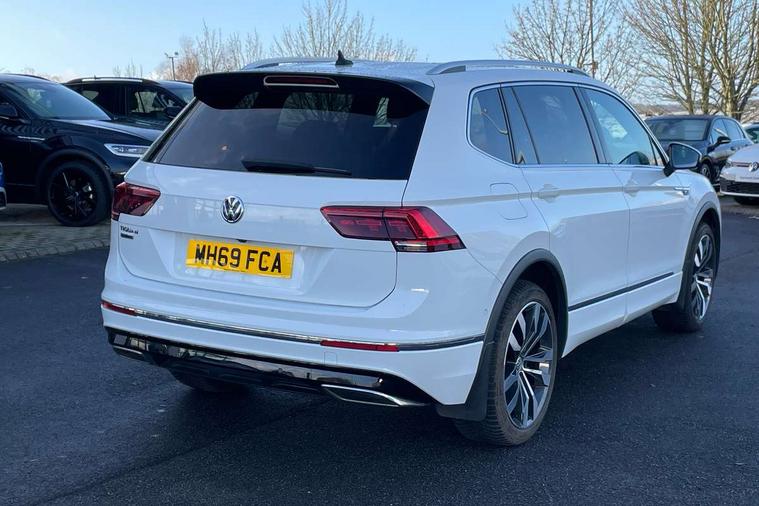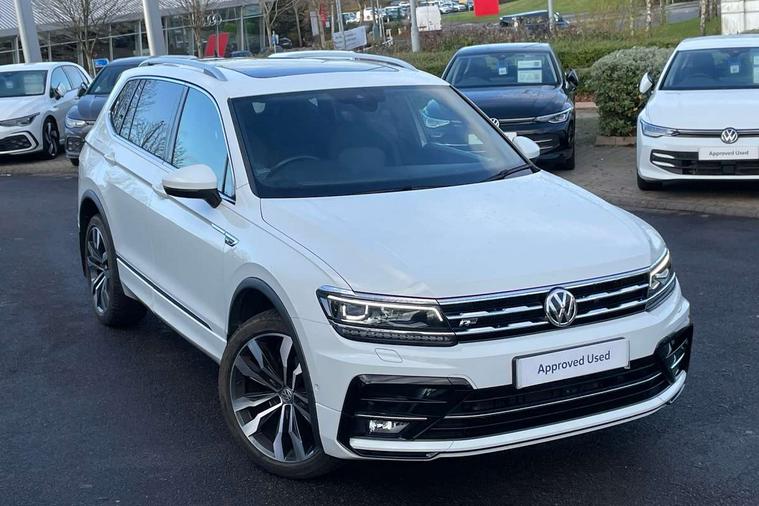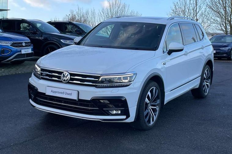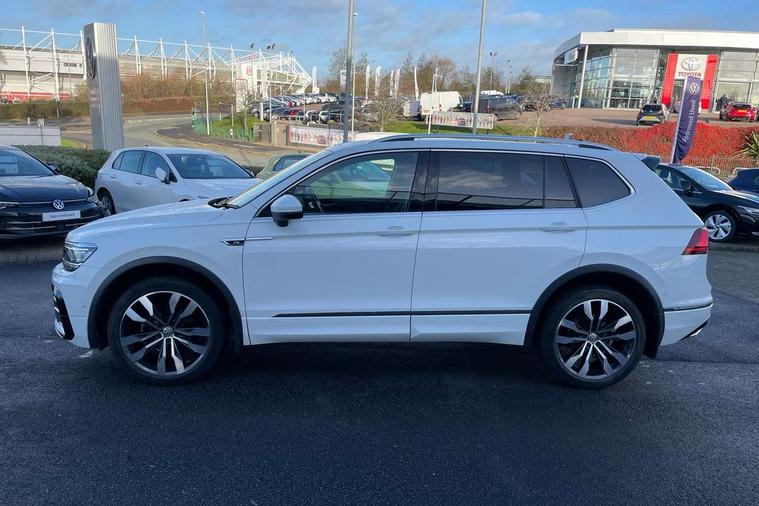 2D/3D map view, Active information display, Adaptive cruise control, App-Connect, Area view with park assist steering and front and rear parking sensors, Bluetooth phone integration system, Car information display, Driver alert system with fatigue detection, Driver profile selection, Electric operated opening and closing tailgate, Front assist, radar sensor controlled distance monitor, city emergency braking + predictive pedestrian protection, Instrument cluster, Lane assist, Lights on warning, Low washer fluid warning light, Outside temperature display, Progressive power assisted steering, Service interval indicator, Speed limiter, Start/Stop function, Warning sound and light for doors and tailgate open, Battery regeneration during braking, Sports suspension, 4 X 20 watt output, Aux-in socket, DAB Digital radio, Dynamic navigation based on TMC+, Music playback - MP3, WMA and AAC files, Premium USB cable in choice of either Apple or Android smartphone compatibility, SD card slot, Simultaneous pairing of 2 compatible mobile devices, SMS functionality - read, compose and send SMS messages using touch-screen display, Three route options - Fast, Short, Eco, Title and cover art display, USB connection, USB charging socket and volkswagen media control, 3D effect cherry red LED rear tail lights, Aluminium decorative inserts in dash and door panels, Auto dimming interior mirror, Automatic activation of hazard warning lights, Body colour door handles, Body colour door mirrors, Body colour roof spoiler, Chrome side window surrounds, Chrome trimmed radiator grille, Coming/leaving home lighting function, Dusk sensor + auto driving lights, Electric panoramic sunroof with sunblind, Electrically heated and foldable door mirrors, door mirror puddle lights and reverse activated kerb view adjustment on passenger's door mirror, Front and rear electric windows, Heated rear window, High level 3rd brake light, LED headlights with dynamic light assist daytime running lights and cornering front fog lights, LED rear number plate lights, Left and right chrome effect trapezoid dummy exhaust tailpipe surrounds, Piano black front air intake and rear diffuser, Rain sensor windscreen wipers, Rear tinted glass from B-pillar backwards approx 65% tinted, Rear windscreen washer and wiper with interval delay, Silver anodised roof rails, Unique R Line badging, Windscreen wipers/ intermittent wipe + 4 position delay, 12V socket in centre console storage area, 12V socket in luggage compartment, 12V socket on rear of front centre armrest, 2 cup holders in front, 2 head restraints in 3rd row, 2 individual 3rd row seats, 3 head restraints in 2nd row, 3 single seats foldable in 2nd row, 3 zone climate control, 4 load lashing points, 40:20:40 split folding rear bench seat, Bag hook in luggage compartment, Black headlining, Foldable front passenger seat backrest, Front + rear carpet mats, Front centre armrest with storage compartment, longitudinal and height adjustable and two rear air vents, Front seat back storage pockets, Front seatback folding tables, Front sports seats with R-Line logo on seat backrest, Height/reach adjust steering wheel, Illuminated driver/passenger vanity mirrors, Illuminated scuff plates, Instrument lighting white adjustable panel illumination, Interior light with delay, Isofix Preparation 2 Rear child seats, Leather gear knob, Leather trimmed three spoke multifunction steering wheel with aluminium inserts and paddle shift, Load through provision with 2 cupholders when folded, Lockable cooled glovebox, Luggage compartment lighting, Luggage compartment side storage, Passenger seat height adjuster, Rear cupholders, Removable luggage cover, Sliding/reclining rear seats, Split folding rear bench seat, Stainless steel pedals, Storage compartment in drivers and front passengers door, Storage compartment in rear doors, Storage tray on dashboard, Sunglasses storage, Unique R Line door sill protectors, Variable boot floor, height adjustable and removable, Ambient lighting pack - Tiguan Allspace R Line Tech, R Line styling pack - Tiguan Allspace, 3 point seatbelts on all seats, ABS+EBD+Brake assist, Active bonnet, Active pedestrian safety system, Curtain airbags, Driver/Front Passenger airbags, Driver/Passenger whiplash optimised head restraints, Drivers knee airbag, Electronic parking brake with auto hold, ESC with EDL, ASR, EDTC and trailer stabilisation function, First aid kit, Front seat side impact airbags, Front side airbags, Front ventilated disc brakes and rear disc brakes, Head airbag system, Height adjustable front 3 point seatbelts + pretensioners, Hill hold control, Passenger airbag deactivate switch, Passenger knee airbag, Pre crash system, Rear side airbags, Rigid safety cell with front and rear crumple zones, Seatbelt warning lamp and buzzer, Two tone horn, Volkswagen roadside assistance, Warning sound and light for front seat belts if unfastened, Warning triangle, Alarm with interior protection, Electronic engine immobiliser, Keyless entry system including start/stop button on centre console, Remote central locking with 2 remote folding keys, Chrome door trim inserts, Piano black interior trim, 20" Suzuka alloy wheels with mobility self sealing tyres + anti theft wheel bolts, Steel space saver spare wheel,