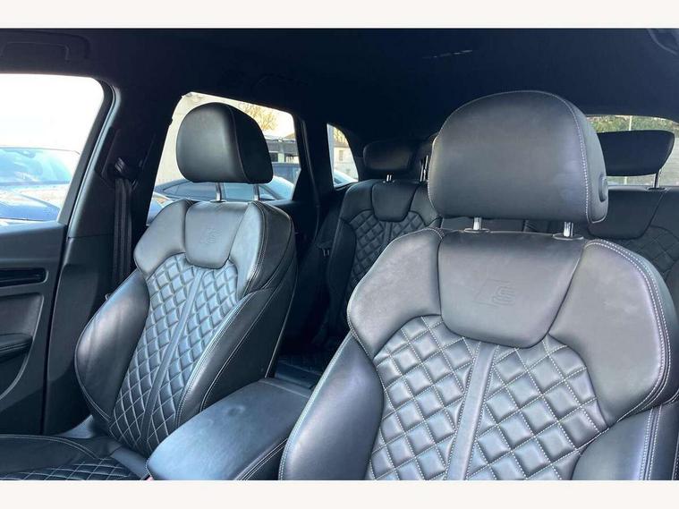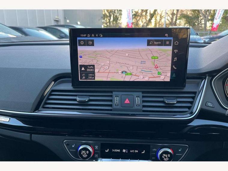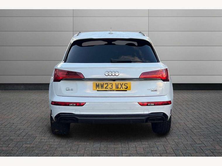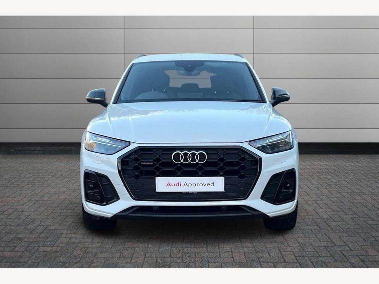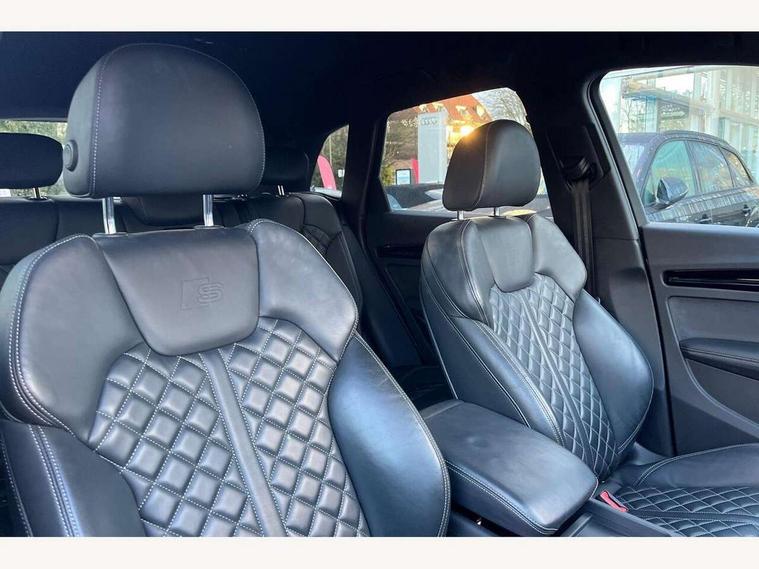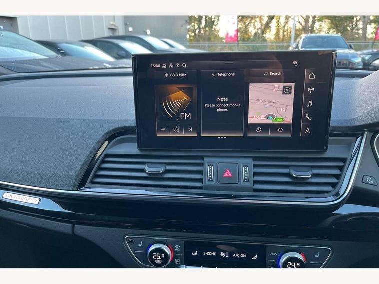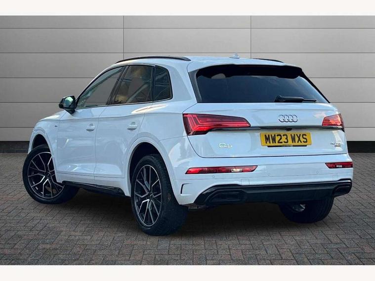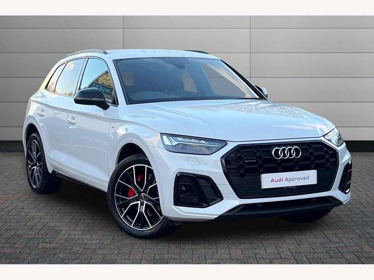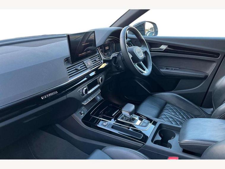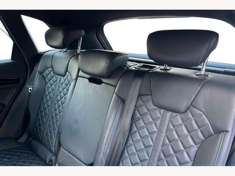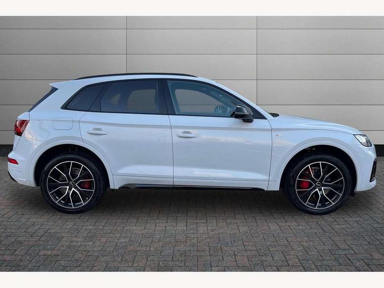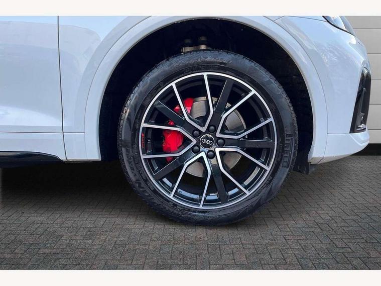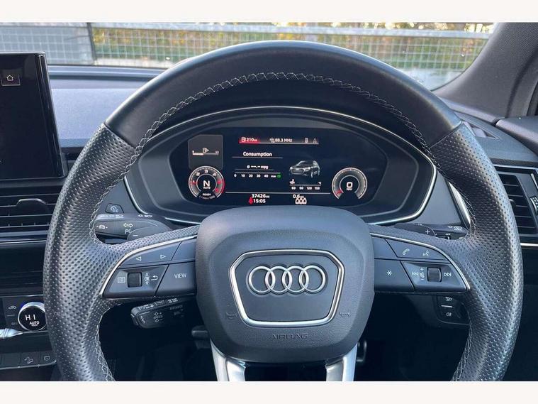 Acoustic front and rear parking sensor, Audi connect safety and service (e-call), Audi connect with Amazon Alexa Integration, Audi drive select, Audi virtual cockpit plus with 12.3" screen and three different layout designs, Audi wireless smartphone interface, Automatic start-stop system with coasting functionality and efficiency programme, Bluetooth interface, Electro - mechanical power assisted steering, MMI navigation plus with 10.1" touch screen, Power tailgate, Reversing camera, Service interval indicator, Voice control system with Audi hotword activation "Hey Audi", Diesel particulate filter, Quattro on demand, S line sports suspension, 8 loudspeakers, DAB Digital radio, Acoustic windscreen, Audi matrix LED headlights with dynamic front and rear indicators, Audi rings at front and rear in black, Audi rings decal on rear doors, Auto dimming door mirrors, Auto dimming frameless rear view mirror, Automatic headlight adjustment, Automatic headlights and windscreen wipers, Black roof rails, Body colour bumpers, Body colour underbody protection, Chrome plated exhaust trims, Daytime running lights, Door sills in Selenite silver, Electric adjustable/heated/folding door mirrors, Front air inlet surrounds in anthracite black, Front and rear electric windows, Headlight washers, High gloss black B pillar trims and triangular rear door trim, High level LED brake light, Rear chrome trim strip below lights, Rear privacy glass and rear side windows, Rear side wing doors, Rear wiper, Roof bars, S Line rear spoiler, 2 x USB charging port with aux input socket, 3 rear headrests, 4 way electric lumbar support for driver and front passenger, 40:20:40 split folding 3 rear bench seat in 2nd row with rear centre armrest, Black cloth headlining, Comfort front centre armrest, Contrast stitching on seats, steering wheel and gear lever gaiter, Deluxe 3 zone electronic climate control, Electrically adjustable front seats, Fine Nappa leather upholstery with diamond pattern contrast stitching + front sport seats with S embossed logo, Front/rear floor mats, Gear lever in black leather, Heated front seats, Height adjustable front head restraints, Height/reach adjustable steering column, Illuminated door sill trims with S logo, Luggage compartment cover, Rear seat bench plus-adjust for forwards/backwards position/backrest angle, cupholders in the armrest, load through hatch and remote backrest release, Removable luggage compartment floor, Single front passenger seat, Stainless steel pedals, Sunvisors with vanity mirrors, Black styling package - Q5 Edition 1, Extended interior upholstery pack - Q5, Extended LED Interior multi coloured Lighting Pack - Q5, 3 point seatbelts on all seats, 6 airbags - Driver, front passenger, curtain and side airbags, Electrically operated child locks on rear doors, Electromechanical parking brake, Electronic stabilisation control including ABS, ASR and EDL, First aid kit with warning triangle and vests, Front and rear brake calipers painted in red, Front passenger airbag deactivation, Hill descent control, Hill hold assist, ISOFIX child seat mounting for front passenger seat and ISOFIX child seat mounting with Top Tether for outer rear seats, Multi collision brake assist, Pop-up bonnet for pedestrian protection, Pre sense city, Seat belt force limiter, Seatbelt monitoring, Tyre pressure warning, Anti theft alarm, Anti-theft wheel bolts, Keyless Go access/ignition system, Remote central locking, Air vents inserts and centre console in gloss black, Piano black finish inlay,
