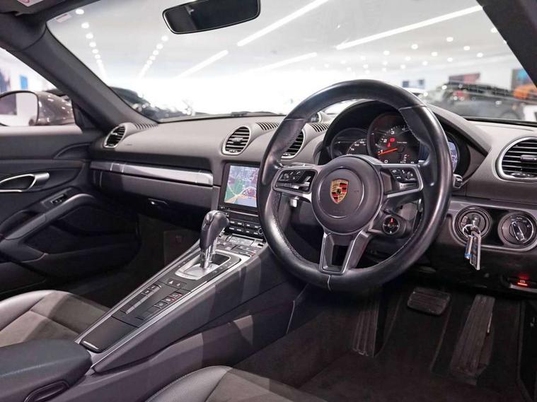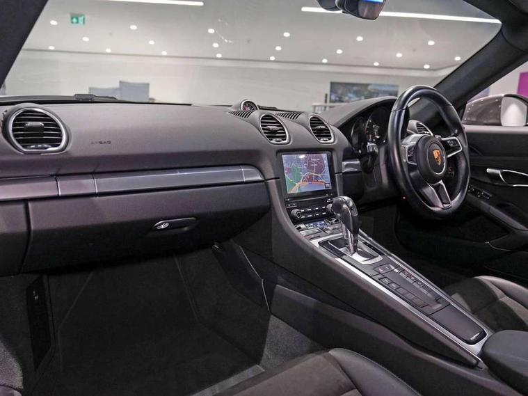 Digital displays for vehicle speed, chosen gear, odometer, trip odometer and clock, Instrument cluster with central rev counter and high-resolution 4.6 inch colour display, Porsche Communication Management (PCM) including online navigation module, mobile phone preparation, audio interfaces and voice control system, 4 valves per cylinder, Aluminium block and cylinder heads, Direct fuel injection (DFI), Gasoline particulate filter, Integrated dry-sump lubrication with an on-demand oil pump, Porsche Doppelkupplung (PDK), Porsche Stability Management (PSM) with ABS, advanced brake functions, Rear wheel drive, Turbocharger with intercooler, Two seater vehicle with mid mounted engine, Two three-way catalytic converters and on-board diagnostics for monitoring emission control system, VarioCam Plus variable valve timing and switchable valve lift, Water cooled with thermal management, DAB Digital radio, Integrated 4G/LTE compatible SIM including data for the Porsche Connect Services, Integrated compatible SIM including Porsche Connect Services, Navigation incl porsche + Apple Carplay, connect module, wireless internet access, carfinder, remote vehicle status, remote service and vehicle track, Wifi and music streaming, Automatic headlight activation including welcome home lighting, Automatically extending rear spoiler, Body colour bumpers, Body colour door handles, Electrically adjustable heated exterior mirrors on door waist rails, aspherical on driver's side, Green tinted heat insulating glass, Heated rear windscreen, Intelligent lightweight body in Aluminium/Steel composite construction, Power windows with one touch operation and door seal protection, Separate auxiliary lights in the front end with LED indicators and position lights, Top tinted windscreen, Twin tract sports exhaust system with central tailpipe in stainless steel, Wide opening rear hatch with heated screen, Windscreen washer system with two wiper speeds and washer jets, 12V sockets in passenger footwell, Adjustable fan with air recirculation and defroster functions, Clothes hooks on front seat backrests, Elevated centre console with uncovered storage compartment and closed storage compartment, Footwell illumination, Front and rear luggage compartments, Front headrests, Heated seats, LED reading lights, orientation, ignition lock, additionally luggage compartment and glove compartment lighting, Lockable glovebox, Smooth finish leather on steering wheel rim, gear lever and door handles, SPORT button to activate dynamic driving settings for engine, transmission (with PDK), Storage compartments in each doors, Two individual cup holders (integral to dashboard trim strip), 3 point automatic seatbelts, ASR, Electrically controlled parking brake, Front and rear lightweight spring strut axle, Front seatbelt pretensioners + load limiters, Full size driver and passenger airbags, Passenger airbag deactivate switch, Porsche side impact protection doors with thorax airbag in outer backrest side bolster and head airbag for driver/passenger in door panel, Tyre pressure monitoring system, Alarm system with interior surveillance, Auto start/stop function including coasting (in connection with PDK), Engine immobiliser with in key transponder, central locking and remote control,