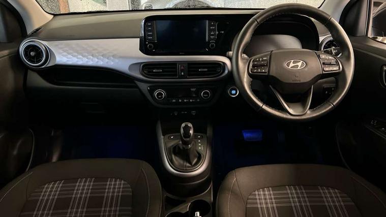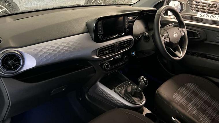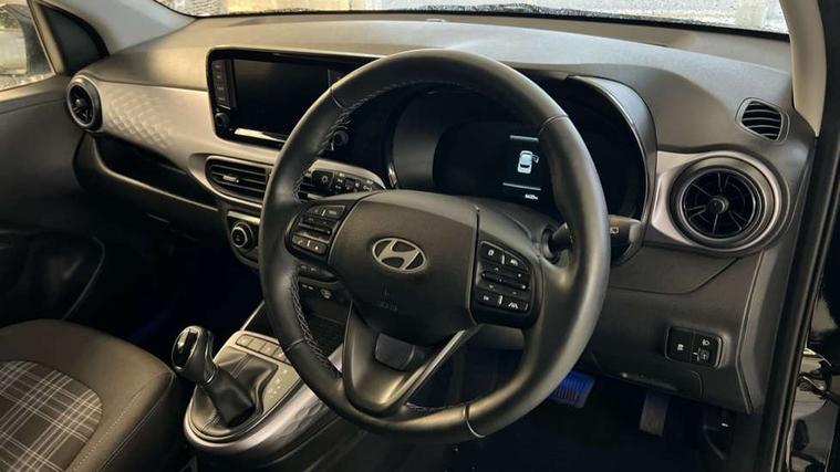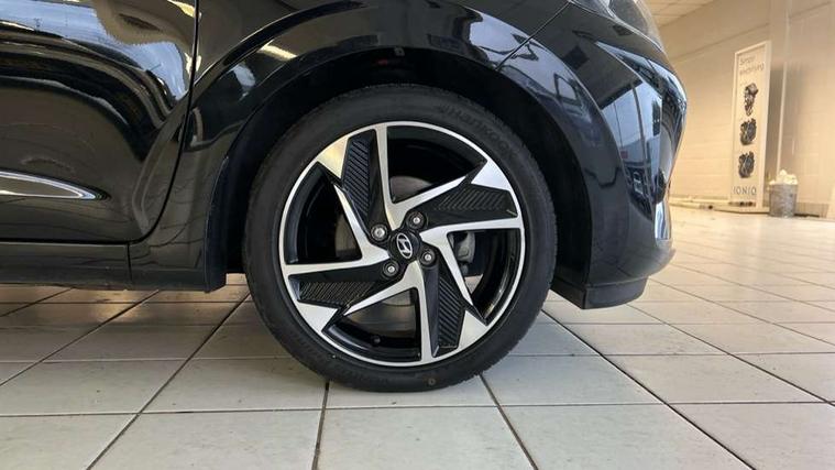 Apple car play/Android Auto, Bluelink mobile remote connectivity, Bluetooth connectivity with voice recognition, Cruise control, Driver attention alert system, eCall emergency call system, Forward Collision-Avoidance Assist (FCA) - Pedestrian/Cyclist, Front USB-C charging and USB-A data, Full-width 4.2" LCD instrument cluster, Intelligent speed limit assist, Lane departure warning system with lane keep assist - LKAS, Lane follow assist, PAS, Rear parking sensors, Rear view camera with guidelines, Roadside assistance, Start/Stop function, Tailgate, Trip computer, Wireless charging pad, 2 front/2 rear speakers, Rear USB-C device charger, Steering wheel audio, phone and cruise controls, 1 speed non intermittent rear windscreen wiper, Black finish on B pillars, Body colour door handles, Body coloured bumpers, Body coloured door mirrors, Electric folding door mirrors, Electric front windows, Electric rear windows, Electrically adjustable and heated door mirrors, Flat metal emblem, Front fog lights, Front grille in glossy black, Front intermittent wipers, Halogen bi-function headlights, Headlights inner with Black Blade design, Heated rear window, High beam assist, Indicator light on door mirrors, LED DRLs diamond mesh design, Privacy glass - Rear windows and tailgate, Rear roof spoiler with integrated LED brake light, Rear side wing doors, 12v power outlet - front, 3 seat bench in 2nd row, 60/40 split folding flat to floor rear seats, Air conditioning, Auto light control, Bottle holders in front/rear doors + front centre console, Cabin and luggage compartment interior lighting, Cloth upholstery, Driver + passenger vanity mirrors, Driver's seat height adjustment, Driver/passenger sunvisors with ticket holders, Floor mats, Front door pockets, Front Head Restraints - Vertical and Horizontal Adjustment, Front LED blue mood lighting, Glove compartment, Heated front seats, Heated steering wheel, Height adjustable steering column, Isofix child seat preparation, Leather multifunction steering wheel, Rear door pockets, Single front passenger seat, Vertical adjustment rear head restraints, 3x3 point rear seatbelts, Airbags - front, front side and curtain airbags, Anti-lock brake system (ABS), Autonomous emergency braking (AEB) with forward collision warning system, Brake assist function, Childproof rear door locks, Electronic stability control, Front and rear seatbelt reminder, Front seatbelt pretensioners, Hill start assist control (HAC), Passenger airbag deactivate switch, Traction control, Tyre pressure monitoring system, Immobiliser, Perimeter alarm, Rear occupant alert, Remote central locking, Second remote key, Smart key with motion sensor, Speed sensitive auto door locking, 16" alloy wheels, Tyre repair kit,