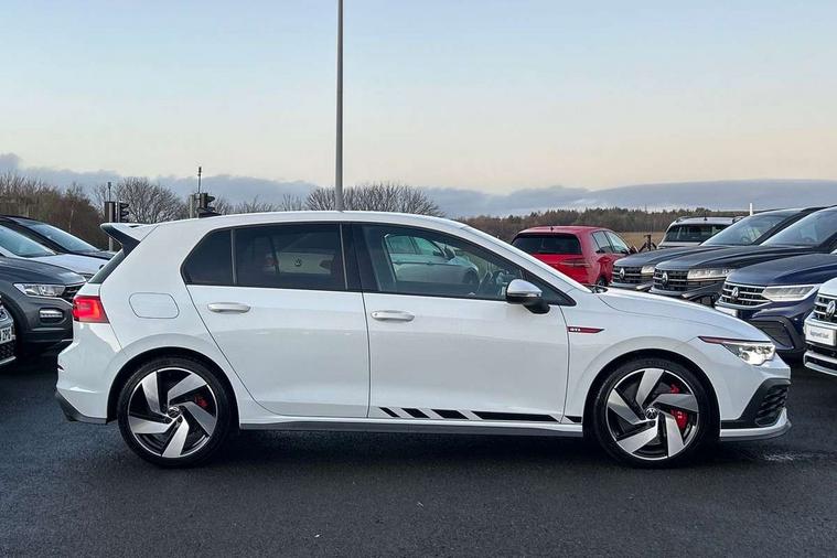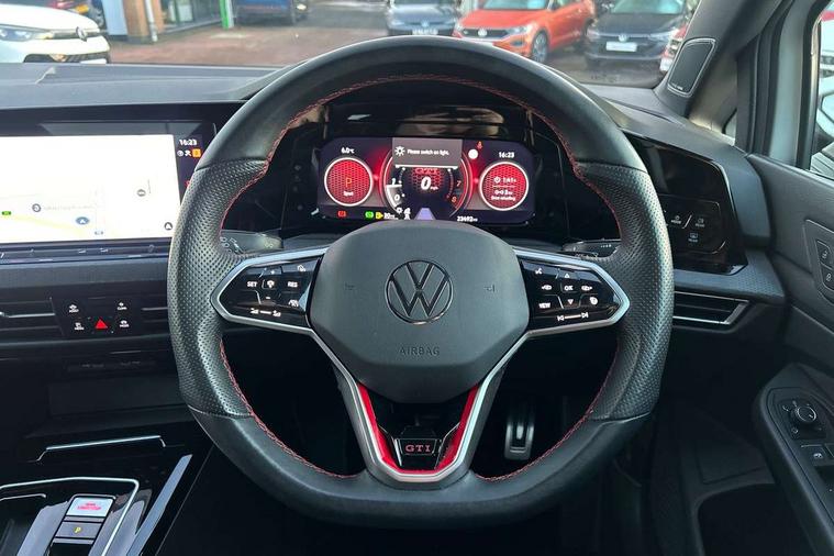 Adaptive cruise control (ACC) with speed limiter and front assist (reacting to vehicles pedestrians and cyclists), Car2X communication, Digital cockpit pro - 10.25" high resolution TFT dash display screen with customizable menus and information, Driver alert system, Dynamic road sign display, eCall - Emergency call service for SOS calls to emergency response, Lane assist, Lane change assistant, Mobile phone interface with wireless inductive charging function, PAS, Speedo, rev counter, electronic odometer, trip, service interval display, exterior temperature and fuel gauge, Start/Stop function, Travel assist with emergency side assist with electrically foldable door mirrors, USB-C ports in the front and rear centre console with increased charging performance, Warning buzzer and light for front seatbelts unfastened, Wireless app connect, Front differential lock, Petrol Particulate Filter, XDS electronic differential lock for improved traction and handling, Premium USB cable in choice of either Apple or Android smartphone compatibility, Advanced high beam control dynamic light assist for LED matrix headlamps, Ambient lighting, exterior illuminated styling elements at the sides, Auto dimming rear view mirror, Automatic headlamp activation with Coming home and Leaving home feature, Automatic headlights, Body colour bumpers, Body colour door handles, Body colour door mirrors with integrated indicators, Body colour rear roof spoiler, Chrome plated tailpipes (1 either side), Front and rear electric windows, GTI Clubsport styled bumpers, Heat insulating glass windscreen, Heated rear windscreen, High level 3rd brake light, Highway light, Illuminated front grille, IQ.Light - LED Matrix headlights, dynamic headlight control with advanced high beam control matrix dipped main beam + LED DRL + 22 LED lights, LED front fog lights with 5 honeycomb design, LED License plate illumination, LED rear combination lamp inlcuding dynamic turn signal, Performance rear spoiler, Rain sensor, Rear fog light on one side and reversing lights on both sides, Rear side wing doors, Rear tinted glass 65% light absorbing from B pillar backwards, Rear windscreen washer and wiper with interval delay, Remote electrically heated, adjustable and foldable door mirrors, including door mirror puddle lights and reverse activated kerb-view adjustment on pa, Welcome light, 12V socket in front centre console, 12V socket in luggage compartment, 3 rear head restraints, 3 seat bench in 2nd row, 3 zone climate with controls in the rear, Aluminium gear knob, Ambient lighting - Customisable 30 colour ambient lighting, Black roof lining, Brushed stainless steel pedals, Chrome plated surround to electric mirror button, window switch and air vent surrounds, Drivers and front passengers sun visors with vanity mirrors, Front centre armrest with storage compartment, Front cupholders x 2, Front passenger seat, Front reading lights x 2 incorporating LED technology, Front seat lumbar support adjuster, Front sports seats, Glovebox, GTI logo on backrest, Height adjustable front seats, Height and reach adjustable steering wheel, Isofix child seat preparation for 2 rear child seats and front passenger seat, Leather wrapped multifunction sports heated steering wheel with paddle shift, Leatherette door armrests and centre armrest, Luggage compartment lighting, Removable luggage compartment cover, Split folding backrest with centre armrest and unsplit rear seat bench, Woven fabric storage compartments in front and rear doors, 3 point height adj front seatbelts + pretensioners, 3 rear three point seatbelts, ABS, Child locks on rear doors, Driver and front passenger airbag with front passenger airbag deactivation, Drivers and front passengers safety optimised head restraints, Electronic parking brake with auto hold, ESC (Electronic Stability Control), Extended pedestrian protection measures, Front and rear passengers curtain airbag system including front side airbags, Front disc brakes, Rear disc brakes, Two tone horn, Tyre pressure monitoring system, Alarm with interior protection and deactivation via infotainment system, Electronic engine immobiliser, Keyless entry with start/stop button on centre console, Black metal chrome decorative inserts in dash and front door trim panels, High gloss black centre console, Soul dashboard, Tyre mobility kit Includes 12V compressor and tyre sealant,