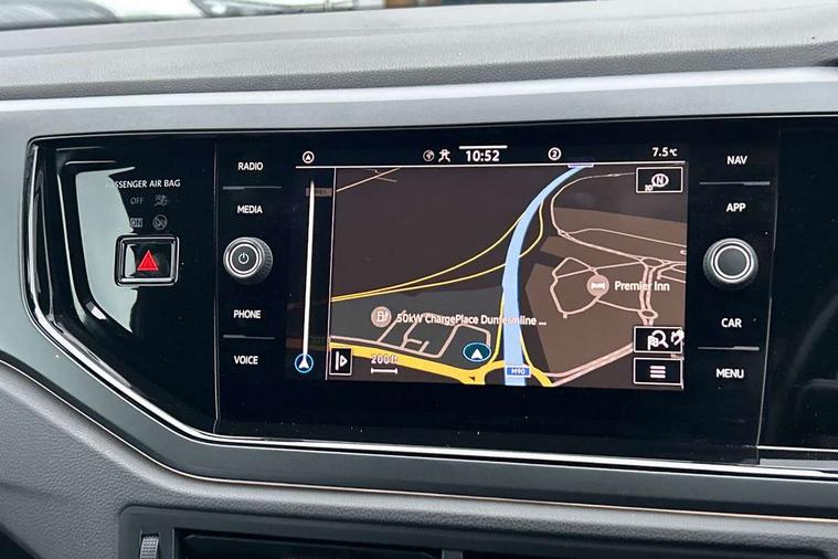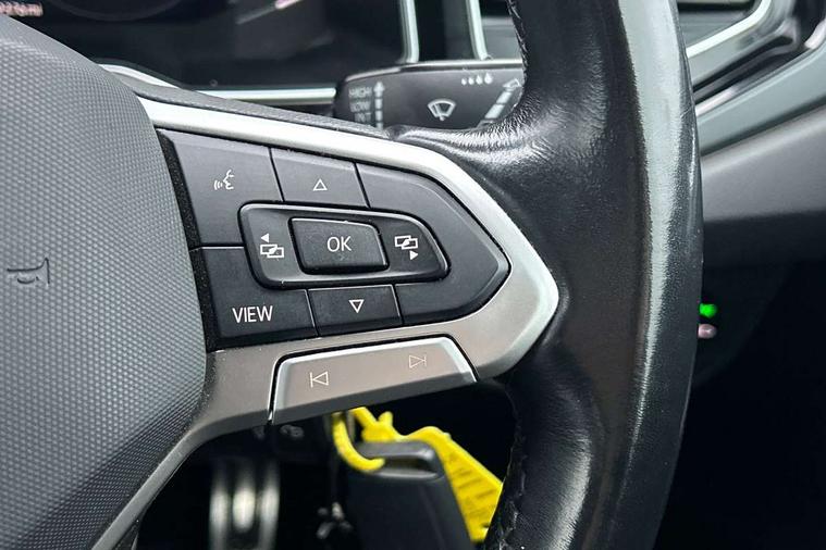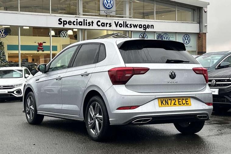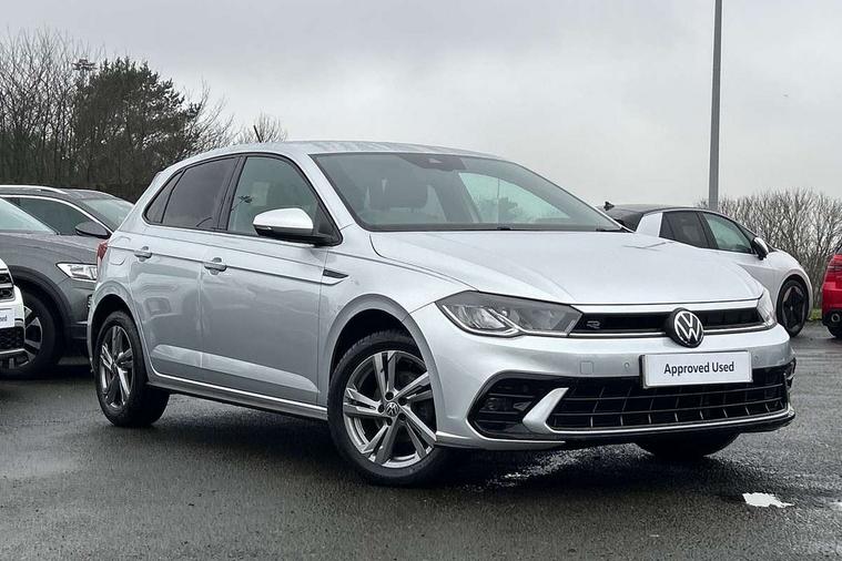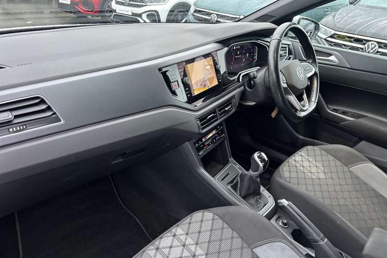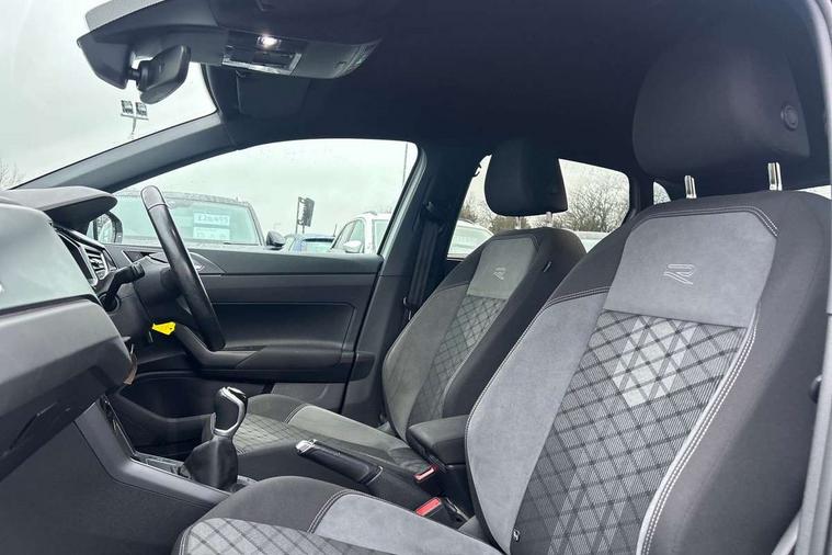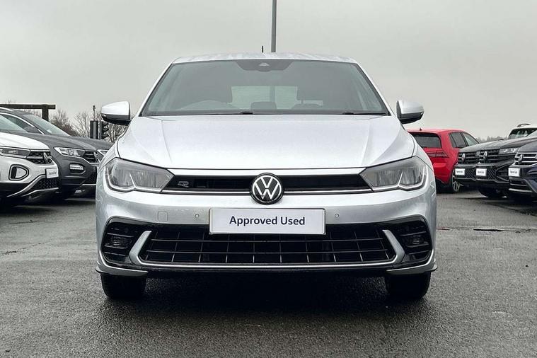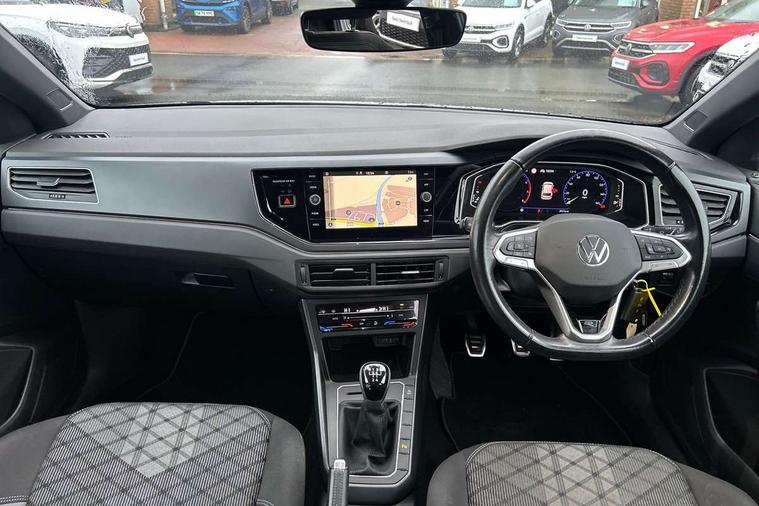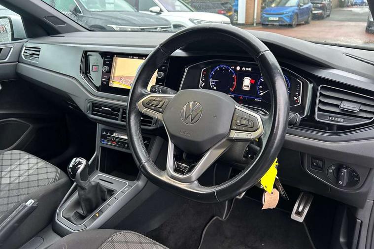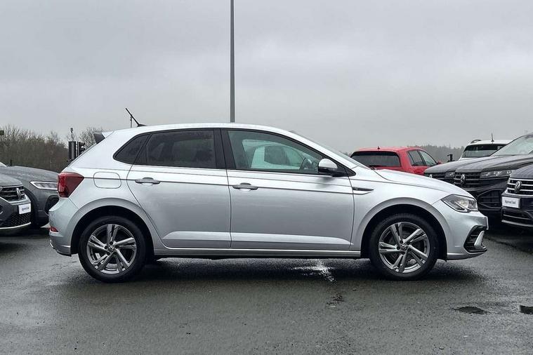 Adaptive cruise control without follow-to-stop and speed limiter, Bluetooth mobile phone interface, Digital Cockpit Pro with 10.25" Display, Driver alert system, Dynamic road sign display, Emergency call service, Power assisted speed sensitive steering, Preparation for We connect and We connect plus, Speedo and rev counter, electronic odometer, trip, service interval display and fuel gauge, Standard rear axle, Travel Assist - Lane keeping system and traffic jam assist, Travel assist including emergency assist, Trip computer, Warning signal and warning light for front and rear seatbelts not fastened, Washer fluid level indicator, Wireless app connect, Front wheel drive, Rear shock absorpion, Start-stop system with battery regeneration (recuperation - energy recovery during braking), DAB Digital radio, Diversity antenna for FM reception, Front and rear 6 speakers, Body colour bumpers, Body colour door handles, Body colour door mirrors, Electric front windows, Front scuff plates with R-Line logo, Heat insulating darkened glass in side and rear windows, Heat insulating glass windscreen, Power folding adjustable/heated exterior mirrors and front passenger exterior mirror lowering function, Rear electric windows, Rear fog light, Rear side wing doors, Rear tinted glass from B-pillar backwards approx 65% tinted, Rear windscreen washer and wiper with interval delay, Third brake light, 12V power socket in centre console, 2 USB-C ports in the front, 2 USB-C charging sockets on the center console in the rear, 3 rear head restraints, 60/40 split folding rear seat and rear seat bench not split, Air care climatronic air conditoning system with active combination filter and 2-zone temperature control, Black roof lining, Ceramique headliner, Chrome plated radiator grille inserts, air vent surrounds and light switch surrounds, Door and side trim panel, Driver and front passenger seat height adjustment, Driver/passenger sunvisors with illuminated vanity mirrors, Front + rear carpet mats, Front centre armrest, Front footwell illumination, Front seat backrest storage pockets, Front sports comfort seats, Handbrake lever handle in leather, Isofix child seat preparation easy-fit (for two outer rear seats, and front passenger seat) compatible with I-size, Karoso artvelours cloth upholstery, Leather trimmed gear knob, LED interior light with switch off delay and dimmer, 2 reading lights front and rear, Luggage compartment cover, Luggage compartment floor, Luggage compartment lighting, Lumbar adjustment for front seats, Multifunction steering wheel, Single front passenger seat, Stainless steel pedals, Standard pedal cluster, Light and sight pack - Polo R-Line/Black Edition, 3 point height adj front seatbelts + pretensioners, 3x3 point rear seatbelts, ABS, Driver and front passenger airbag with front passenger airbag deactivation, Drivers and front passengers safety optimised head restraints, ESC (Electronic stability control) + EDL (Electronic Differntial lock) and ASR (Traction control), Extended and predictive pedestrian/ cyclist protection, Front curtain and side airbags with center airbag, Hill hold control, Manual child lock in rear doors, Single tone horn, Tyre pressure loss indicator, Alarm with interior protection, Anti-theft alarm system with interior monitoring, backup horn, and towing protection, Anti-theft wheel bolts, Electronic engine immobiliser, Chrome applications on rotary light, mirror adjustment, window regulator switches, outlet with frame in black, Dark grey anodised matt decorative inserts in dash and front door panels, Low rolling resistance tyres,