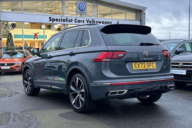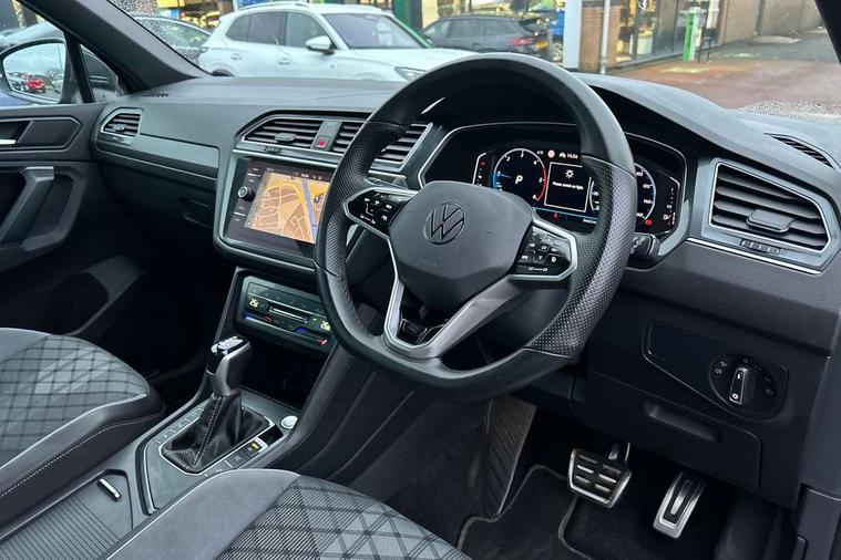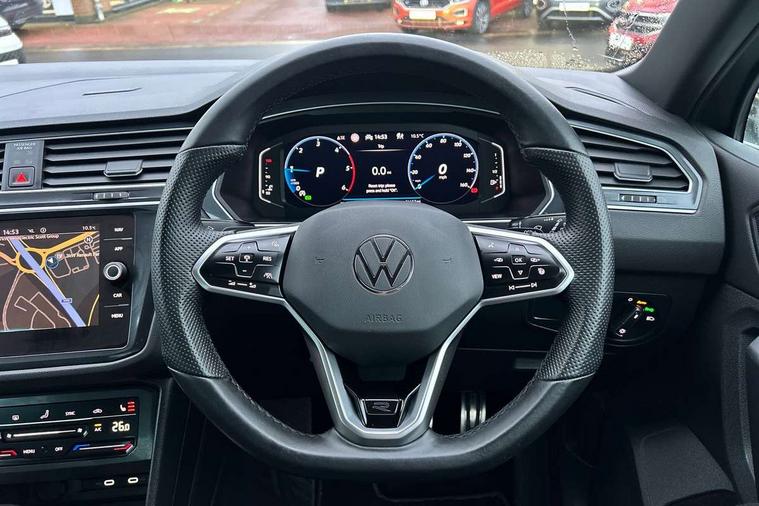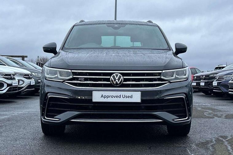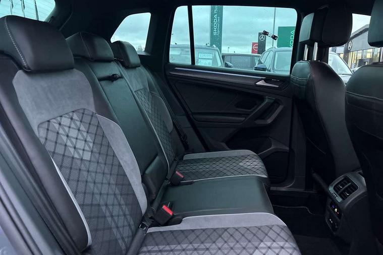 Adaptive cruise control ACC stop and go including speed limiter, App-Connect incl. App-Connect Wireless for Apple CarPlay and Android Auto, Bluetooth phone integration system, Distance control assist, Driver alert system, Driver profile selection, Dynamic road sign display, eCall emergency call system, Electromechanical speed sensitive power steering, Engine start/stop button, Lane keeping system Lane Assist, Lights on warning, Multifunction front facing camera, Outside temperature display, Premium multifunction display with multi colour display, Remote control boot opening, Rev counter, Revision / skills operating concept travel assistant, Service interval indicator, Speed limit display, Start/stop system with regenerative braking, Trip computer, Warning sound and light for doors and tailgate open, Battery regeneration during braking, Diesel particulate filter, Misfuel prevention device for diesel engine, Selective Catalytic Reduction, XDS electronic differential lock for improved traction and handling, 4 X 20 watt output, 8 Speakers, Diversity antenna for FM reception, Radio, SD card slot, Simultaneous pairing of 2 compatible mobile devices, SMS functionality - read, compose and send SMS messages using touch-screen display, Title and cover art display, USB C ports, Auto dimming interior rear view mirror, Automatic headlight control system, Body colour door handles, Chrome moldings on the side windows, Coming/leaving home lighting function, Dynamic headlight range control, Front and rear electric windows, Heated rear window, High level 3rd brake light, Laminated safety glass windshield, heat and sound insulating, LED headlamps with LED separate daytime running light and dynamic cornering light, LED rear combination lamps, LED rear number plate lights, License plate carrier in front and rear, Poor weather light and cornering light, R Line body kit, R Line side sills, Rain sensor windscreen wipers, Rear exhaust tailpipe, Rear fog lamp, Rear side wing doors, Rear spoiler in R style, Rear windscreen washer and wiper with interval delay, Side and rear windows in heat insulating glass, Trailer Stability Programme, Unique R Line badging, Windscreen wipers/ intermittent wipe + 4 position delay, 12V outlet in center console rear and in luggage compartment, 12V outlet in front and tray, 2 cup holders in front, 2 LED front reading lights, 2 LED rear reading lights, 3 bench rear seats in 2nd row, 3 rear headrests, 4 load lashing points, 40:20:40 split folding rear seats, Air Care Climatronic 3 zone automatic climate control with enhanced air filter and controls in the rear, Backrest release for left front seat, Black headlining, Brushed stainless steel pedals and footrest, Carpet mats in front and rear with decorative stitching in Gray, Climate control unit rear with touch function, Door and side trim panel in foam film, insert in leatherette, Front centre armrest, Front footwell illumination, Front seats head restraints (x-adjustment), Height adjustable front seats, Height/reach adjust steering wheel, Instrument lighting white adjustable panel illumination, Interior light with delay, Isofix Preparation 2 Rear child seats, Leather gear knob, Lockable cooled glovebox, Luggage compartment lighting, Luggage net, Rear bench seat asymetrically split folding, longitudinally movable and folding with load-through hatch and center armrest, Remote unlocking for rear seat backrest, Removable luggage cover, Removable rear headrests, Safety optimised front head restraints, Single front passenger seat, Sliding/reclining rear seats, Standard rear seat release, Storage compartment in driver's door, Storage compartment in passenger's door, Storage compartment in rear doors, Storage compartments in luggage area left and right, Storage tray on dashboard, Sun visors with illuminated vanity mirrors, Top front comfort seats, Variable boot floor, height adjustable and removable, Driver assistance pack plus - Tiguan DSG, 3 point seat belt for centre rear seats, 3 point seat belts with seat belt pretensioners for the outer rear seats, Active bonnet, Curtain airbags for front and rear passengers, Driver/Front Passenger airbags, Drivers knee airbag, Electronic parking brake with auto hold, Electronic Stability Control with driver steering recommendation, ABS, ASR, EDL, EDTC and trailer stabilization, Front assist with autonomous emergency braking (for Adaptive Cruise Control ACC up to 130 mph), Front disc brakes, Front passenger airbag deactivation, Front side airbags, Height adjustable front 3 point seatbelts + pretensioners, Hill hold control, Manual child proof rear door locks, Pedestrian monitoring system, Power assisted brakes, Proactive passenger protection system in combination with front assist, Rear disc brakes, Rigid safety cell with front and rear crumple zones, Two tone horn, Warning sound and light for front seat belts if unfastened, Anti theft alarm system with interior monitoring, backup horn and towing protection, Anti theft wheel bolts, Electronic engine immobiliser, Tool kit,